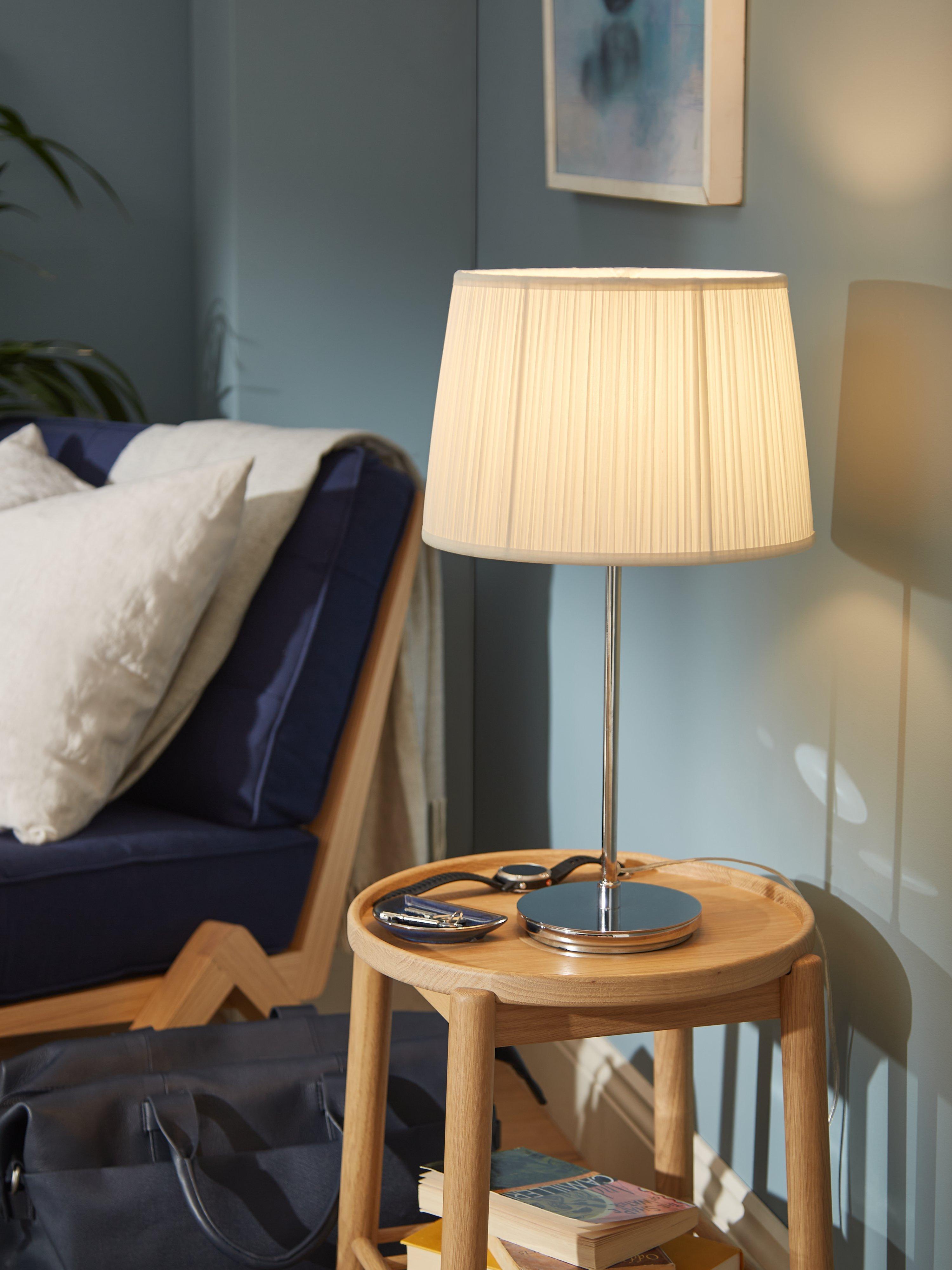 Carefully made from pure silk and dyed to a selection of bespoke colours, our Lymington lampshade will add a delicate accent to your light fitting. Made with a reversible gimbal so it can be used on both ceiling lights and table lamps, it has a modern, tapered shape and neat pleats. We've also lined it with fabric to enhance a warm glow of light.