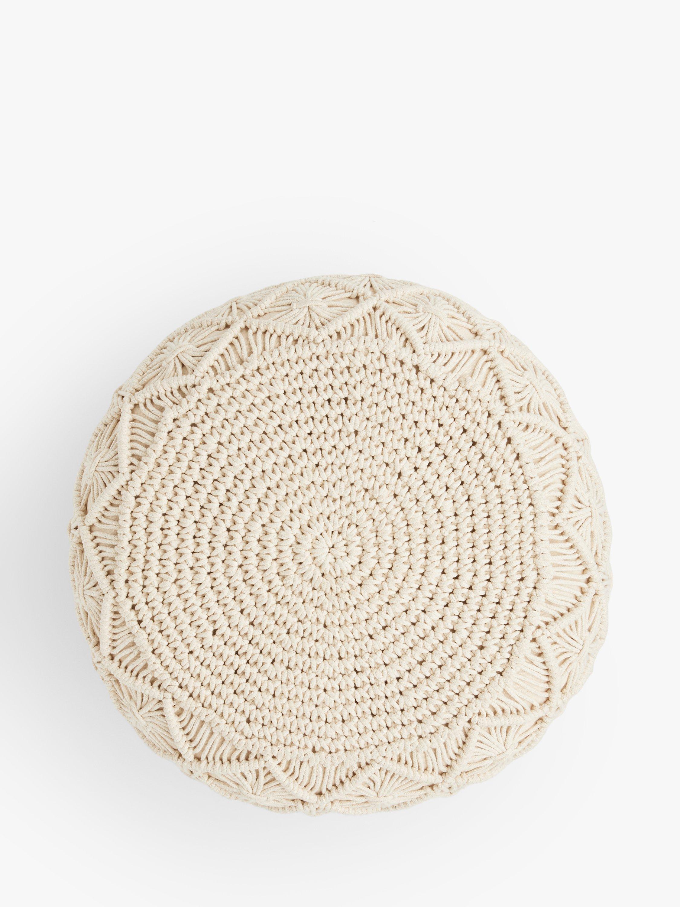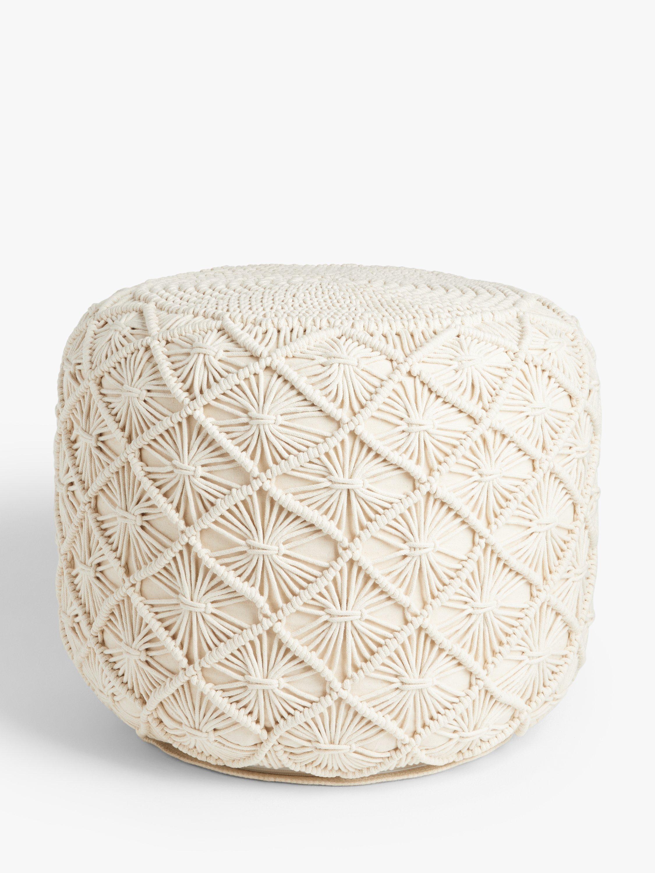 This pouffe is hand crafted into an intricate macrame design for a Boho early 80s look.