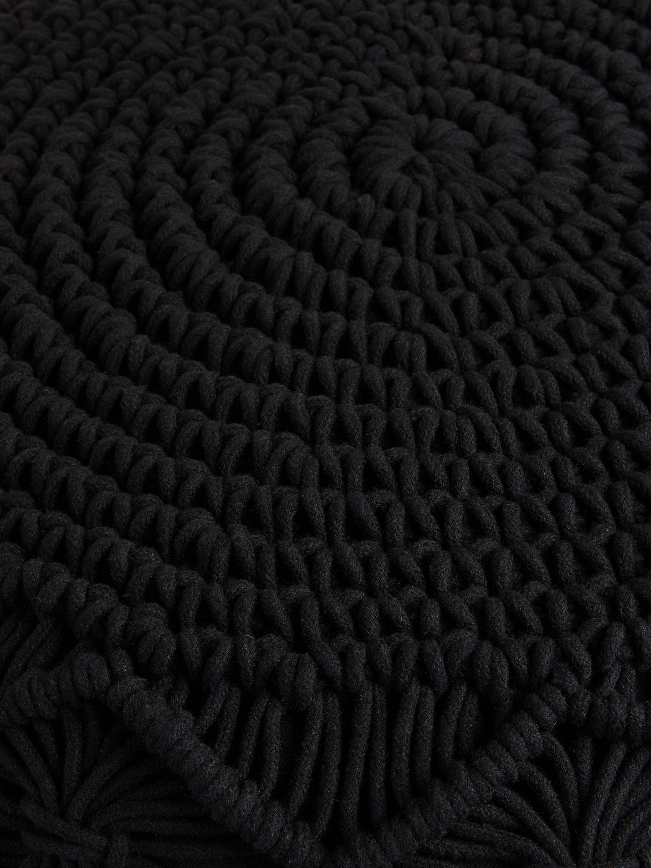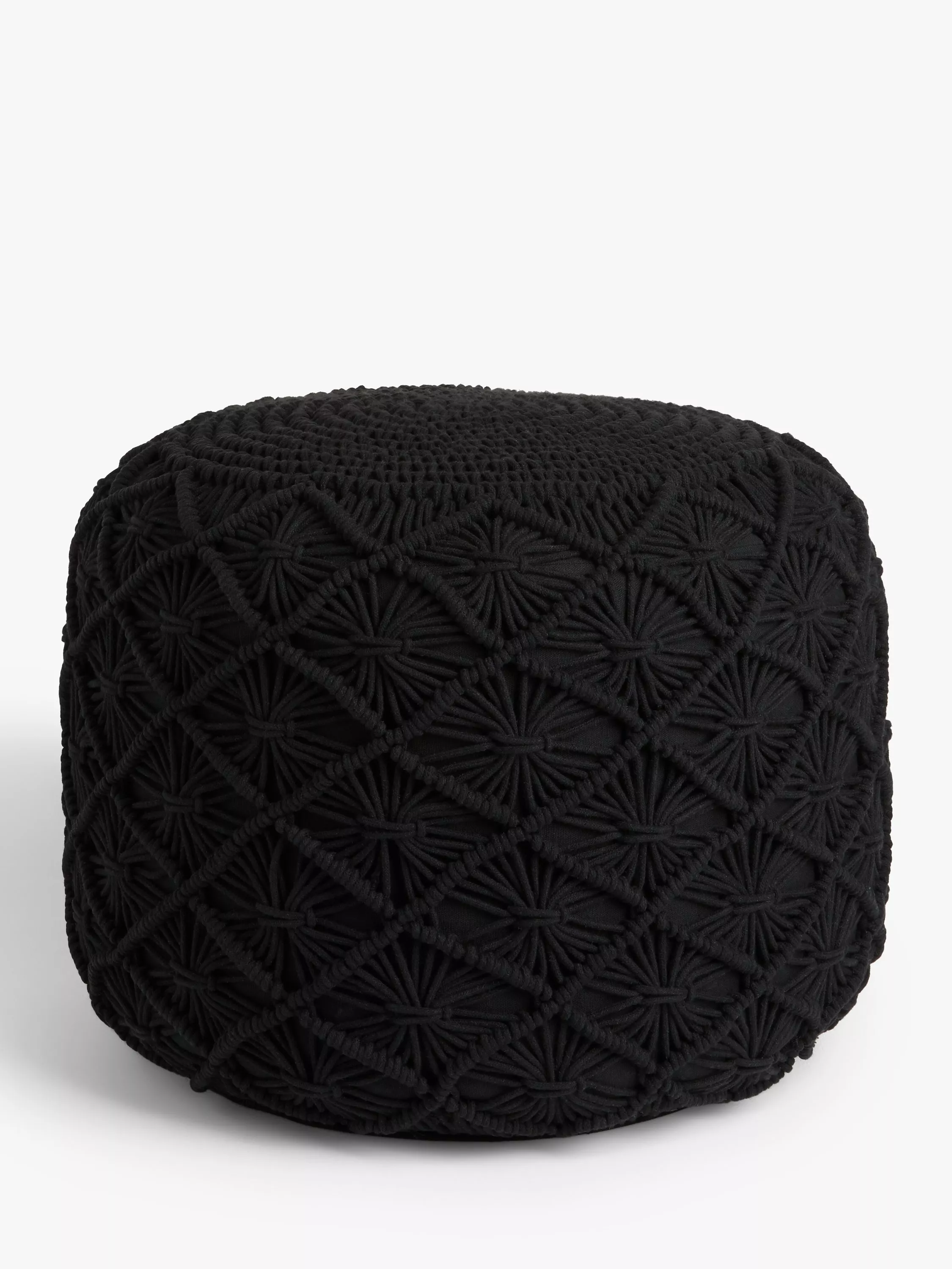 This pouffe is hand crafted into an intricate macrame design for a Boho early 80s look.