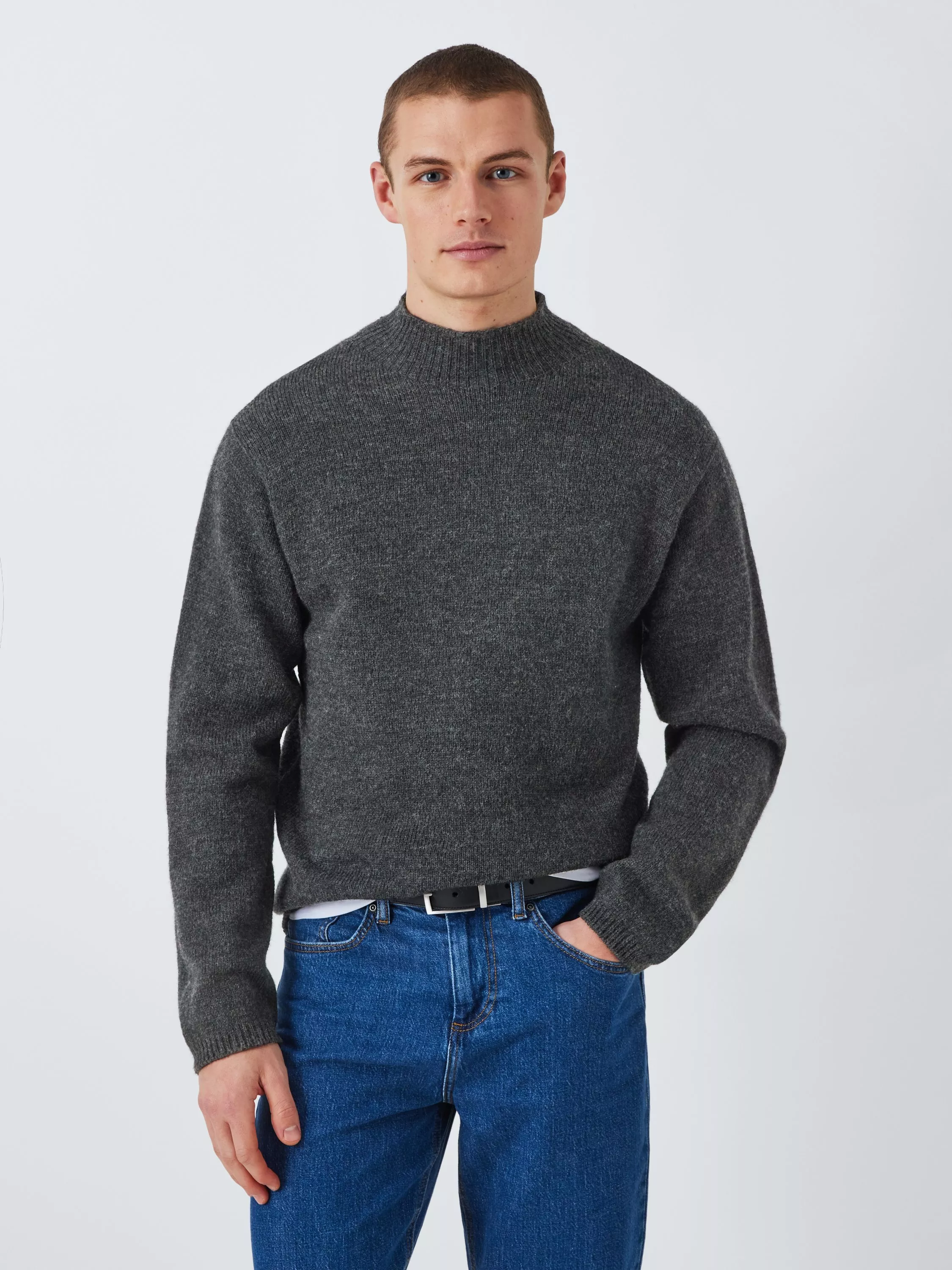 A cosy Merino wool jumper, a versatile piece that's perfect for the colder. Styled with a high turtle neck and rib trims - part of the Made in Scotland range.