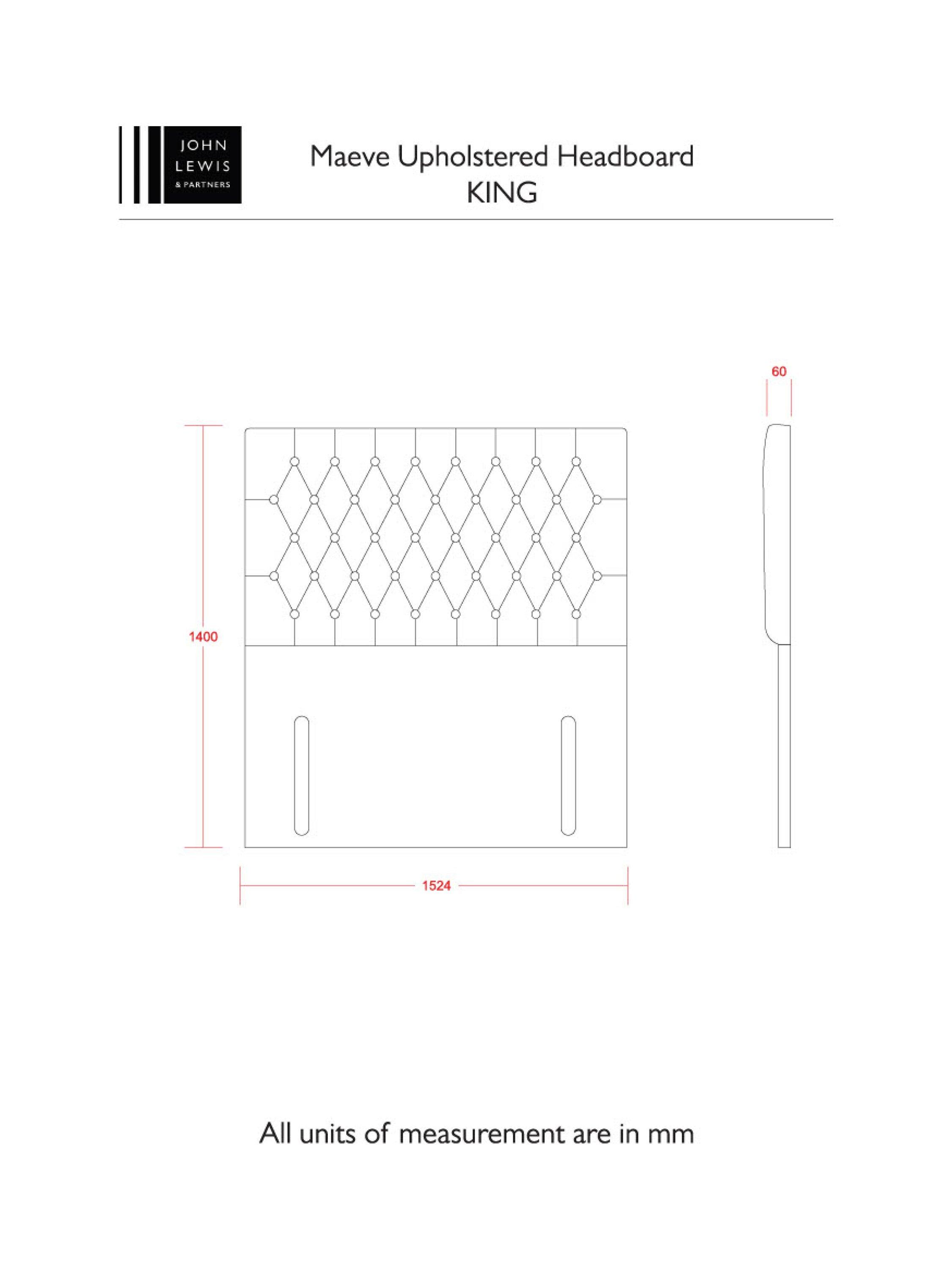 John LewisMaeve Full Depth Upholstered Headboard, King Size, Brushedweave Silver