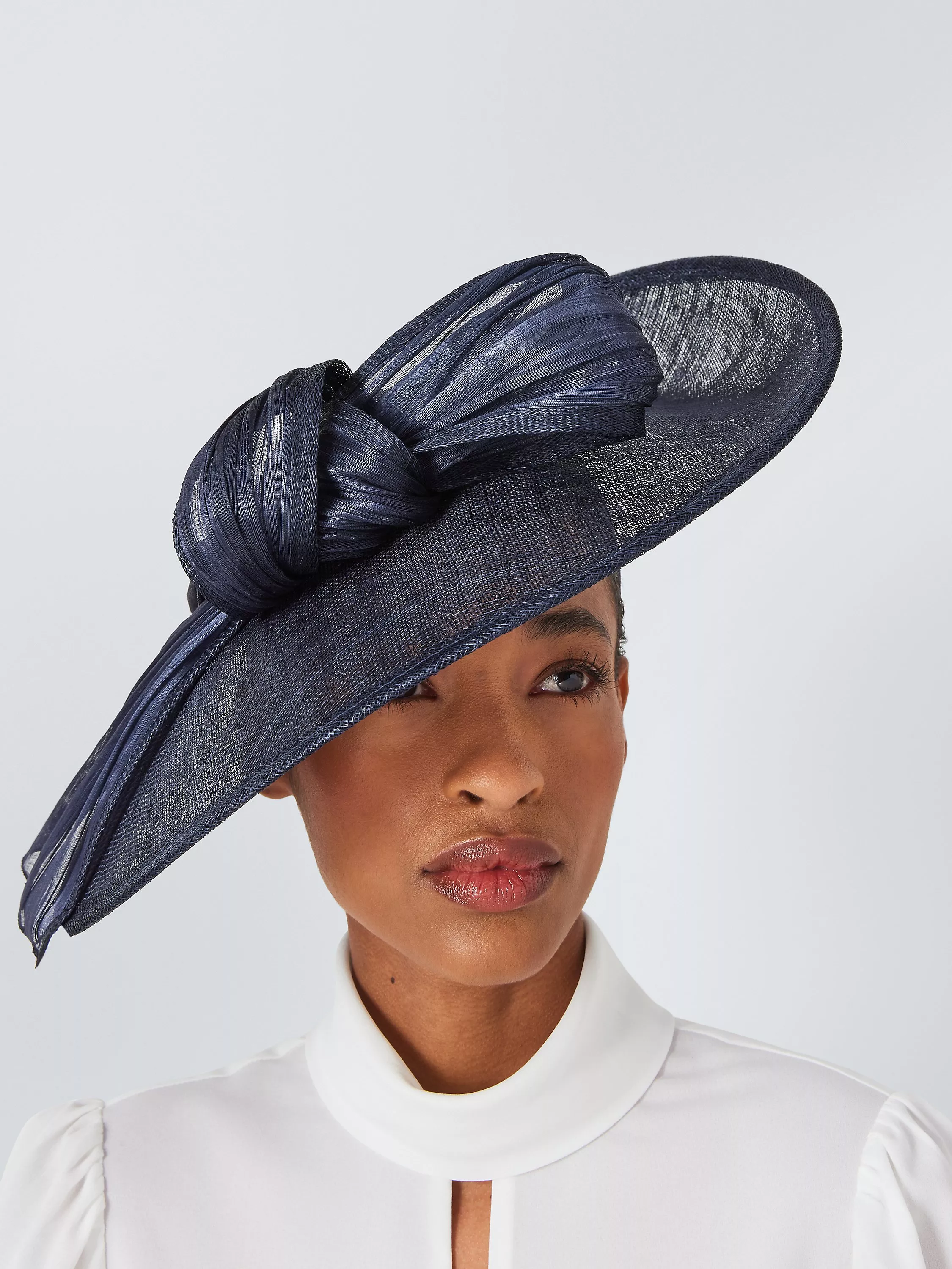 A charming choice for that special day, this wide brim hat features a smart, textured top and sits on a headband for a comfortable fit.