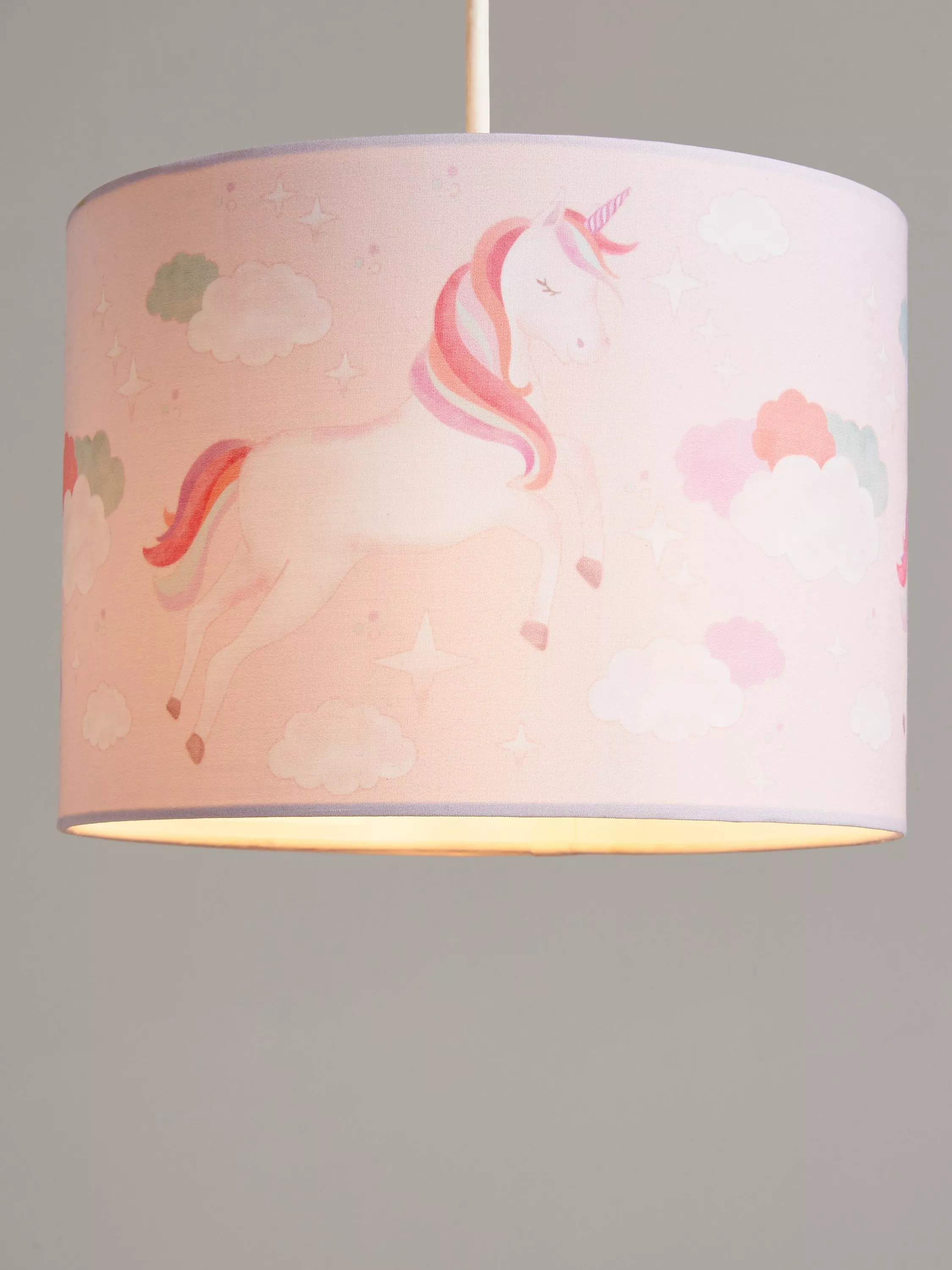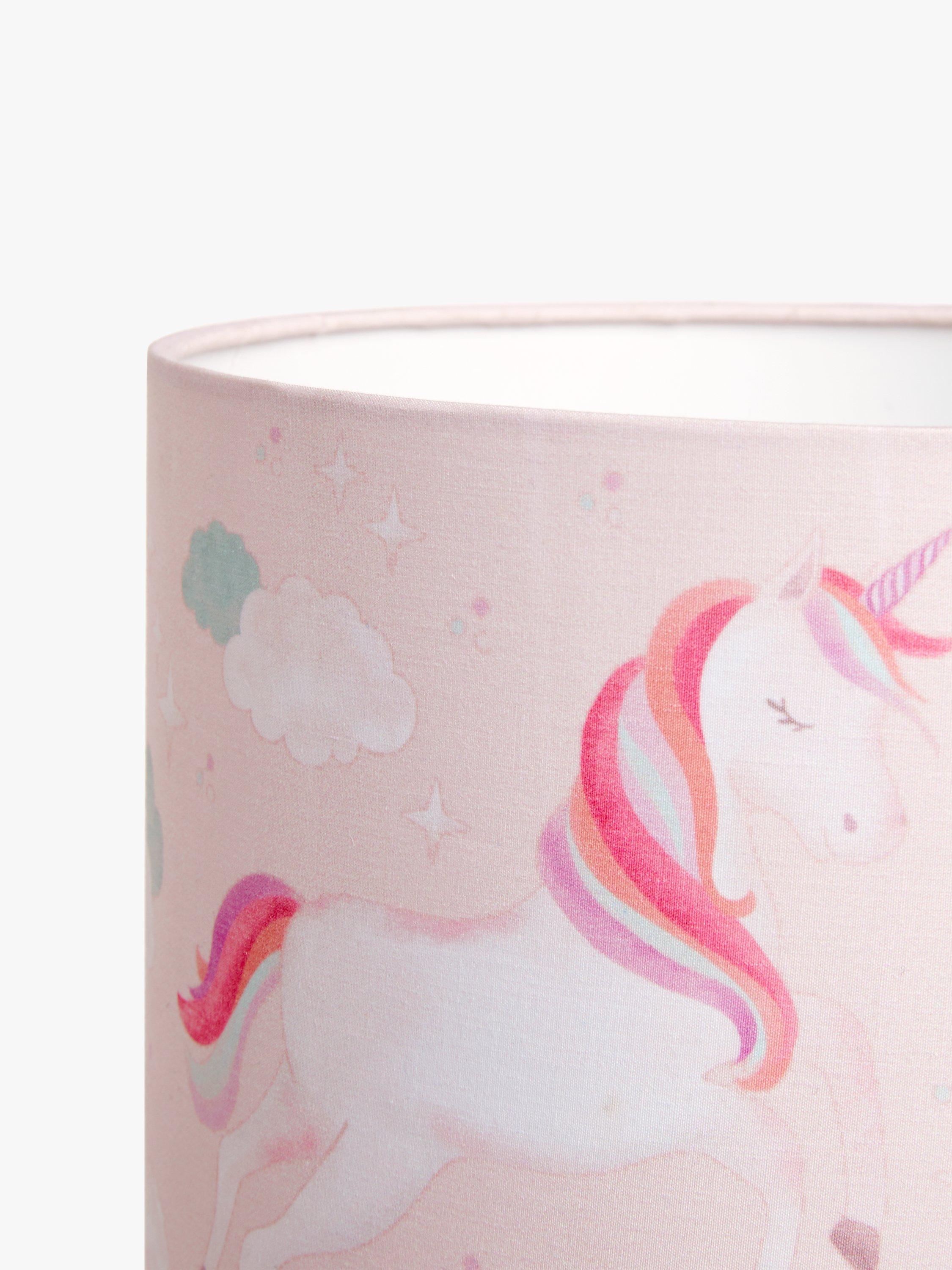 Our Magical Unicorn range allows you to give their room a magical, fantasy makeover. This multi-purpose lampshade is designed with a reversible gimble, so it can be hung from a bulb holder or installed on a table or floor lamp base. With pastel pinks and rainbow colours, they'll be dreaming of a far-away land.
