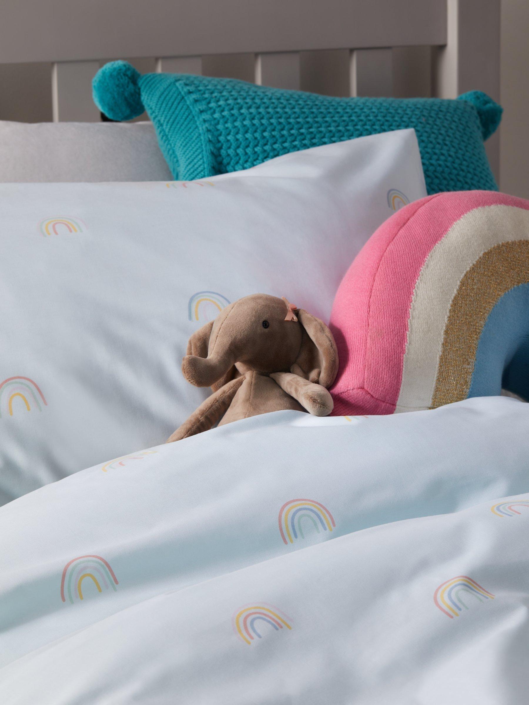 Create a magical, fantasy setting with our Magical Unicorn range. Designed with pastel pinks and rainbow colours, they'll be dreaming of a far-away land! This Rainbow soft toy is made from soft, pure cotton and has a plump polyester filling.