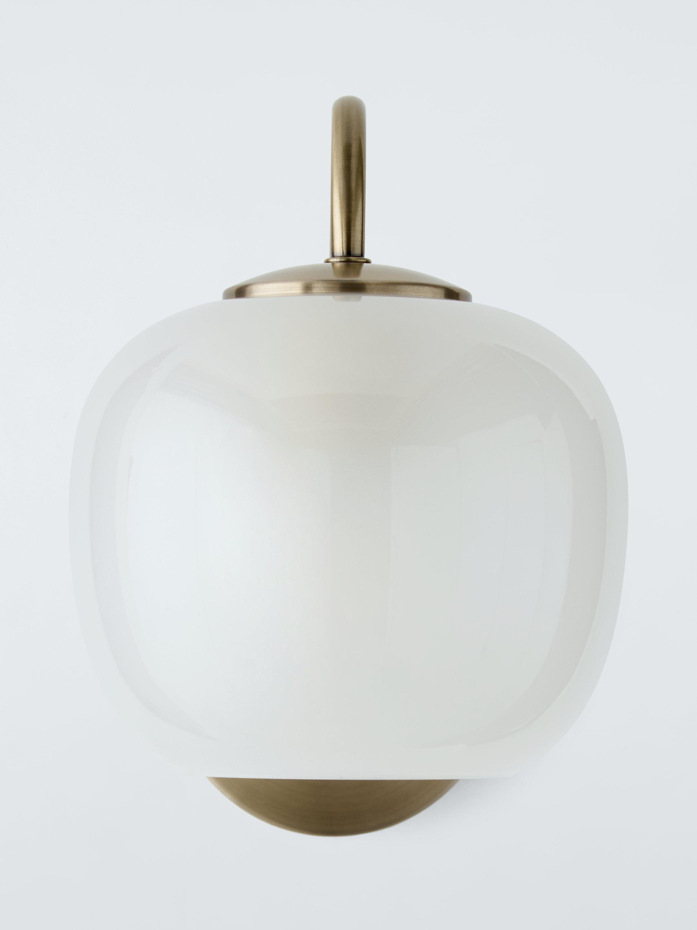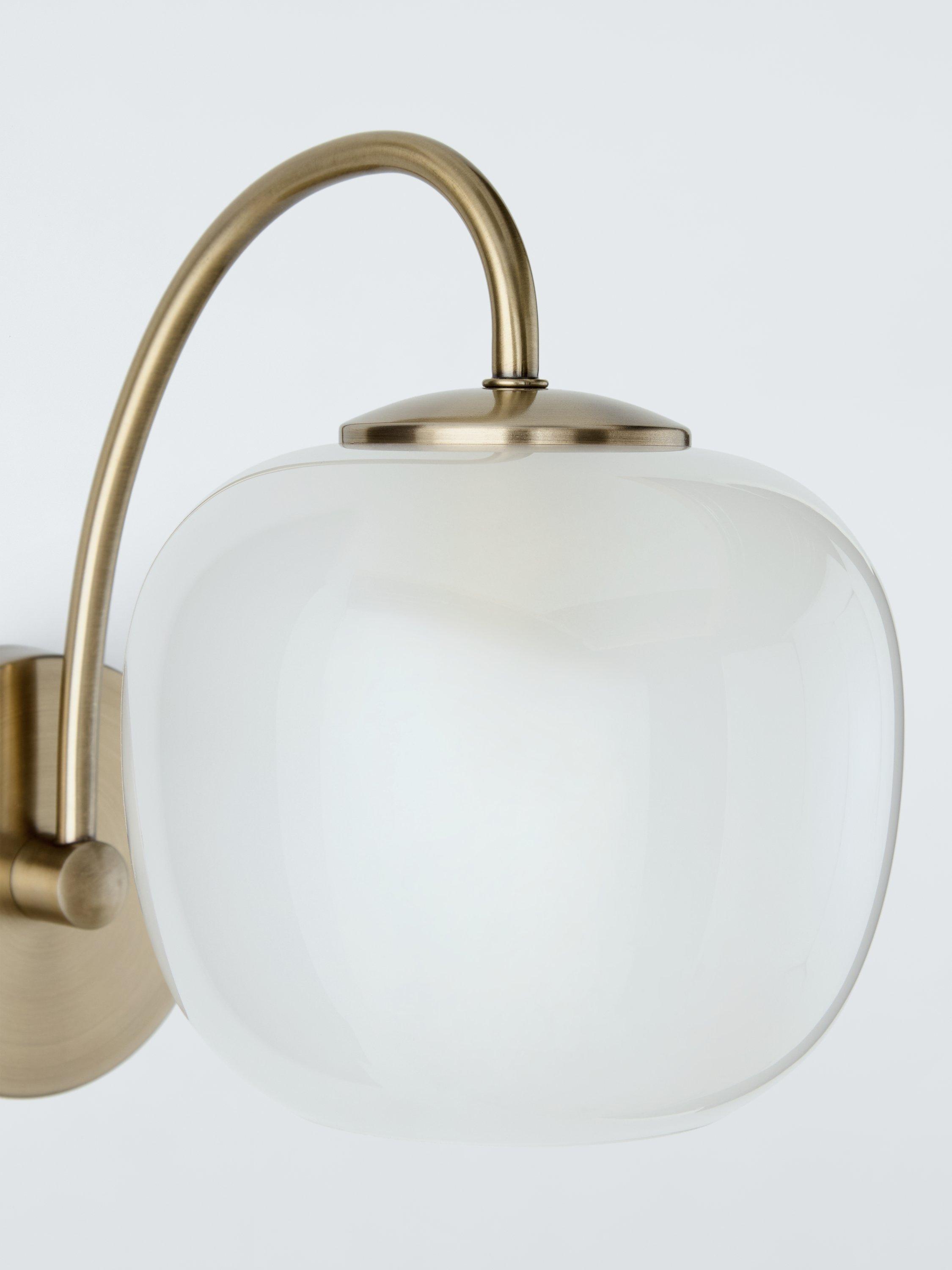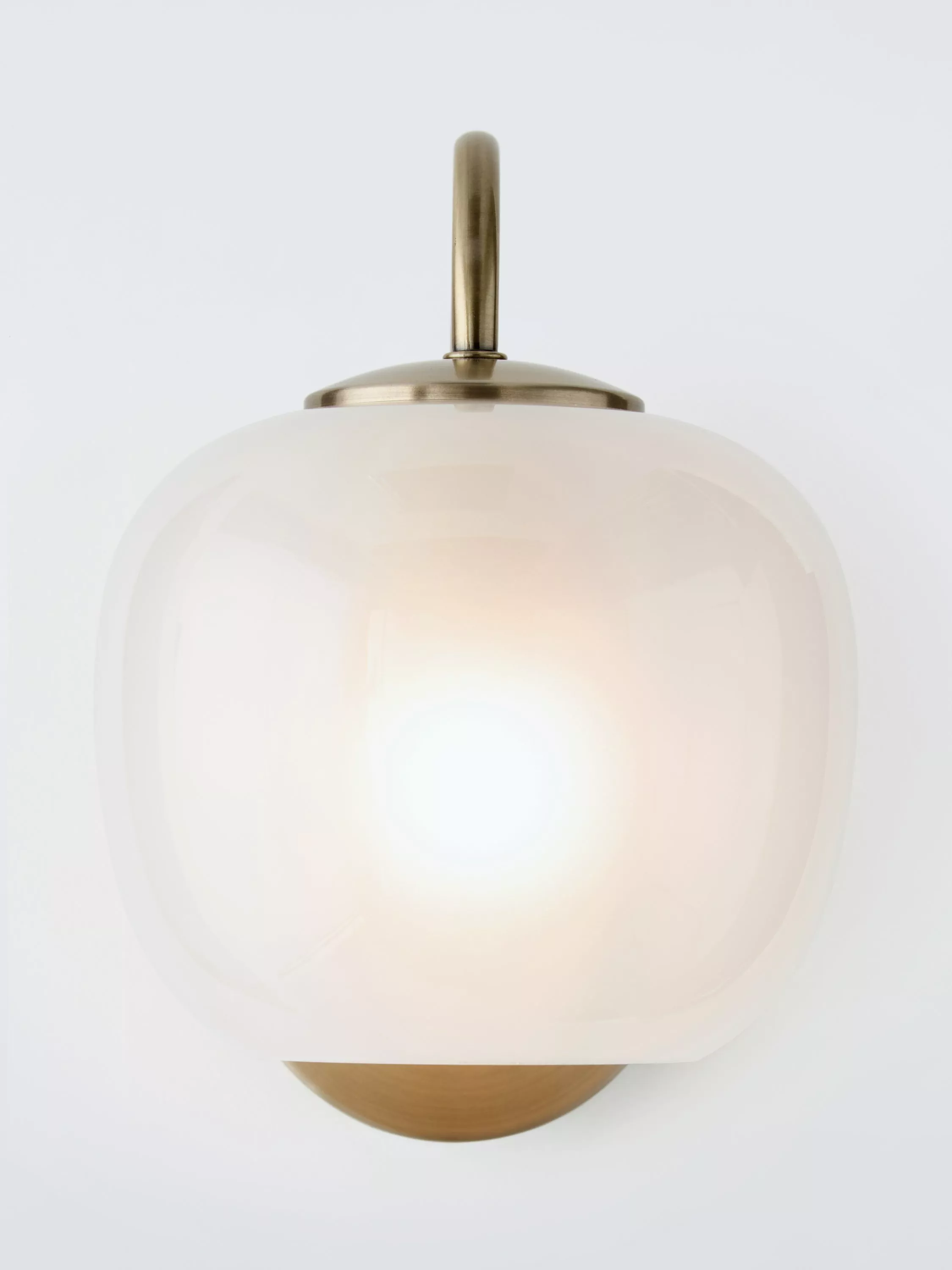 This wall lamp boasts an Antique Brass finish that infuses vintage charm and elegance into your decor. Its glass shade is a study in contrast, featuring a glossy white exterior for a contemporary twist, while the frosted interior diffuses a soft and inviting glow.