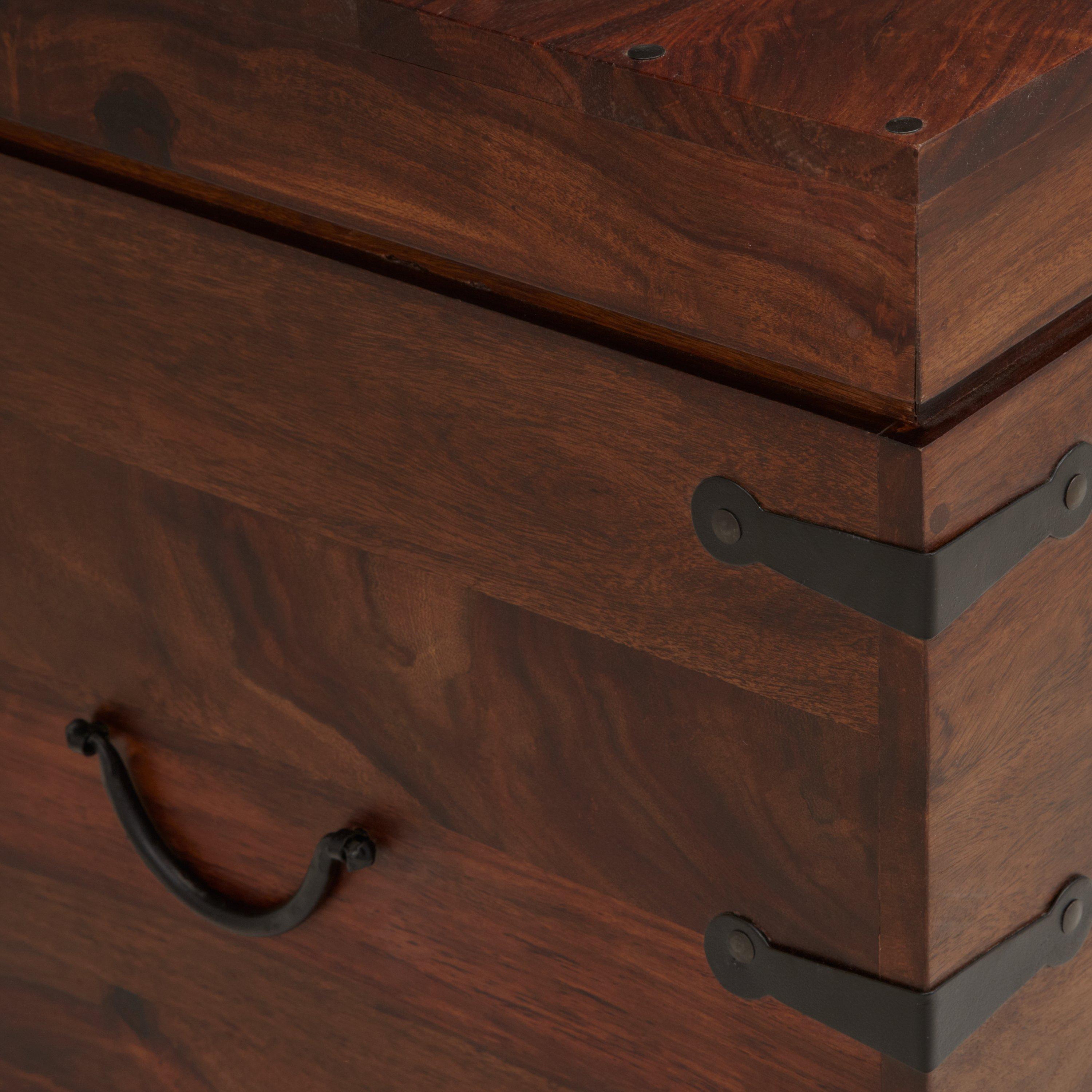 This handmade Maharani storage chest features ornate styling paired with traditional wood and iron fittings. The perfect solution to your storage woes in the living room, dining room, bedroom, hallway, or anywhere else in the home you can think of, it’s perfect for storing blankets, quilts, newspapers, magazines, CDs, DVDs, clothes or even children’s toys.