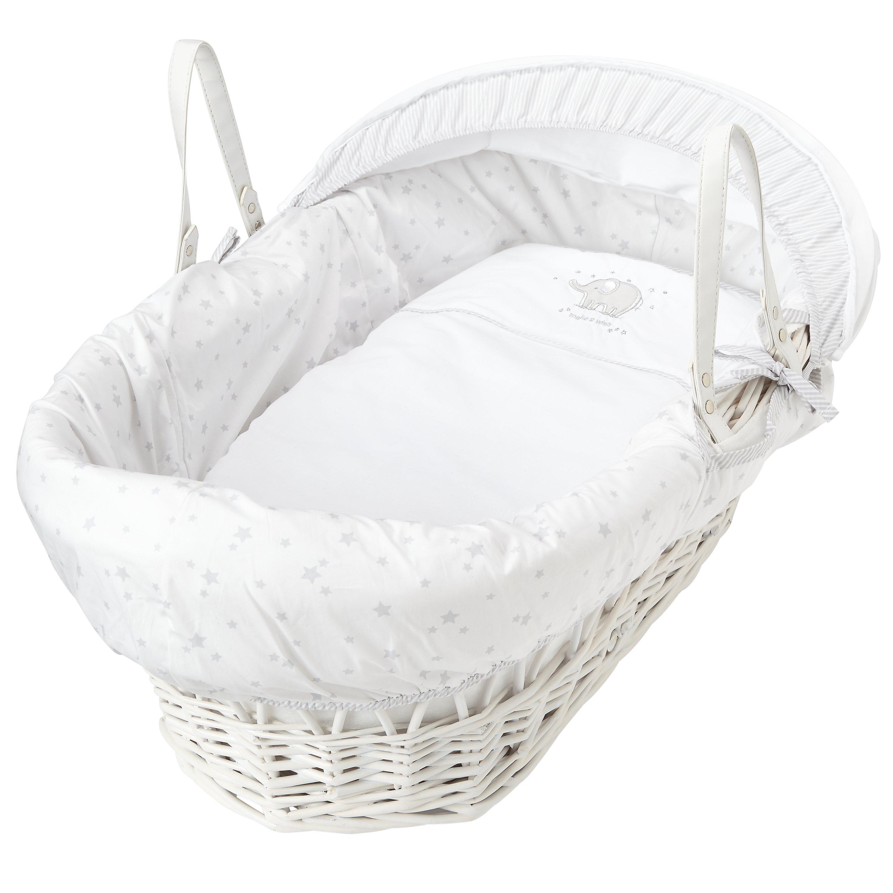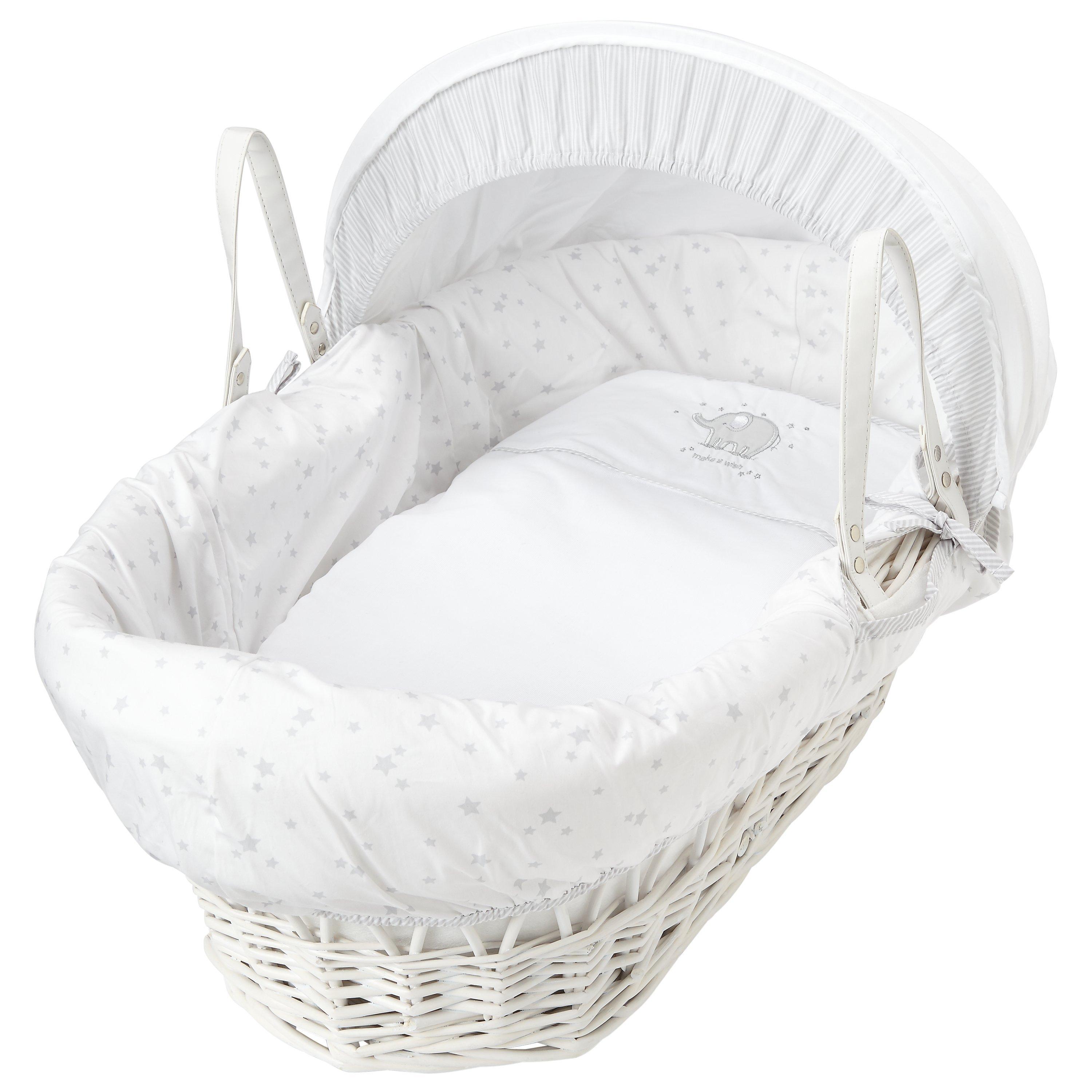Complete your nursery with this neutral white wicker Moses basket from John Lewis. The cosy and comfortable design will keep your newborn snug and secure from birth until 9kg.