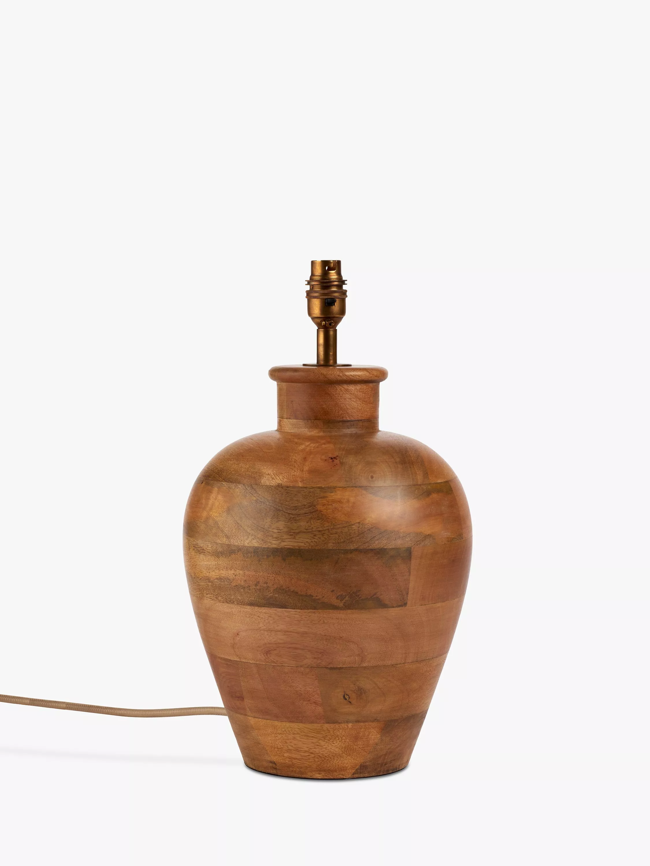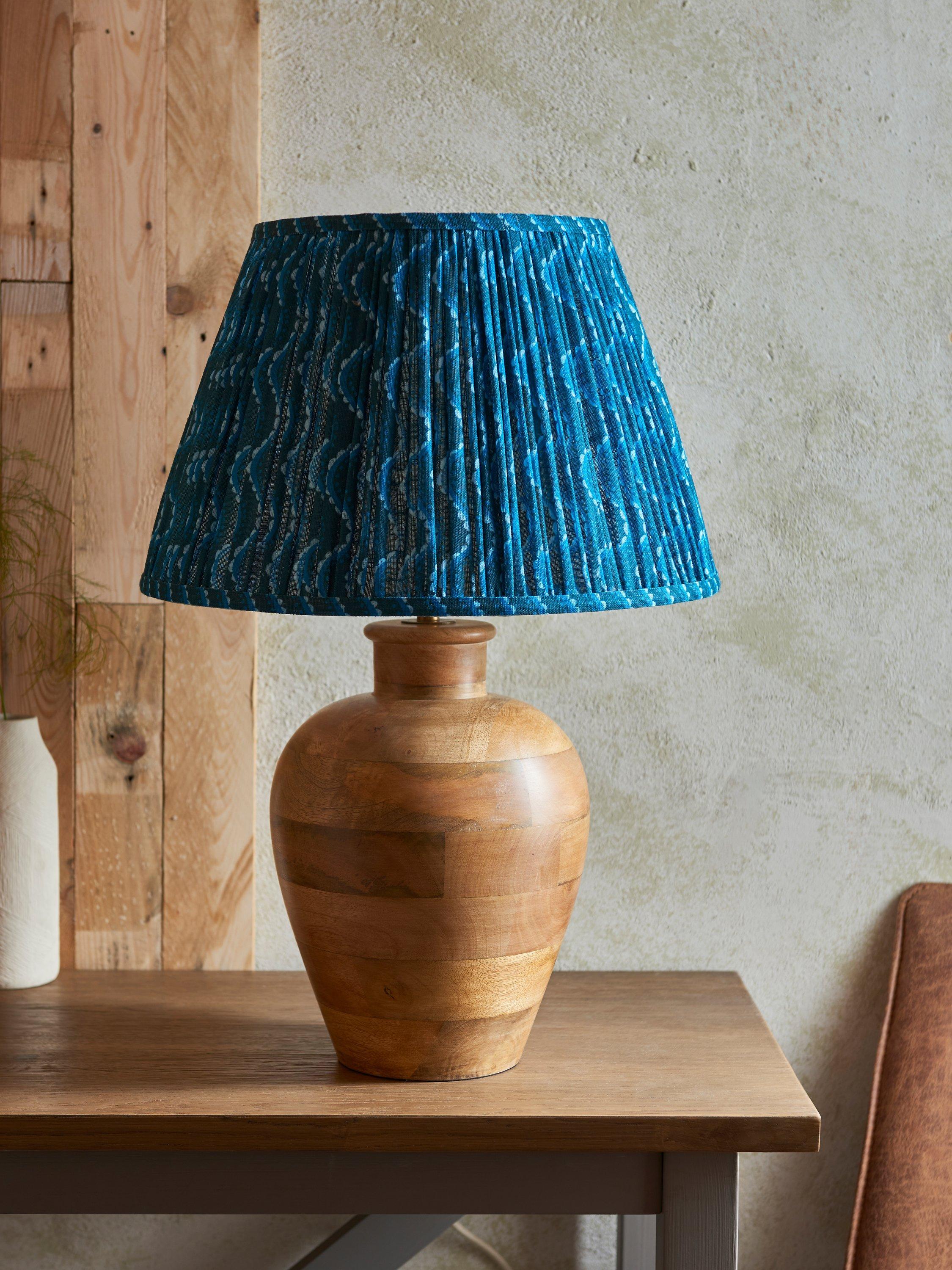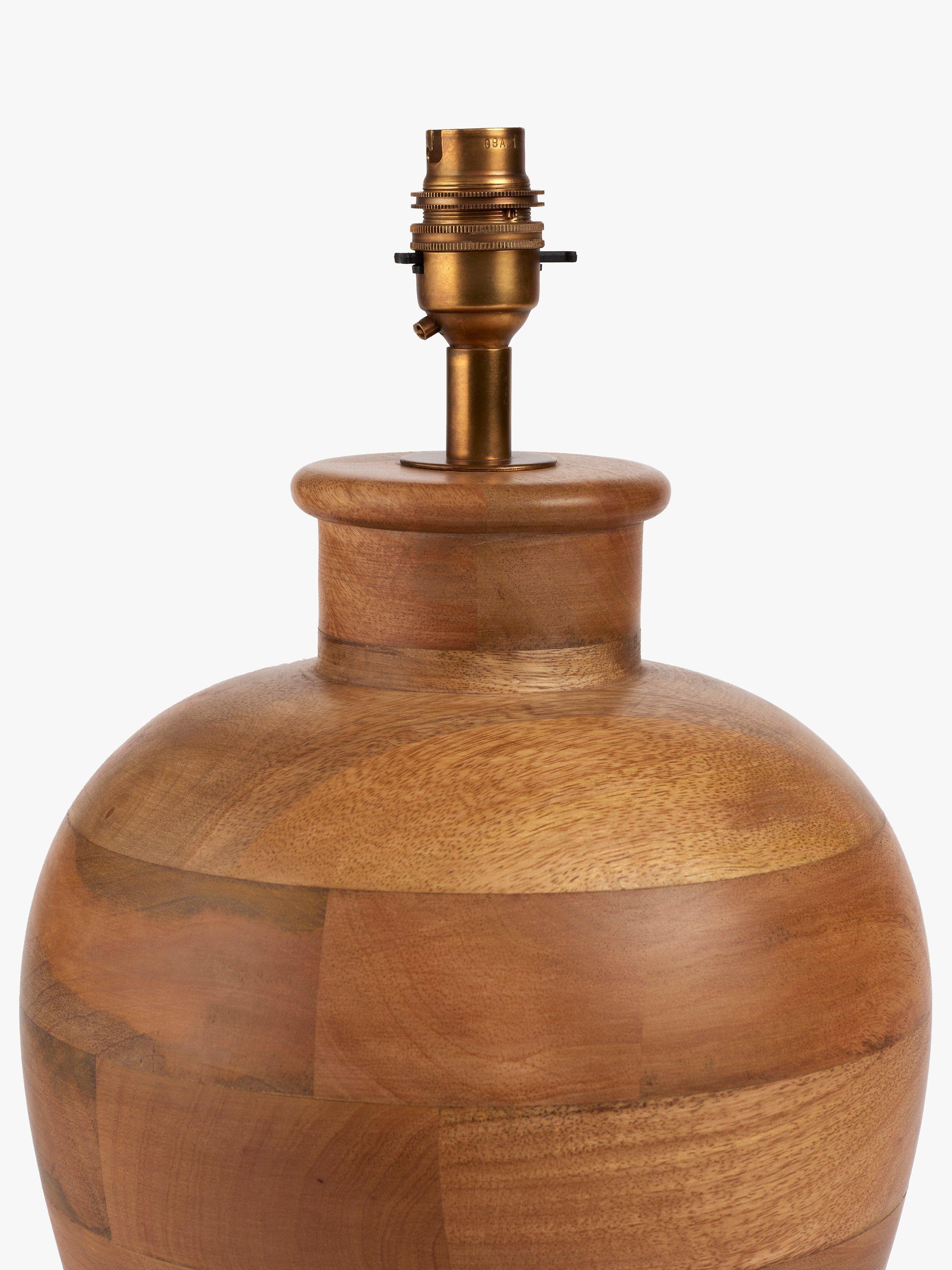 This sculpted lamp base is made from solid mango wood. Its warm tones and unique wood grains, together with its rounded shape will add a calming, natural look to your space. And it means that each base is completely unique. We'd pair it with a linen lampshade to complete the look.