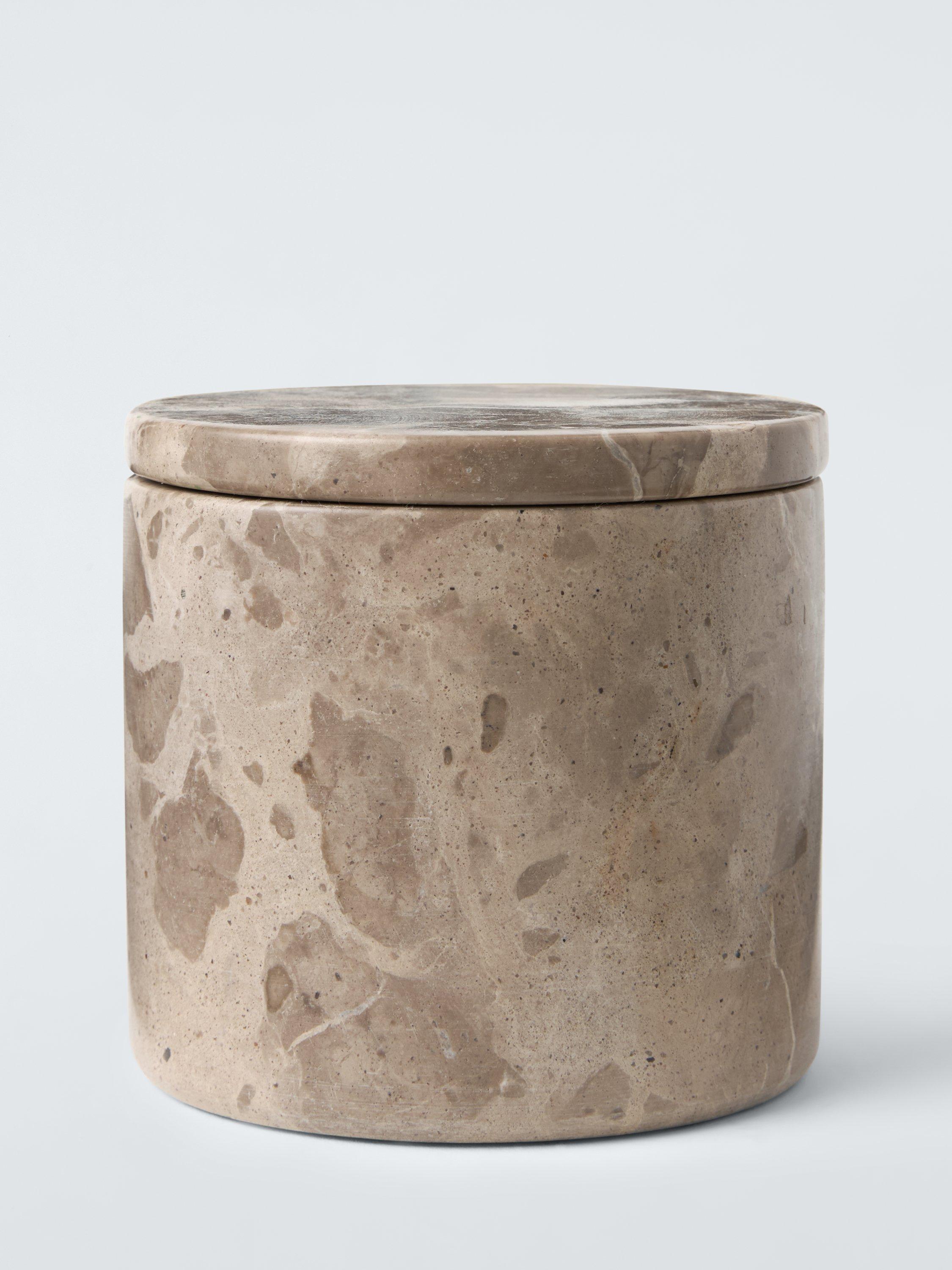 Marble makes a luxurious statement when used in a bathroom and this lidded pot is handcrafted by expert artisans in the Indian city of Agra.