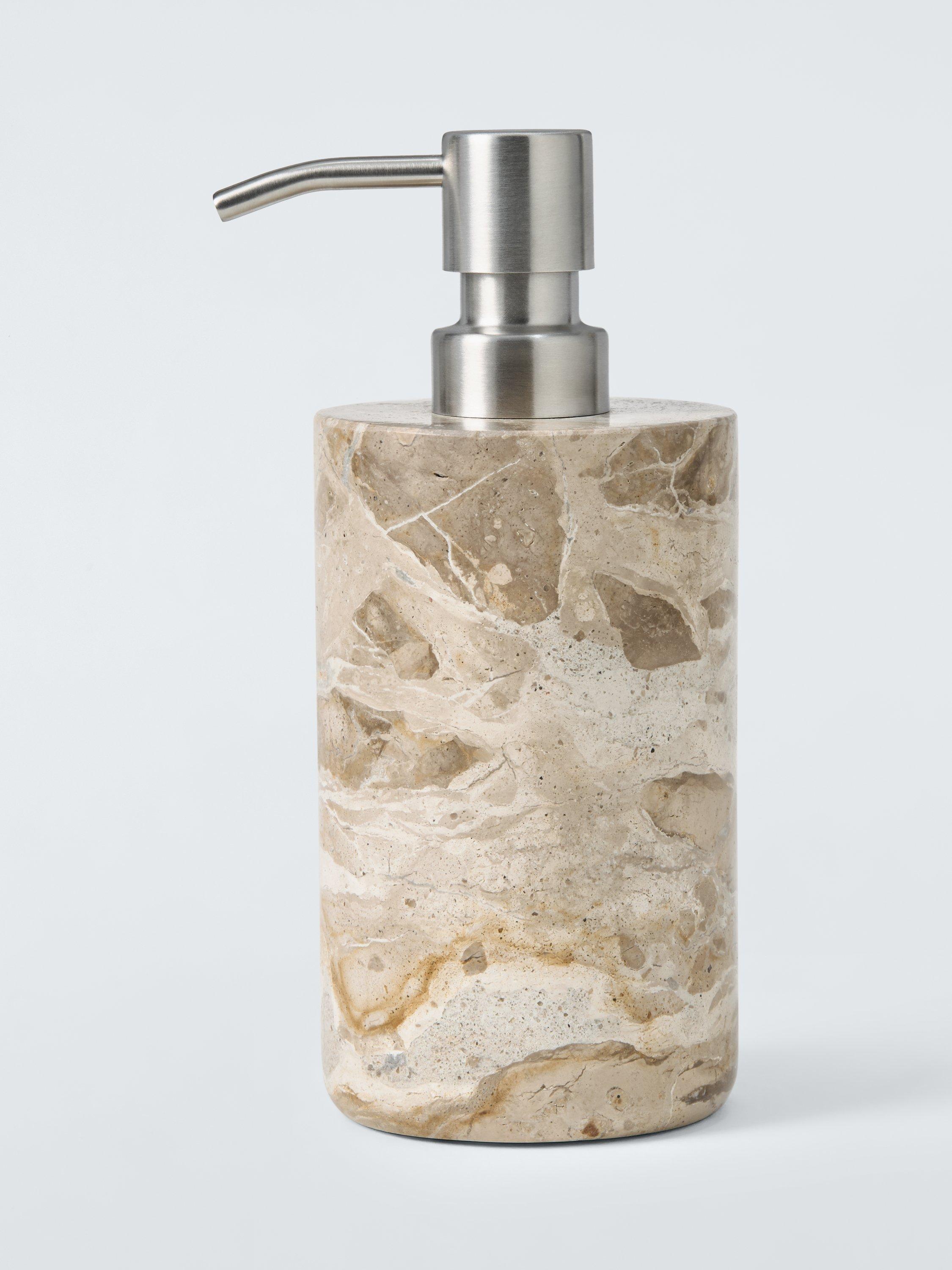 Marble makes a luxurious statement when used in a bathroom and this soap dispenser is handcrafted by expert artisans in the Indian city of Agra.