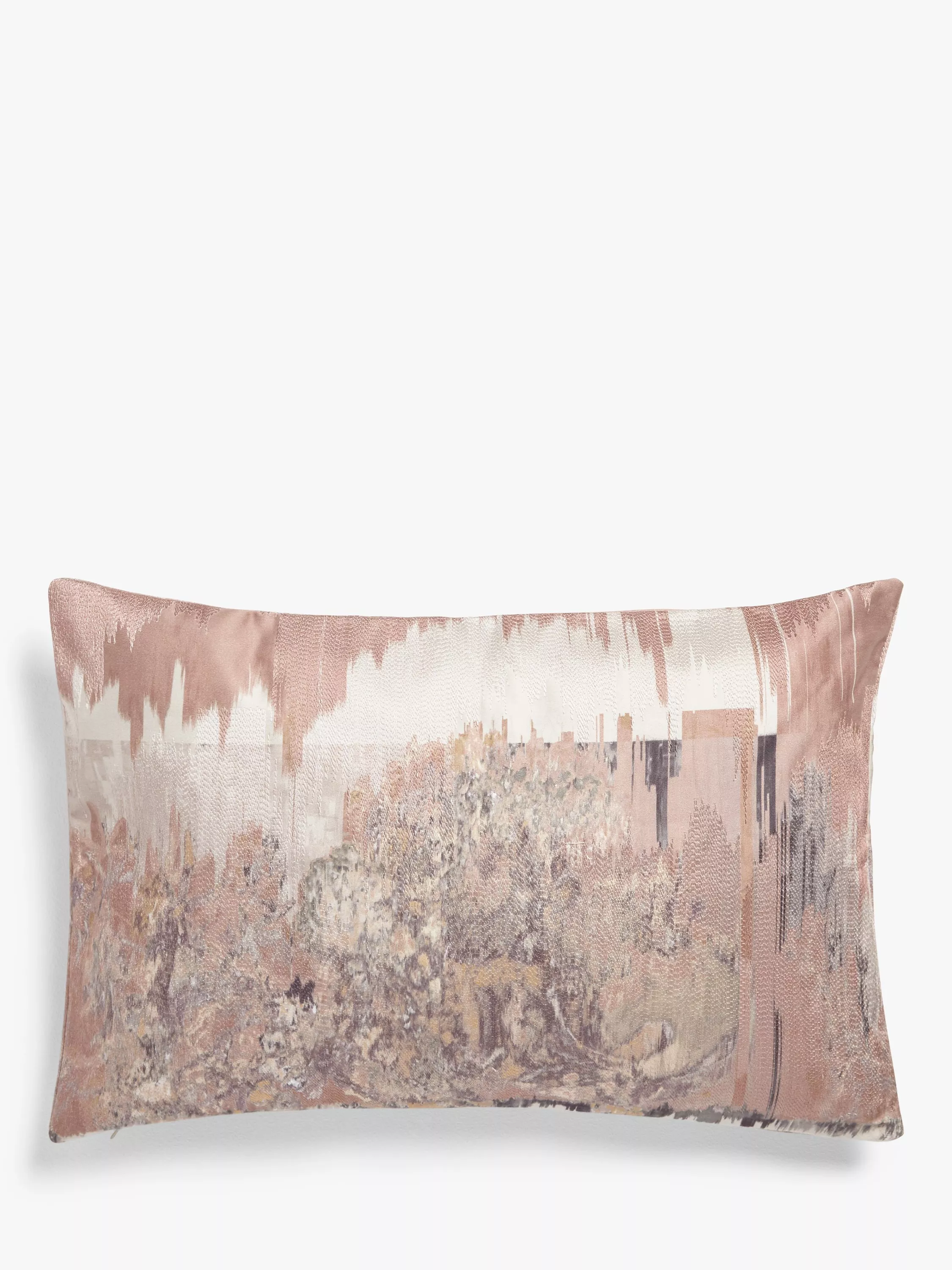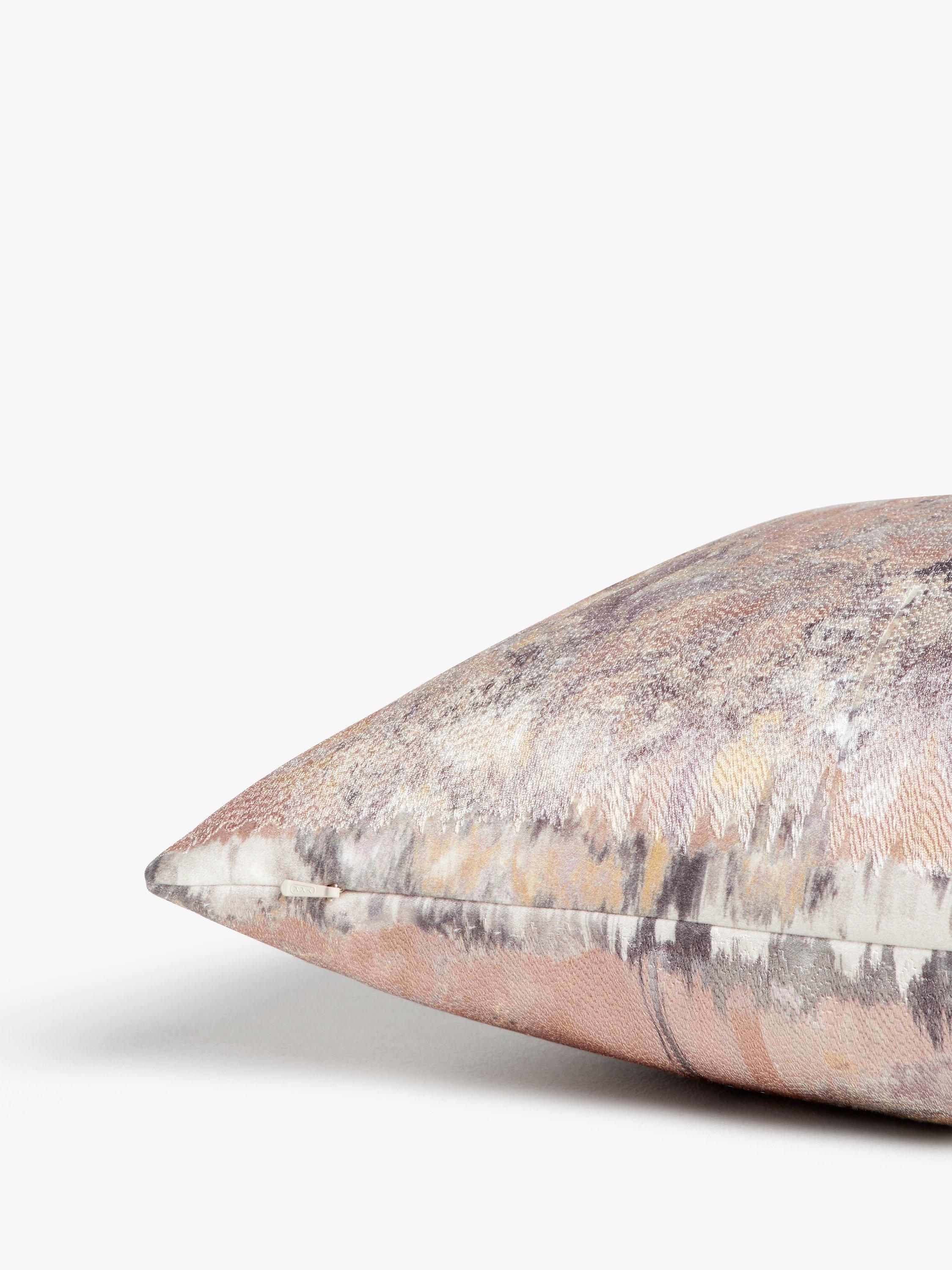 This embroidered fabric cushion has an attractive plaster effect in shades of pink.