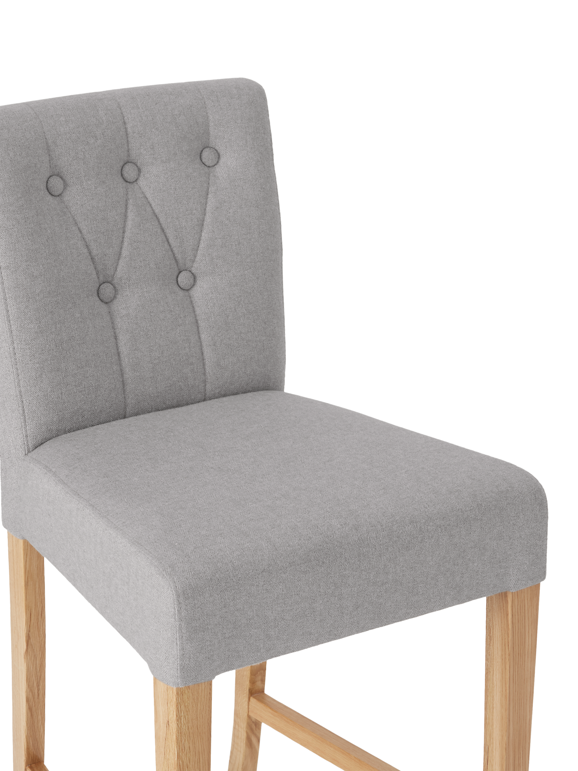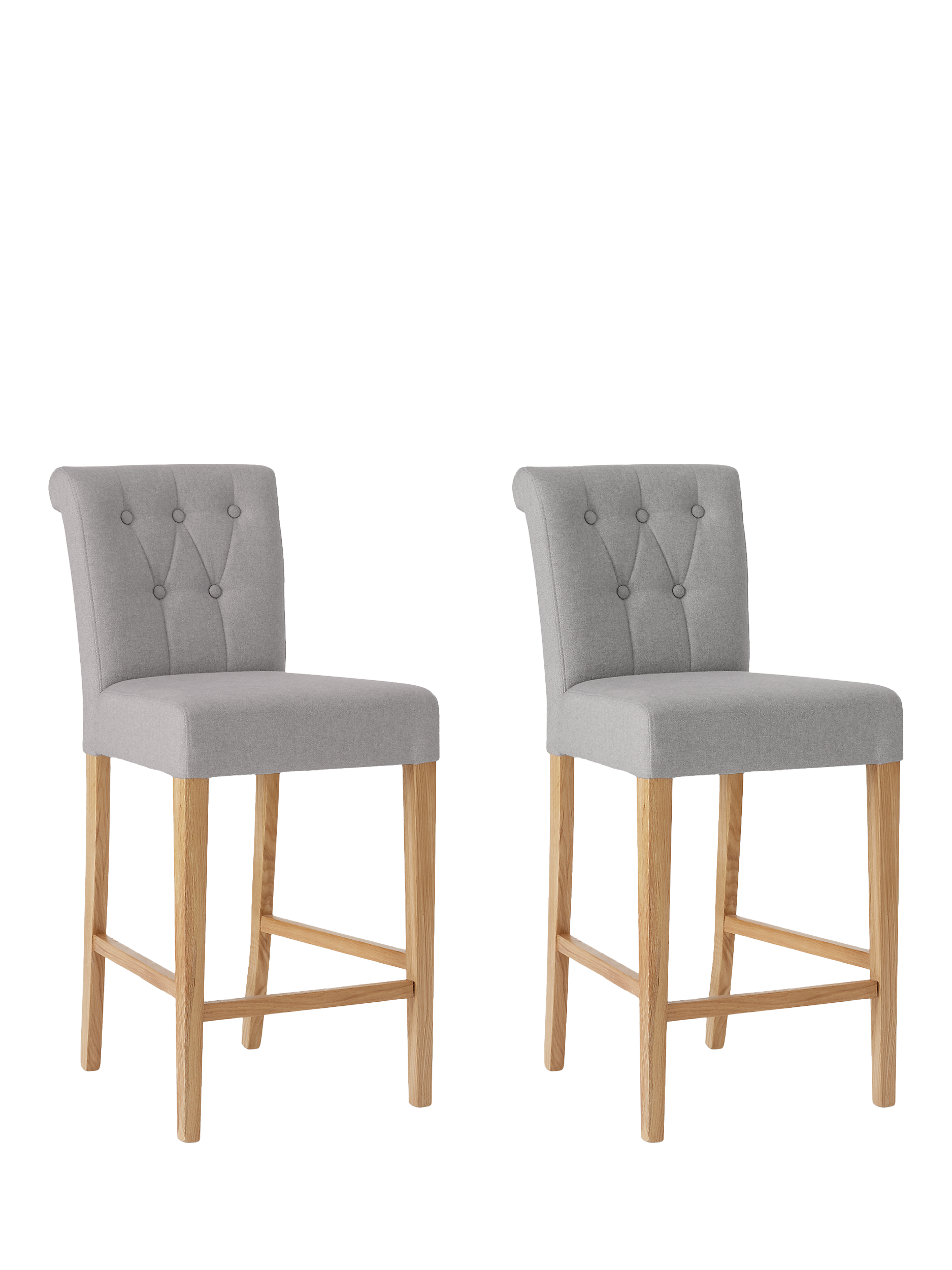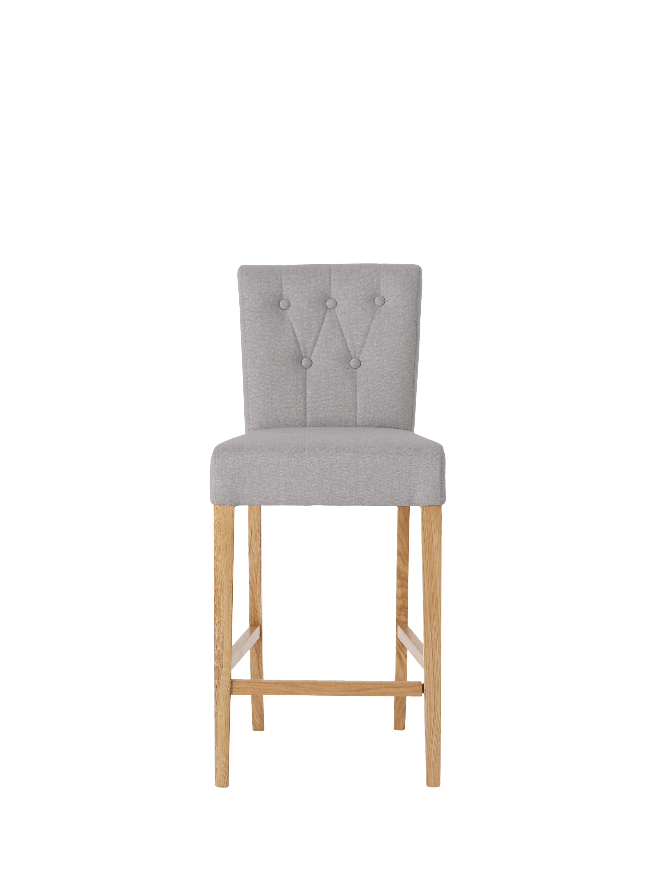 Our Margo bar chairs are slightly larger than conventional options, with a deep and wide seat upholstered with a plush foam filling. This makes them incredibly comfortable, so you can enjoy hours at your kitchen island or bar. The chair also has a rolled edge on the backrest and button-back detailing to offer a more traditional style, while the tapered legs have a clean, natural wood finish.