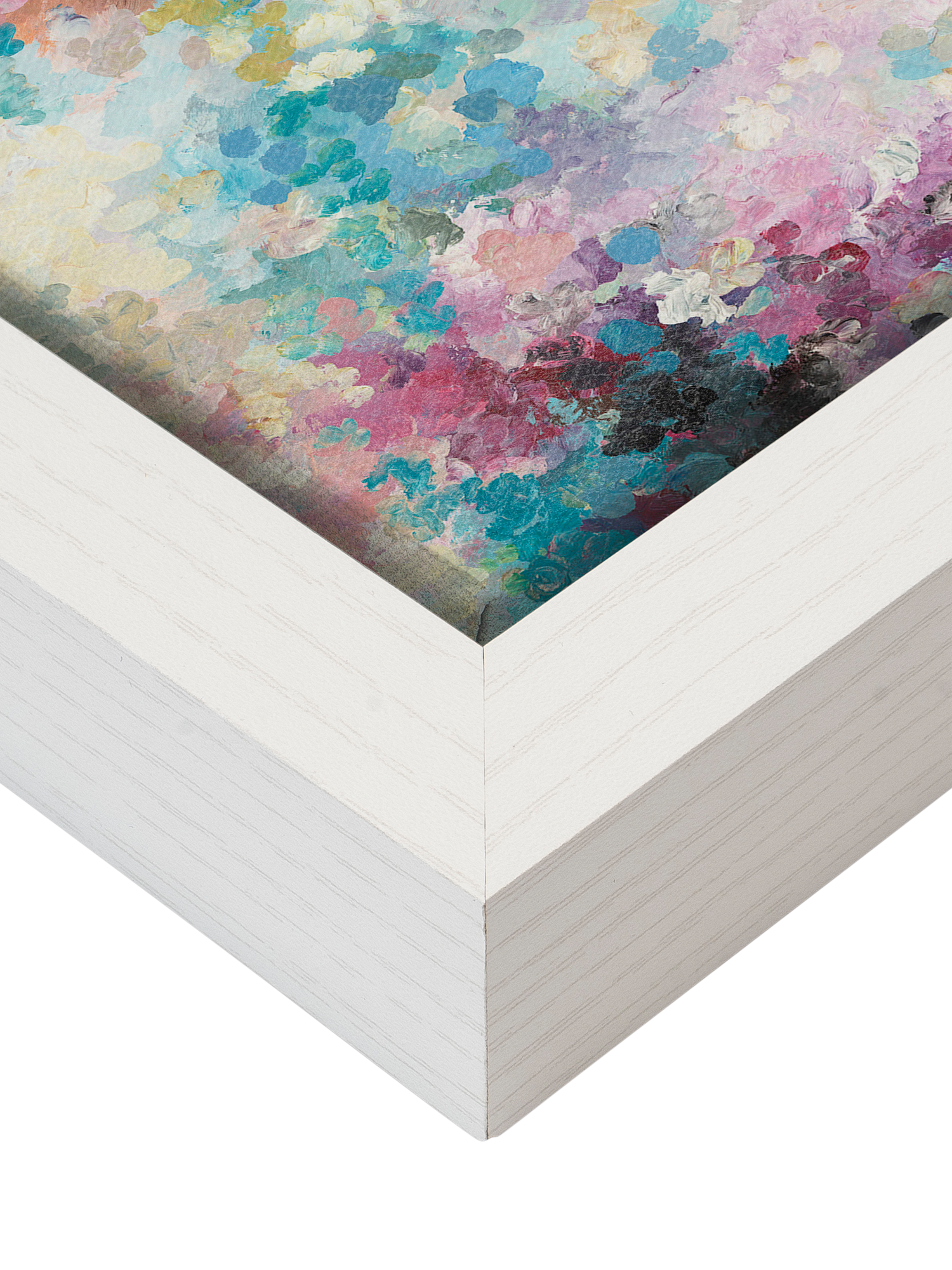 A colourful abstract print on canvas, 'La Dolce Vita' by artist Maria Esmar. Made in the UK, this print is float-mounted and framed, ready to hang on your wall.