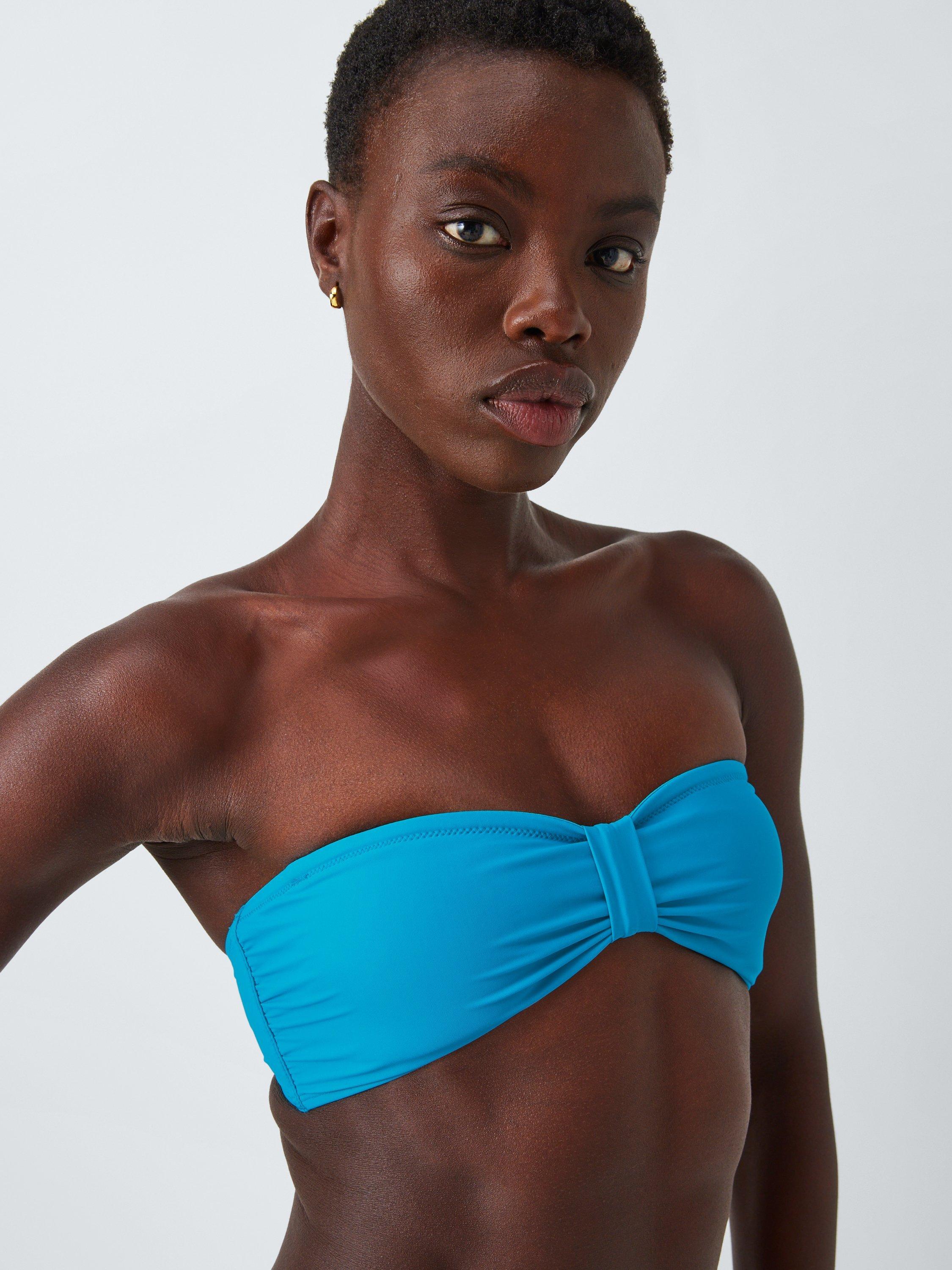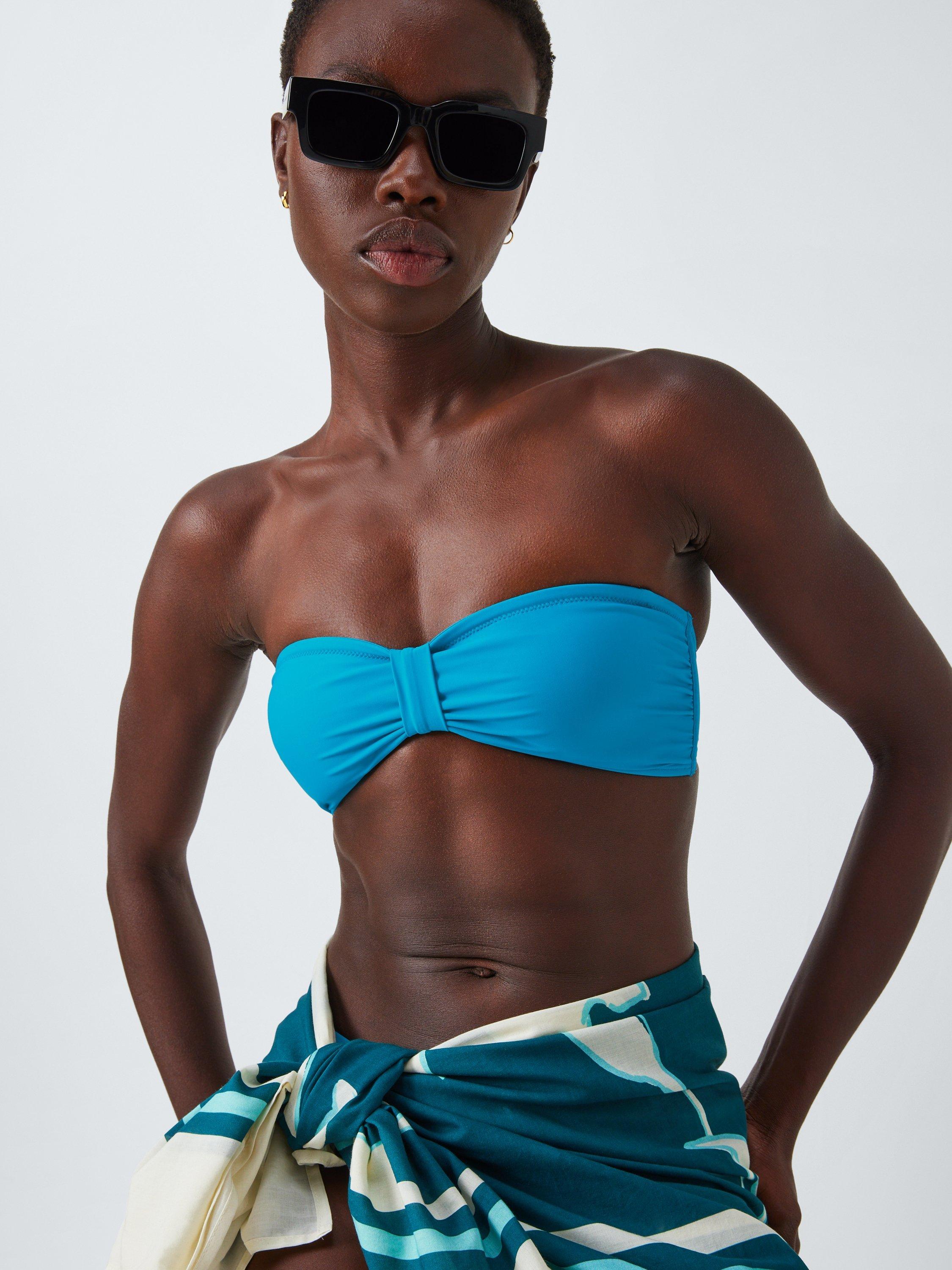 This bandeau bikini top has a detachable strap turning it into a halterneck when you need a little more support. The centre sleeve gathers the cup fabric, creating shape without padding. It's made with a high elastane content in the mix for a firmer, secure fit.