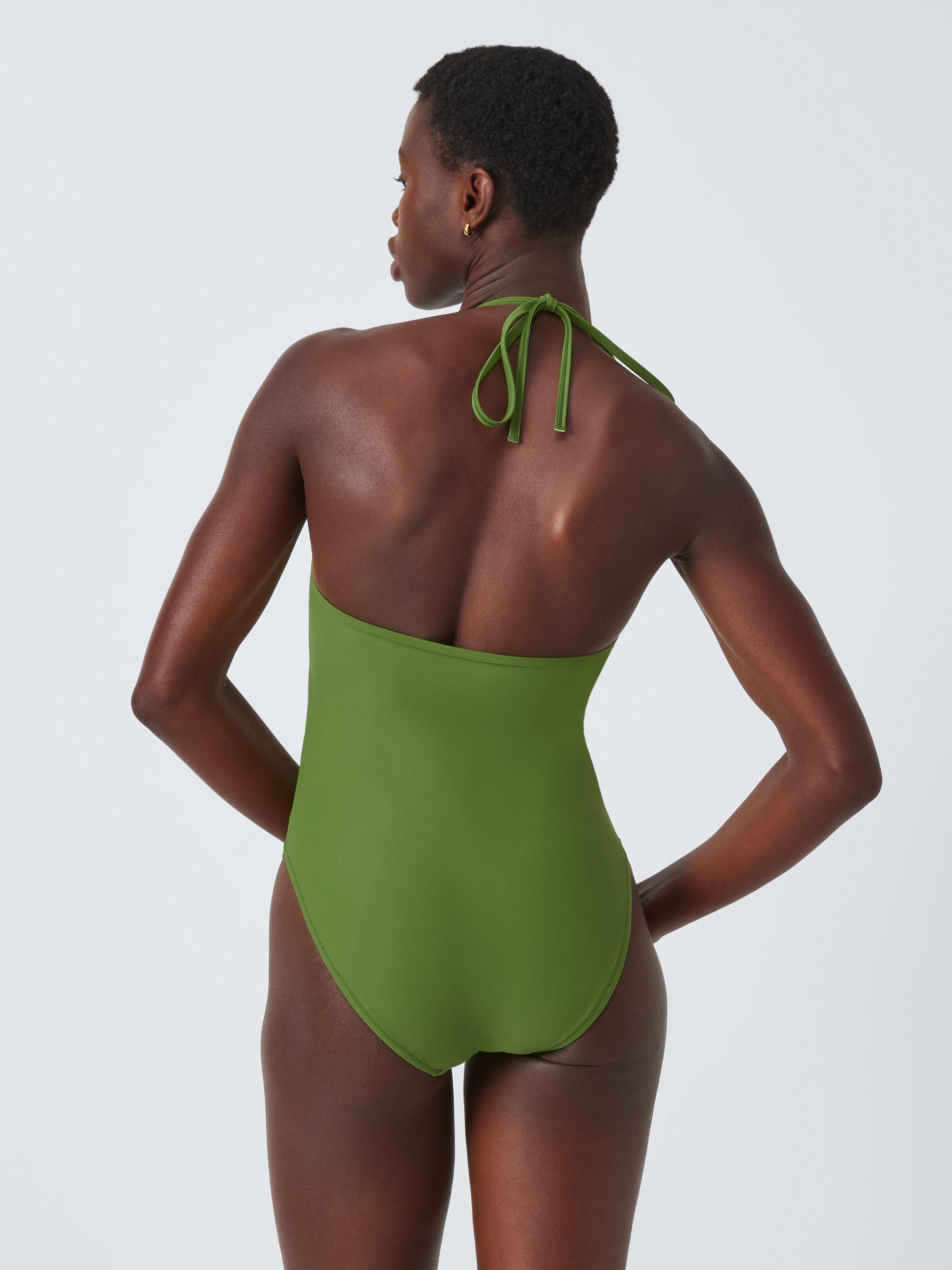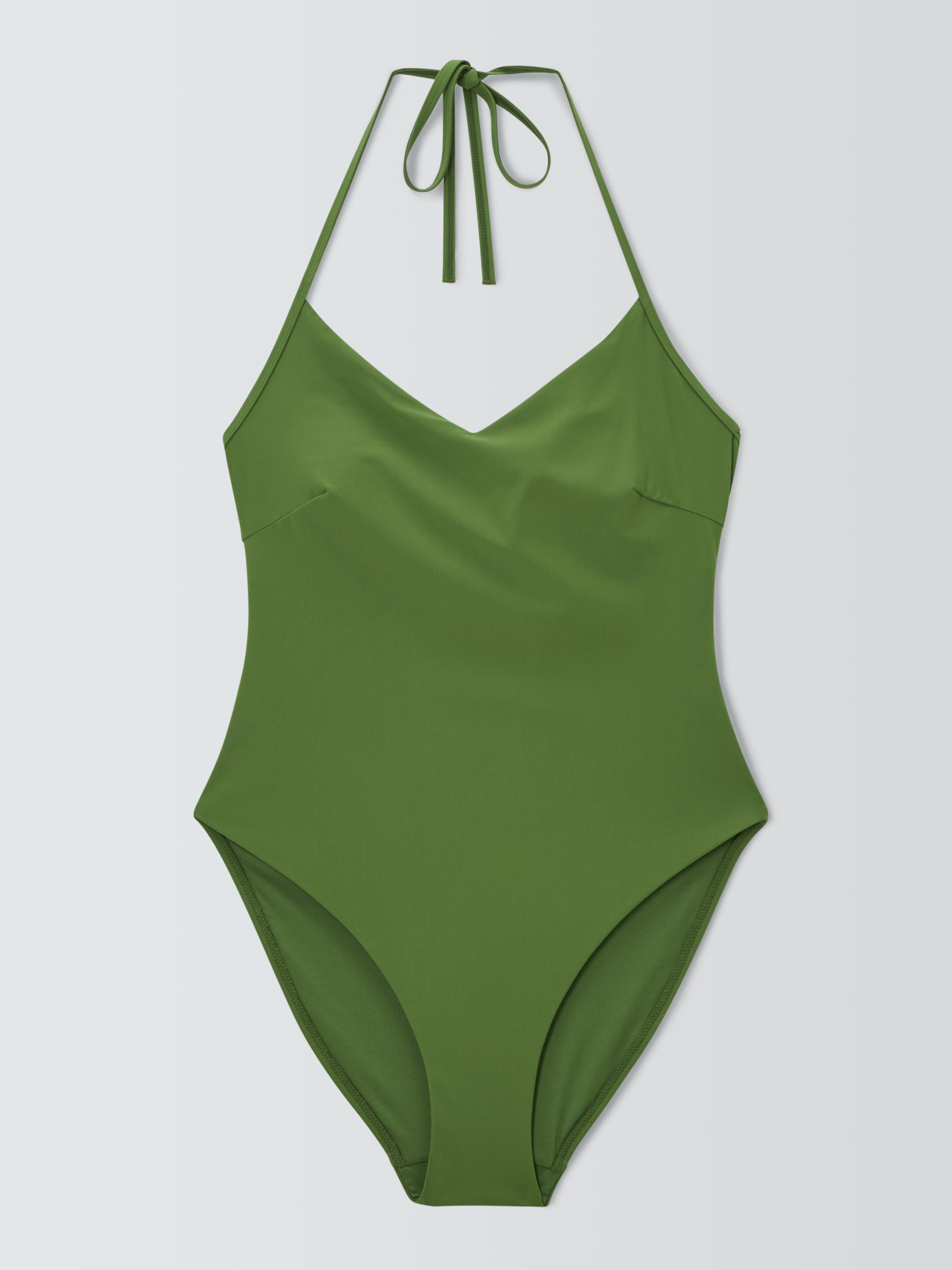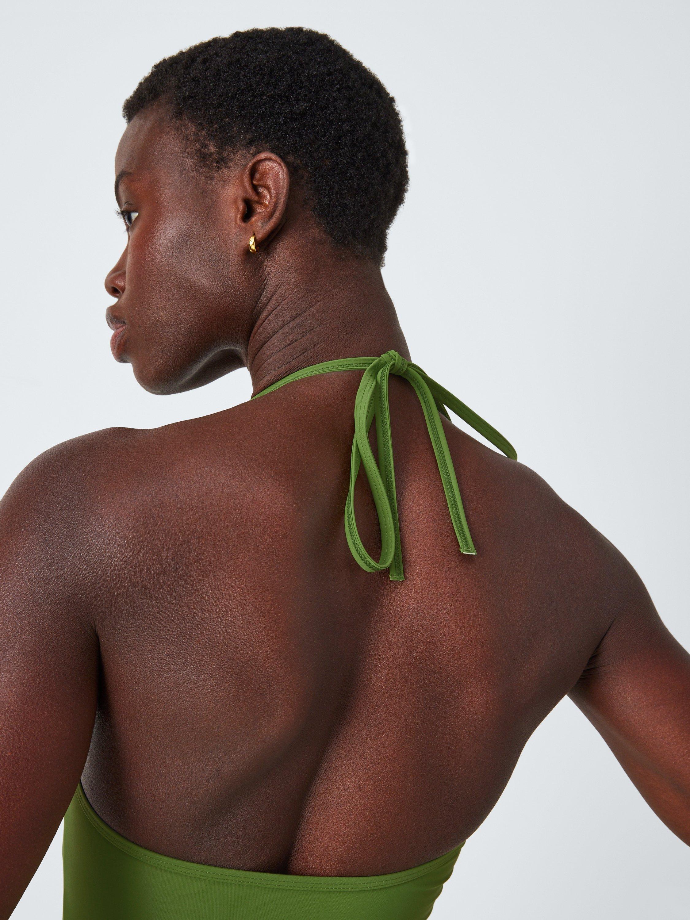 This swimsuit has string halterneck ties and a high-cut leg line to elongate your legs. It has a high elastane content in the fabric mix for a firmer, secure fit.
