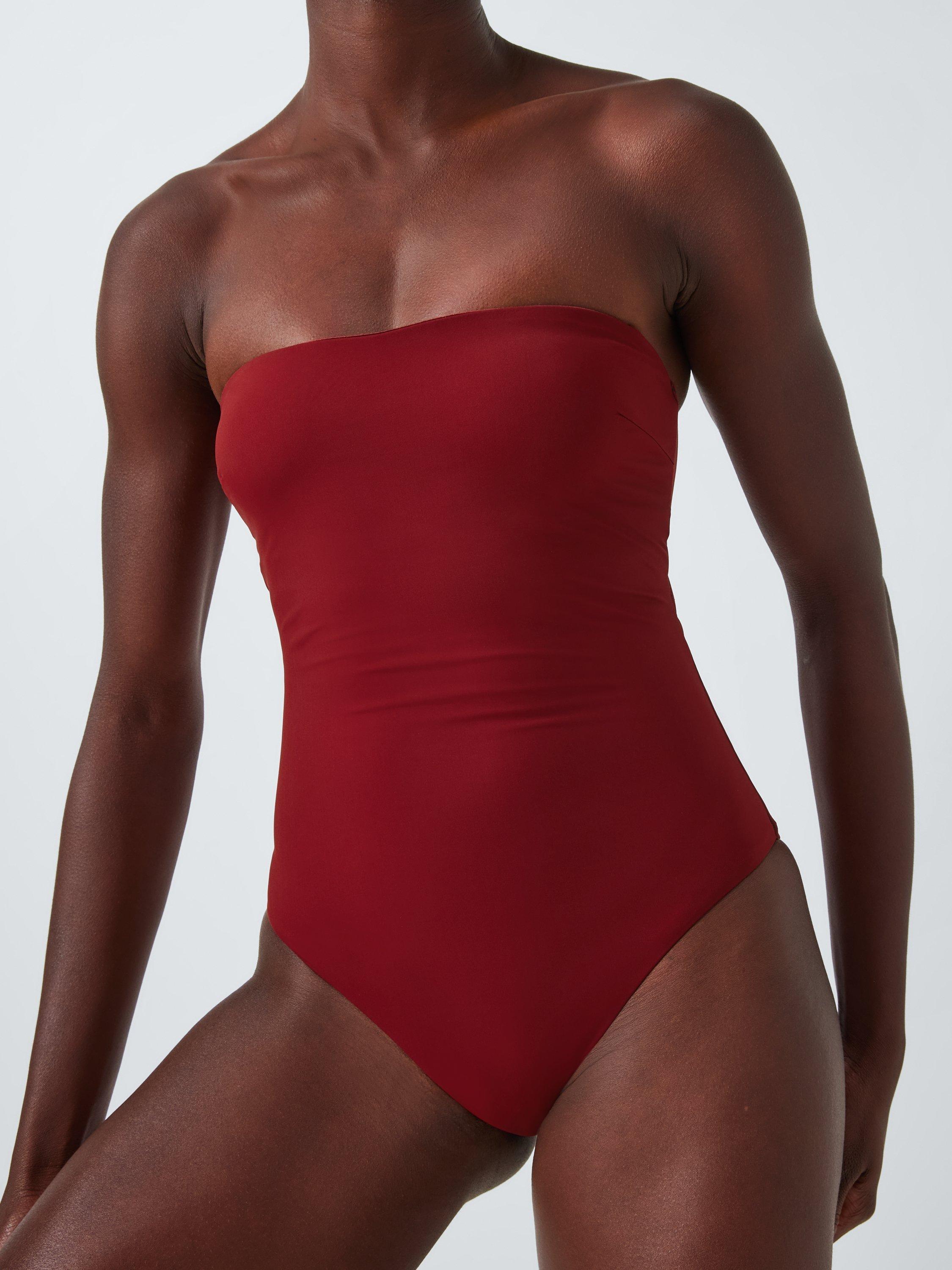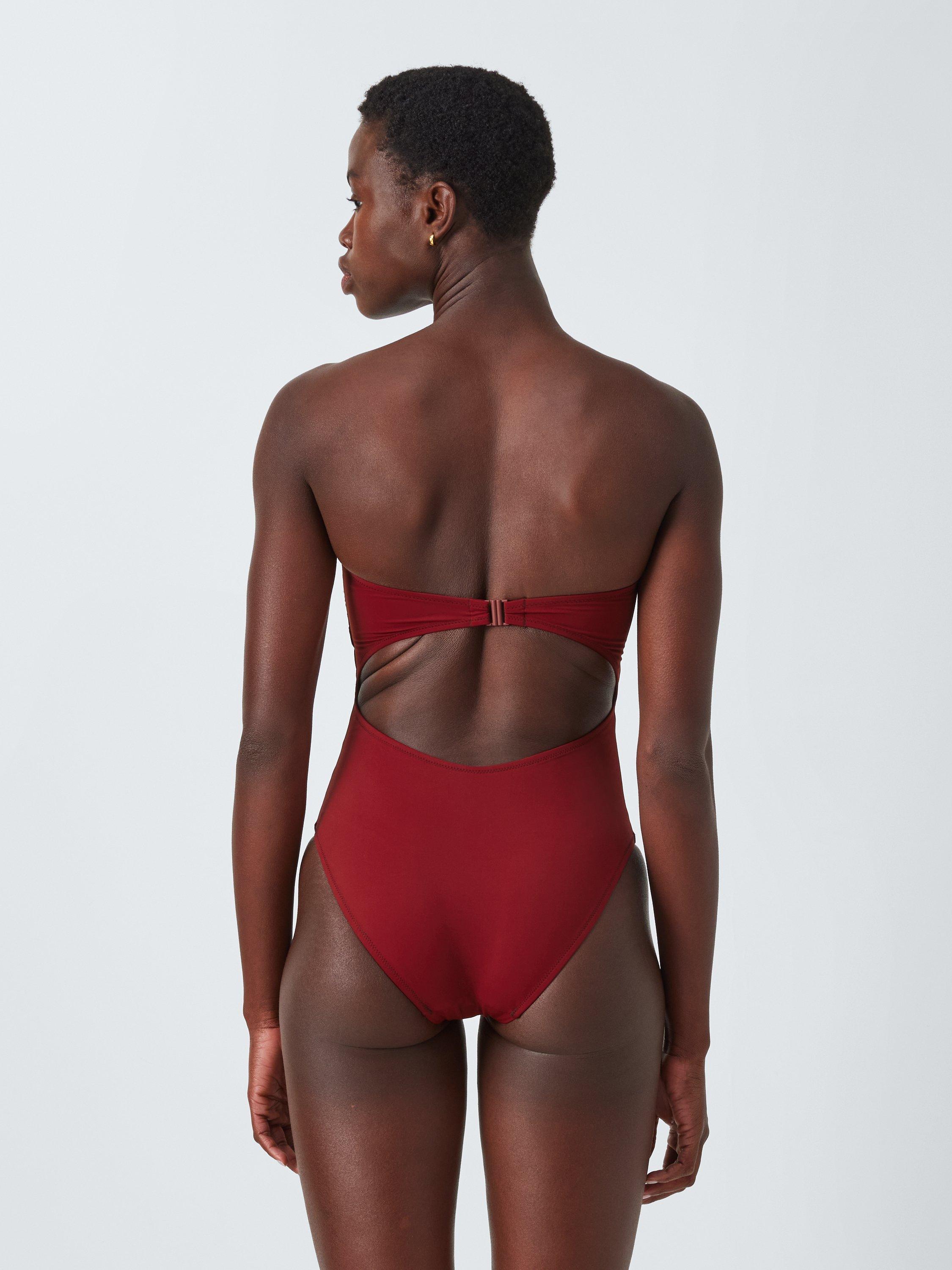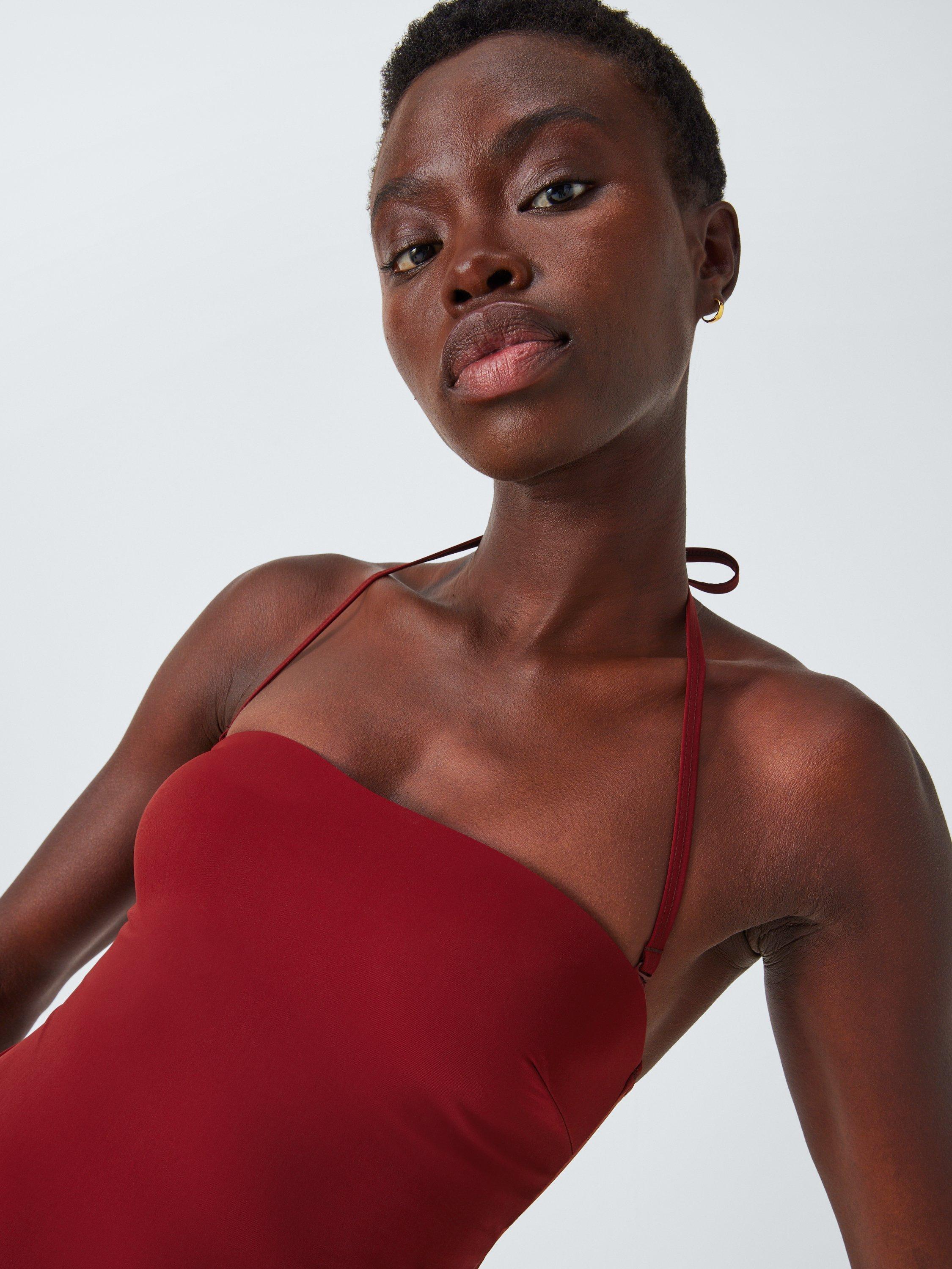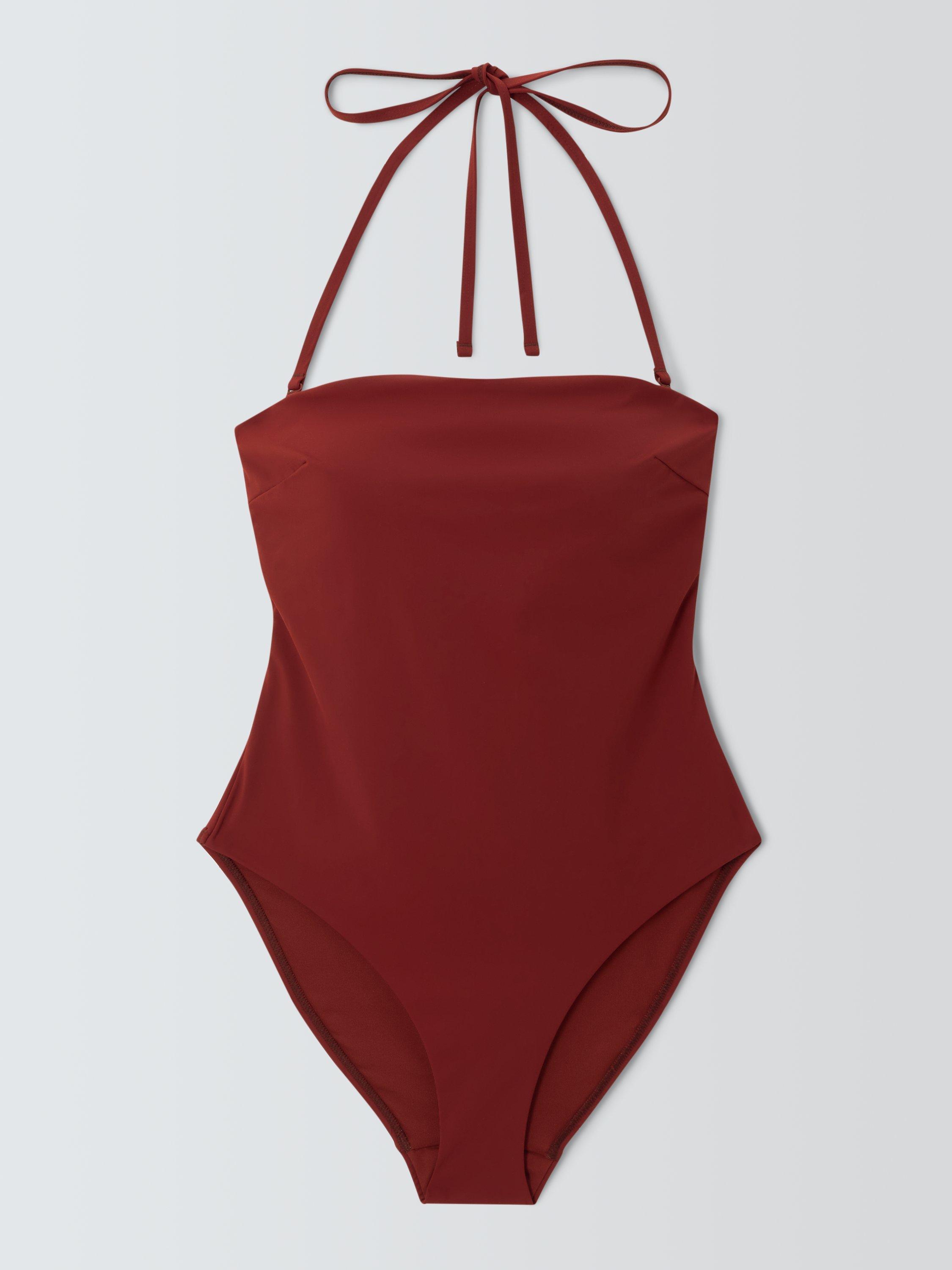 This swimsuit has a clasp fastening at the back with a cut-out detail. Detachable straps also give you the option to switch the style between bandeau and halterneck. It's made with a high elastane content for a firmer, secure fit.
