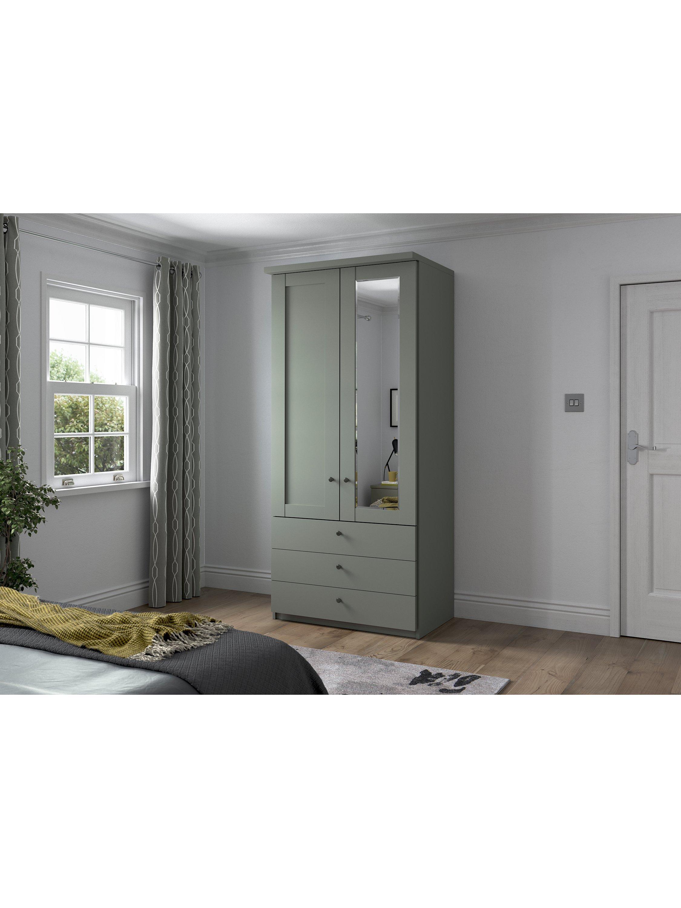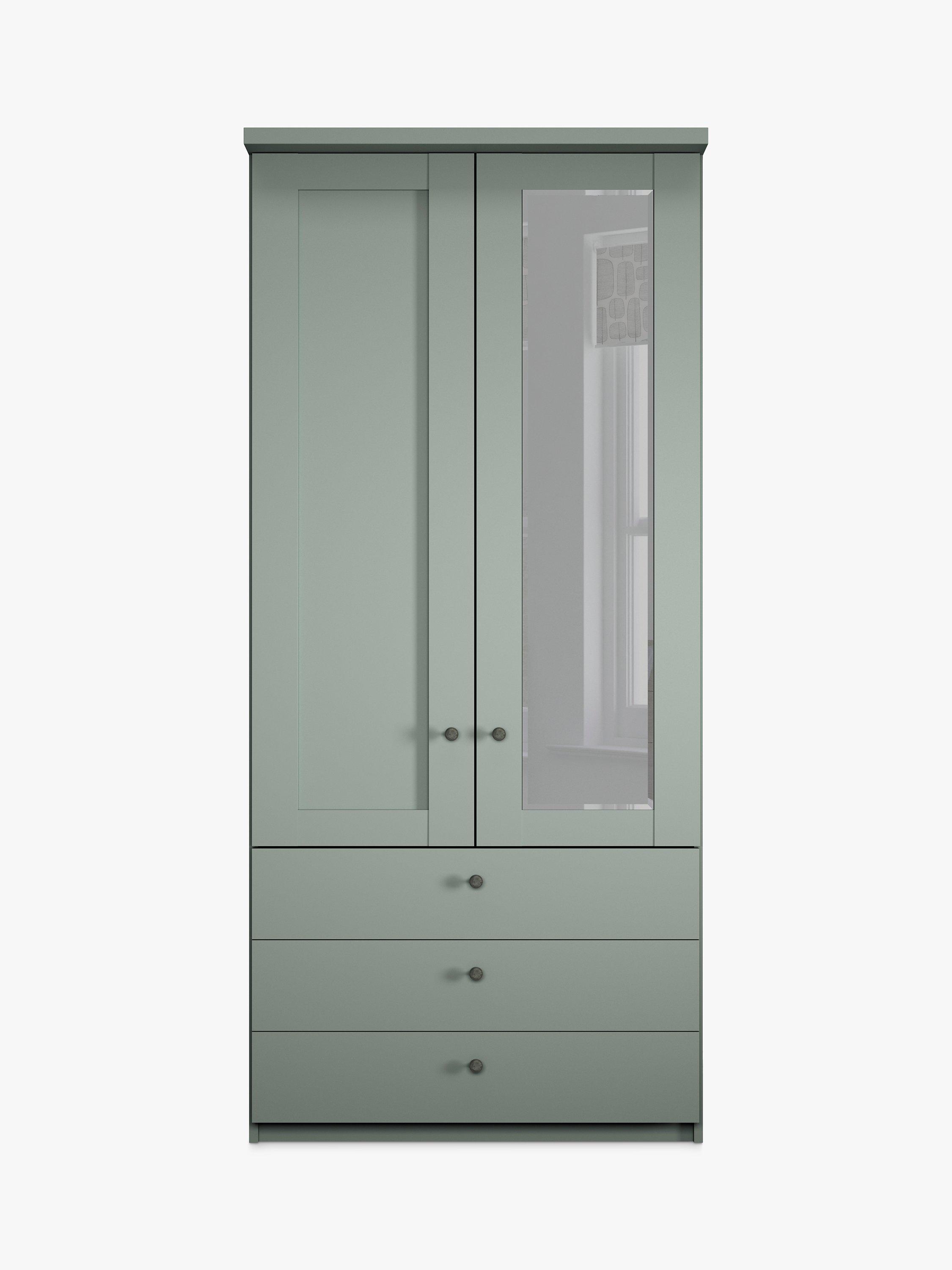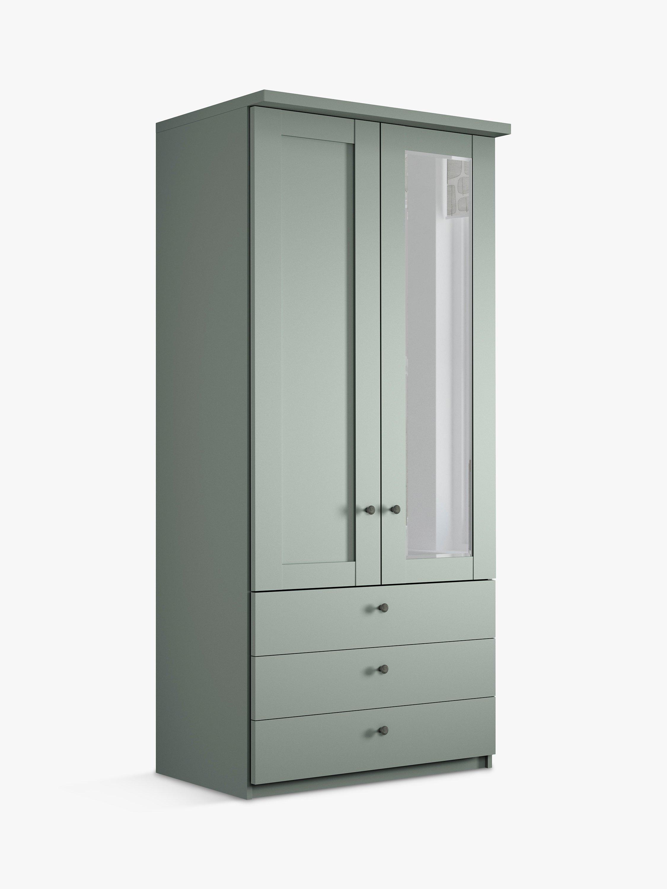 John LewisMarlow 100cm Hinged Wardrobe with Right Mirror & 3 Drawers, Sage Green