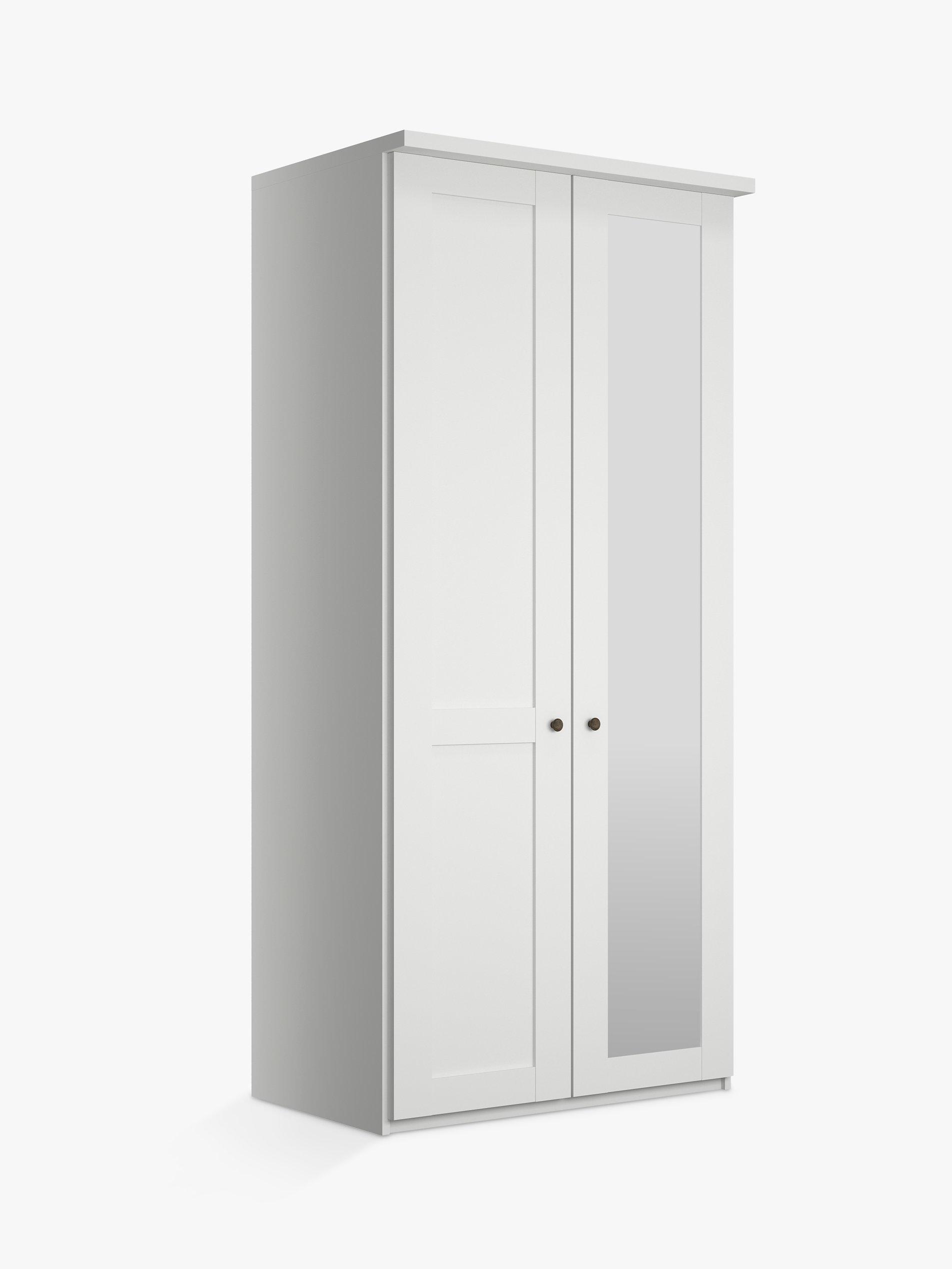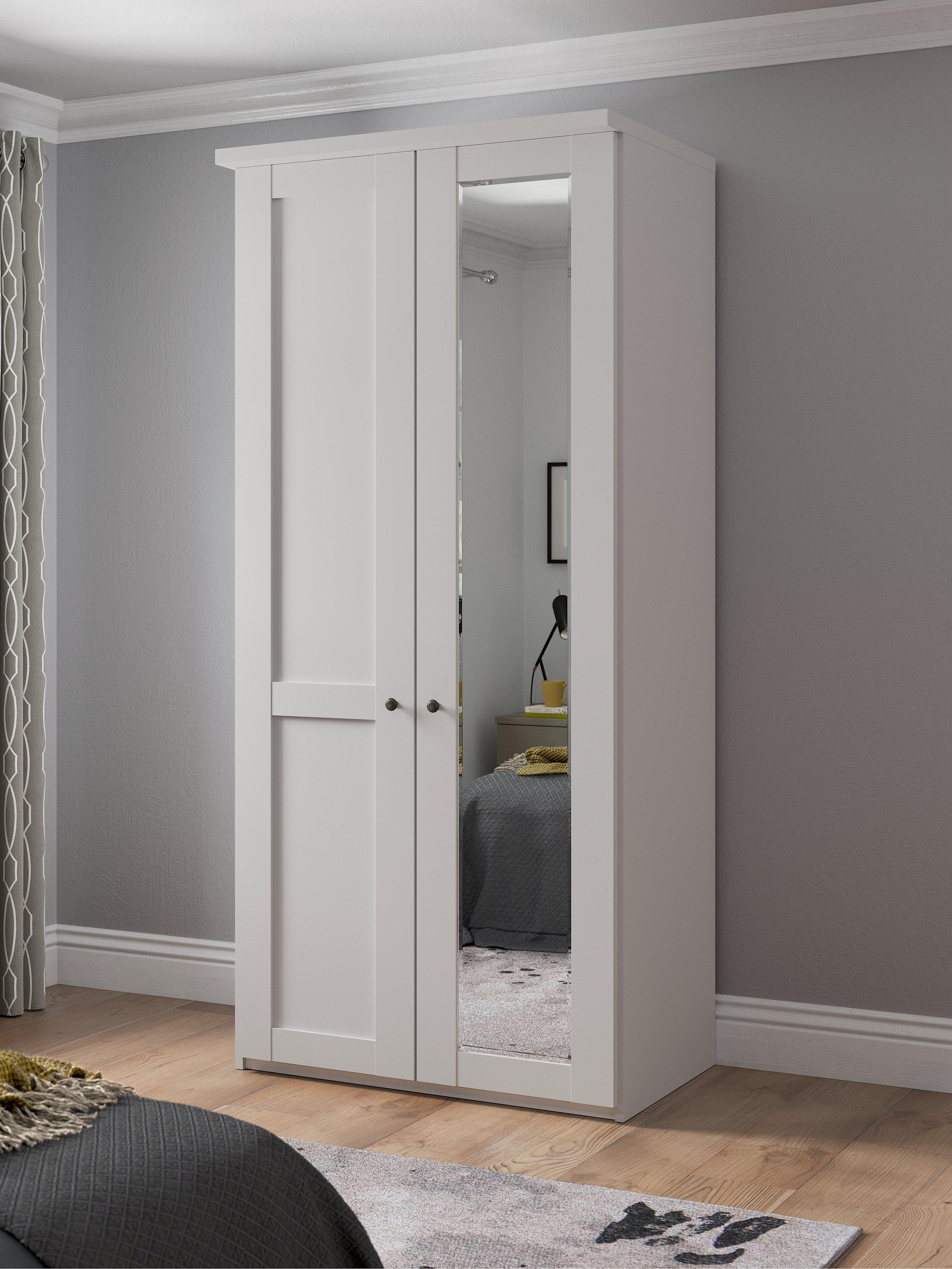 This wardrobe's right-hand door has an external mirror. The interior has a single compartment with two shelves and a hanging rail, all of which are fully adjustable to suit your requirements. This product is delivered and assembled by the supplier for your convenience.
