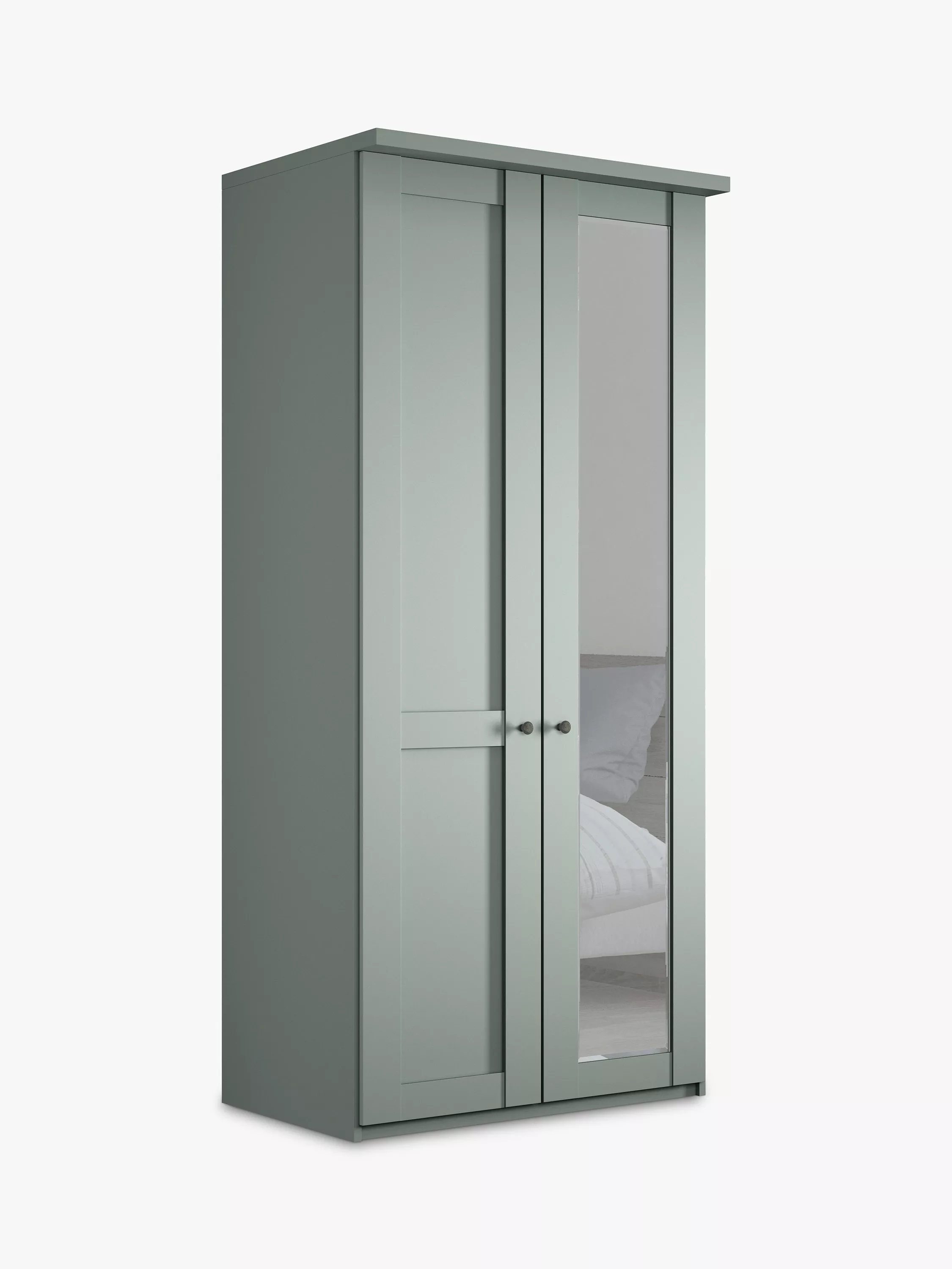 This wardrobe's right-hand door has an external mirror. The interior has a single compartment with two shelves and a hanging rail, all of which are fully adjustable to suit your requirements. This product is delivered and assembled by the supplier for your convenience.