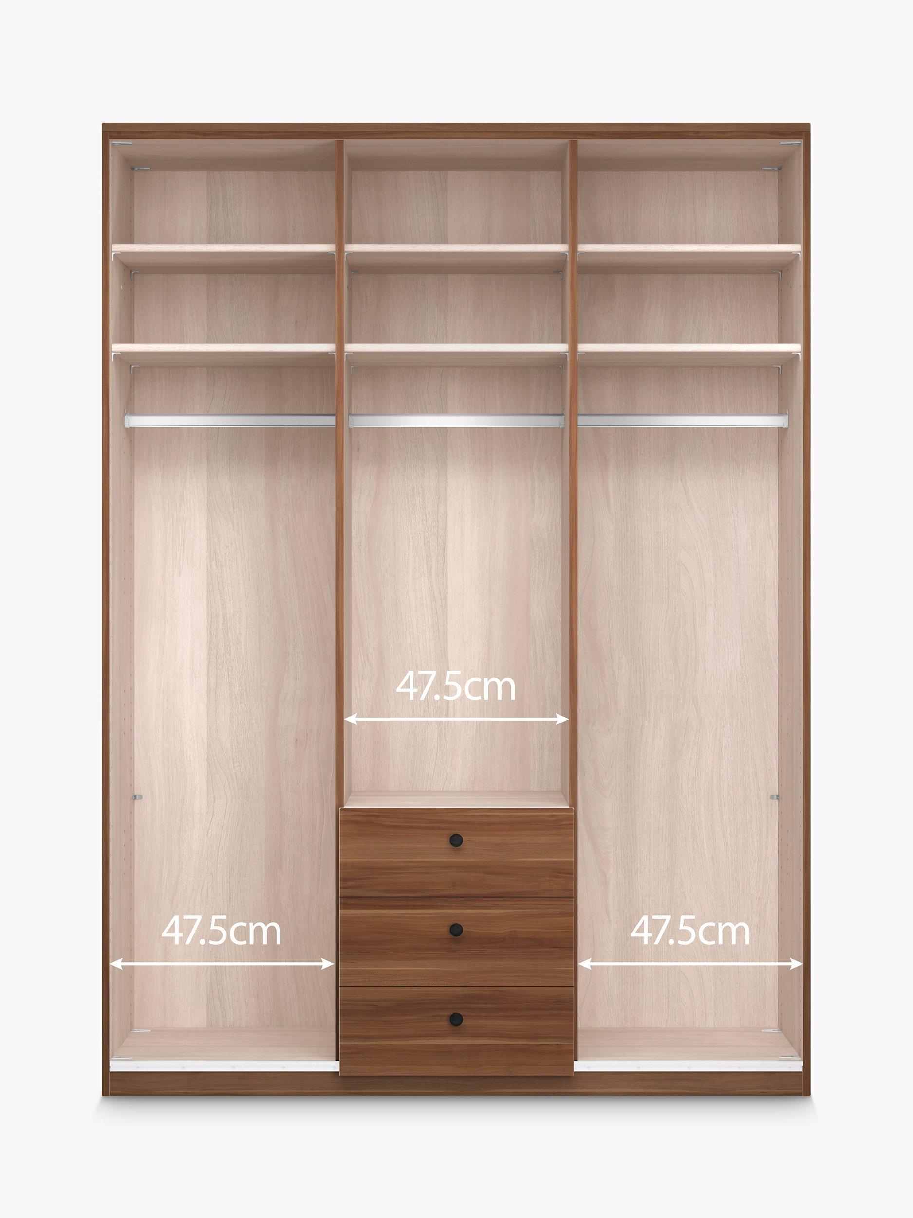 - Additional shelves - width 47.5cm Hanging rails - width 47.5cm Internal drawer units - width 47.5cm Internal LED lights External LED linear lights