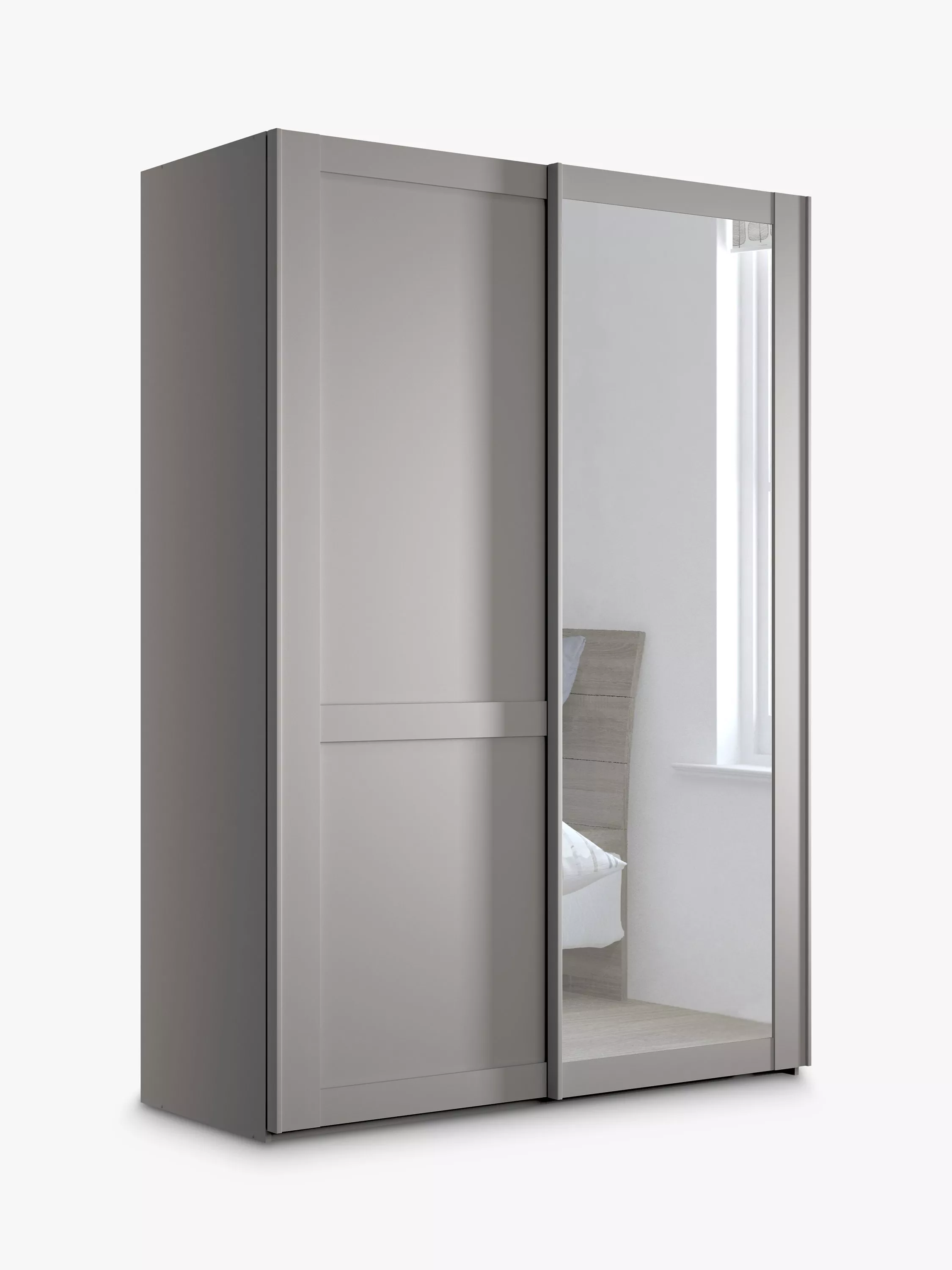 This wardrobe's right hand door has an exterior mirror. The interior has a double and a single compartment with two shelves and a hanging rail in each, all of which are fully adjustable to suit your requirements. This product is delivered and assembled by the supplier for your convenience.
