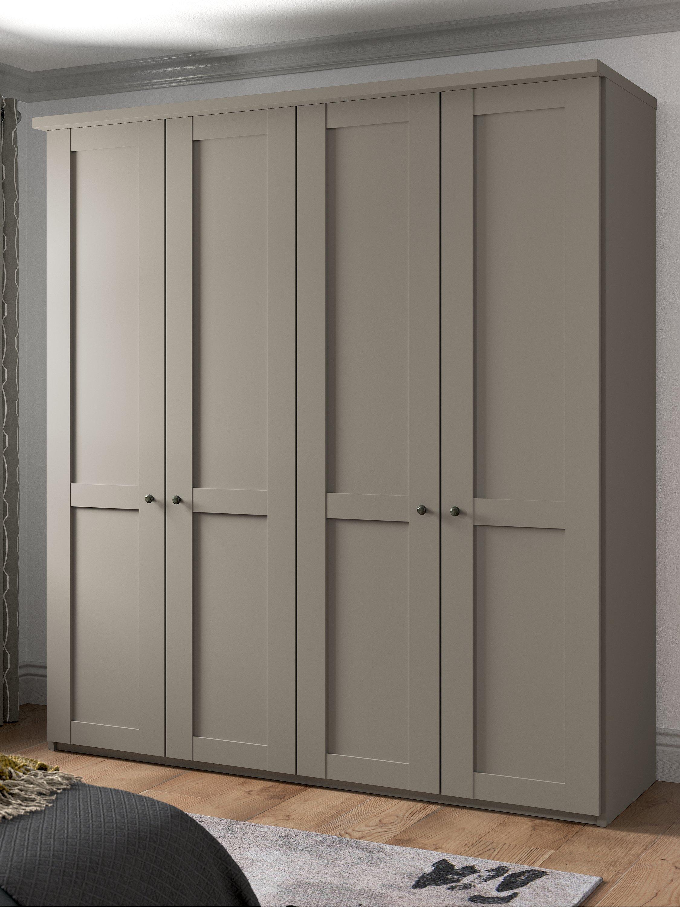 The elegant and classic look of our Marlow range suits most decor. Versatile and practical as a bedroom storage solution, the range is available in a choice of finishes: matt Off White, matt Havana and matt Pebble Grey, and either with or without mirrors. The exterior is complemented with an attractive cornice detail at the top and hinged doors with handles in a vintage pewter finish.