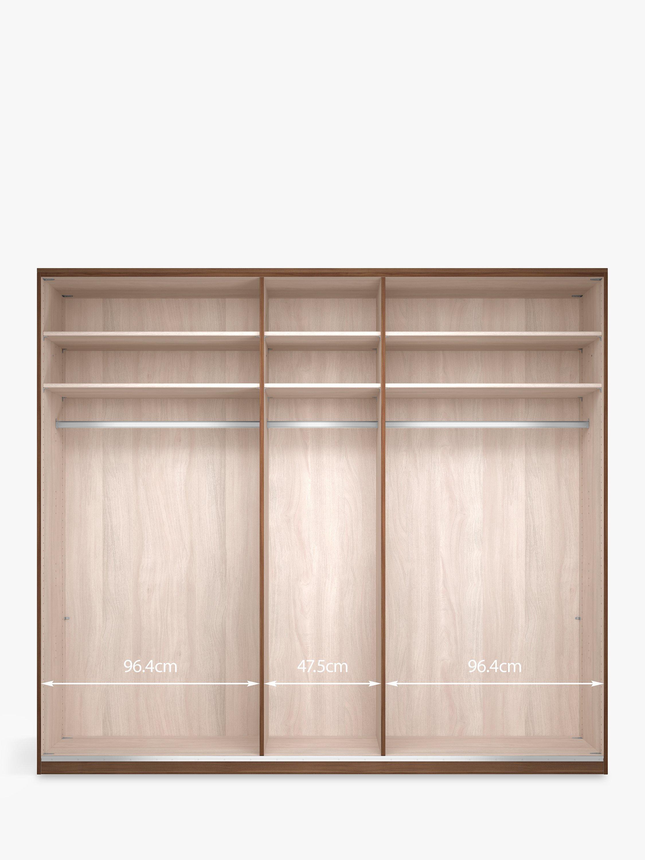 - W96.4cm and W47.5cm additional shelves, hanging rails and internal drawer units; internal LED lights; external LED linear lights