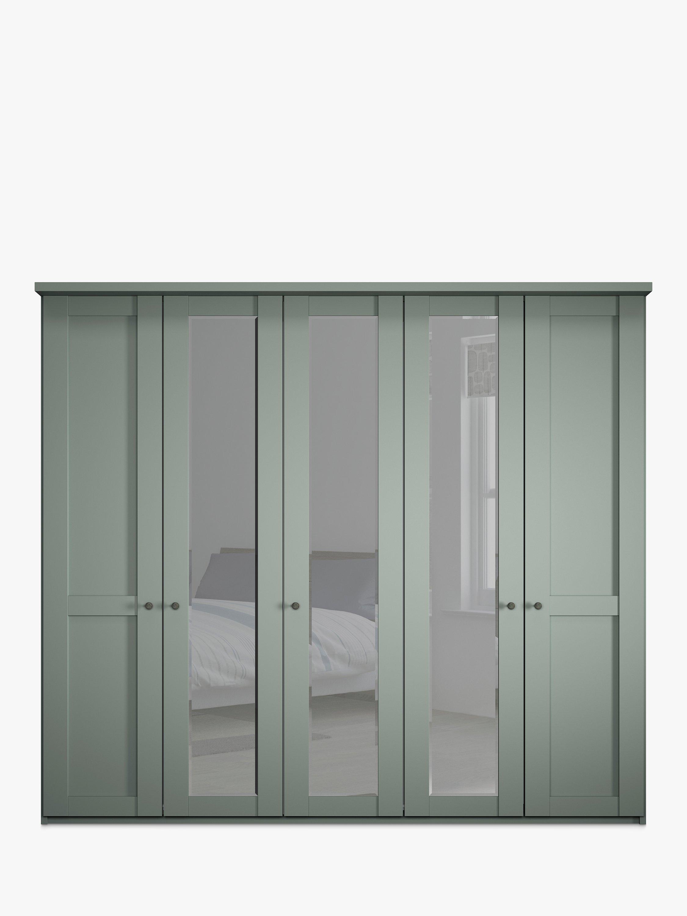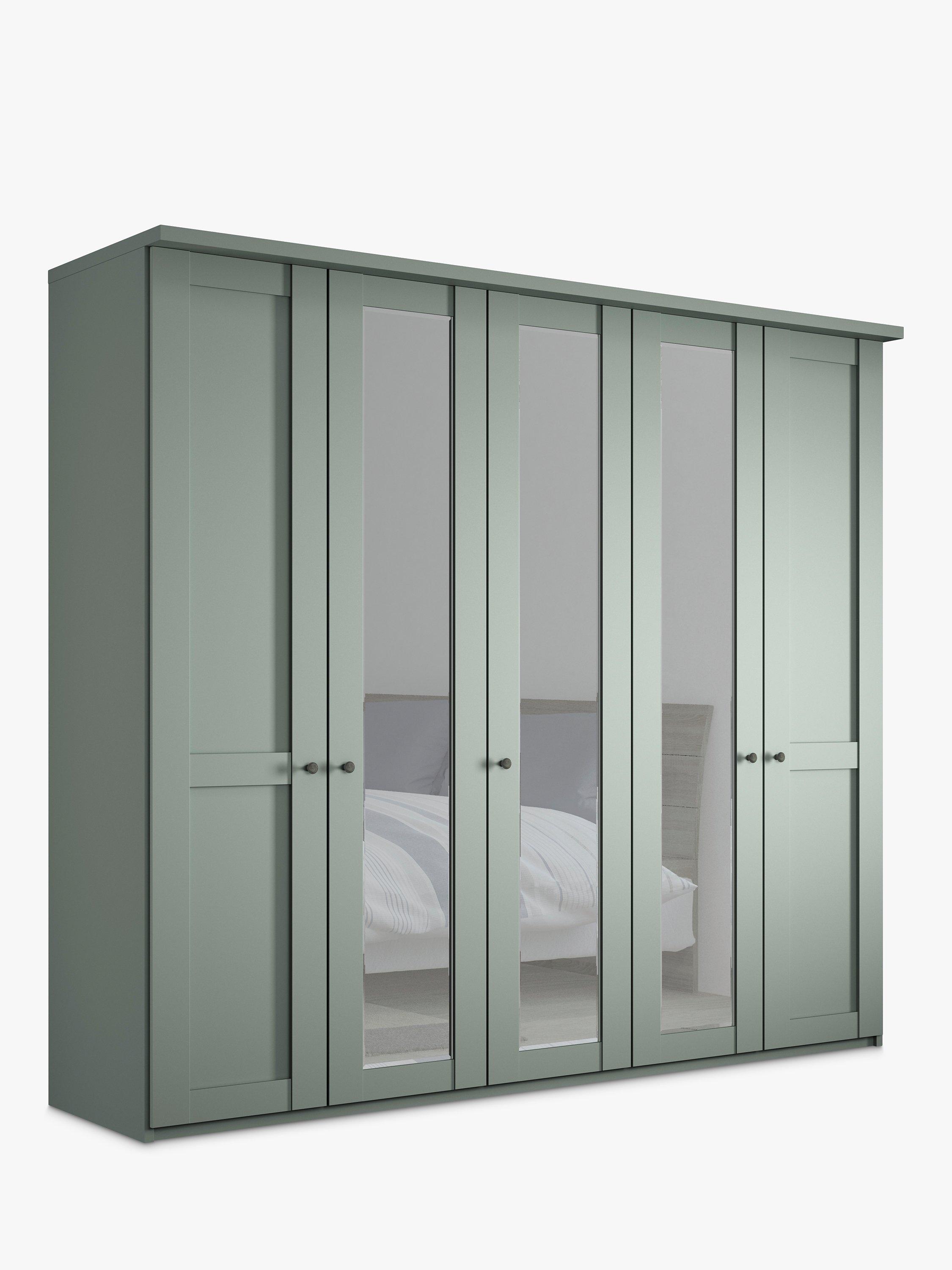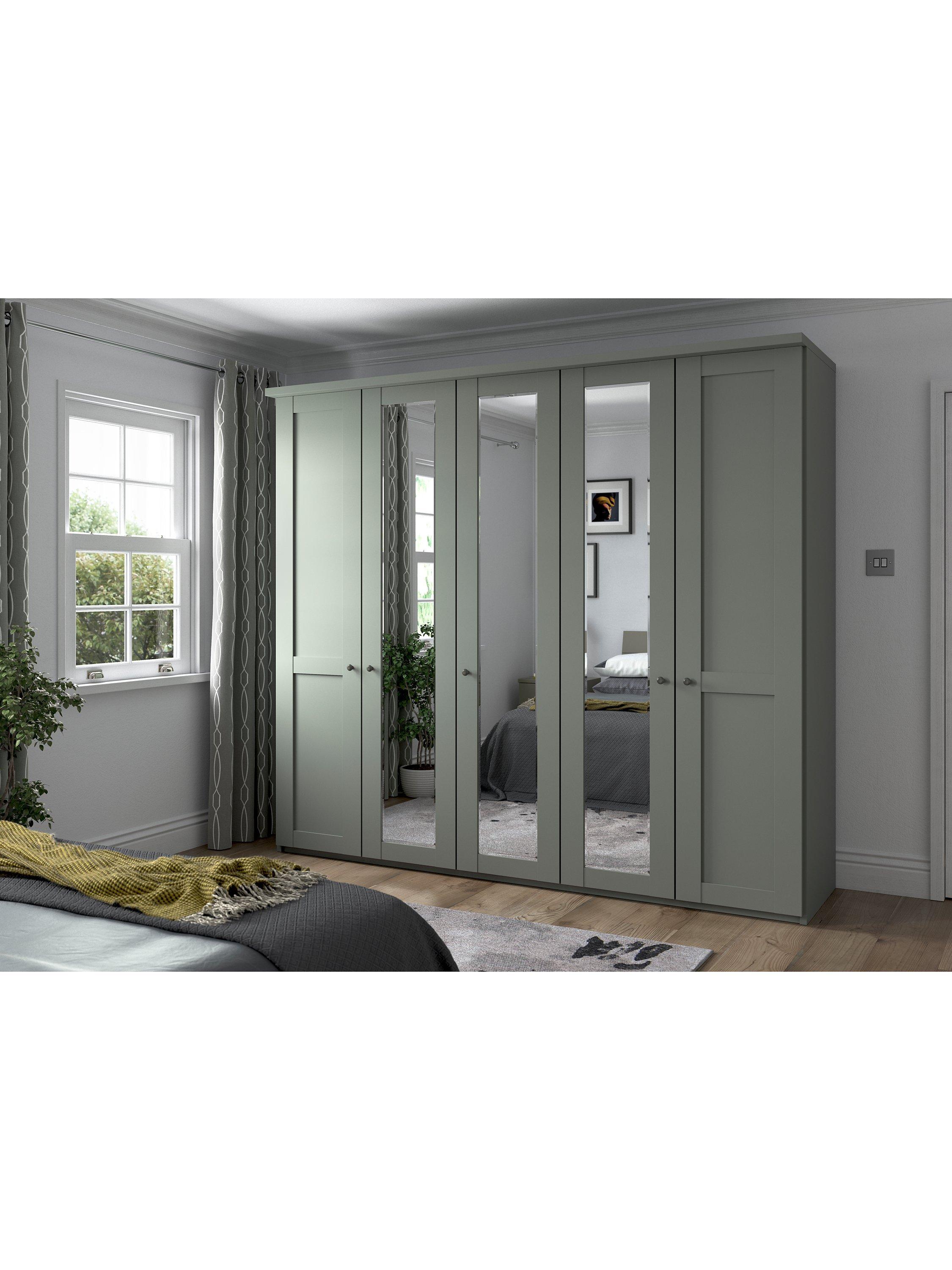 This wardrobe's three middle doors have exterior mirrors. The interior has two double compartments and a single compartment with two shelves and a hanging rail in each, all of which are fully adjustable to suit your requirements. This product is delivered and assembled by the supplier for your convenience.