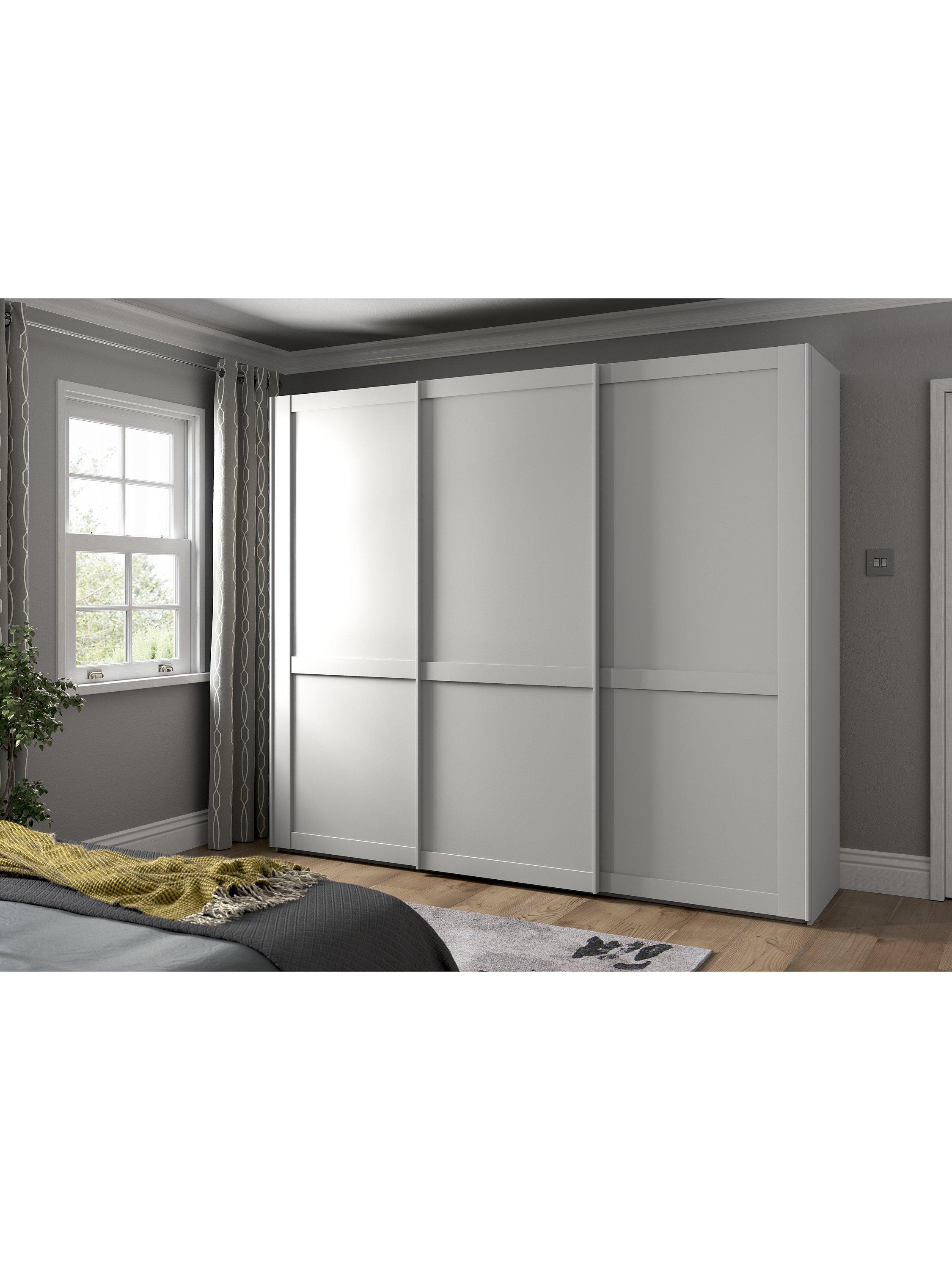 This wardrobe's interior has two doubles and a single compartment with two shelves and a hanging rail in each, all of which are fully adjustable to suit your requirements. This product is delivered and assembled by the supplier for your convenience.