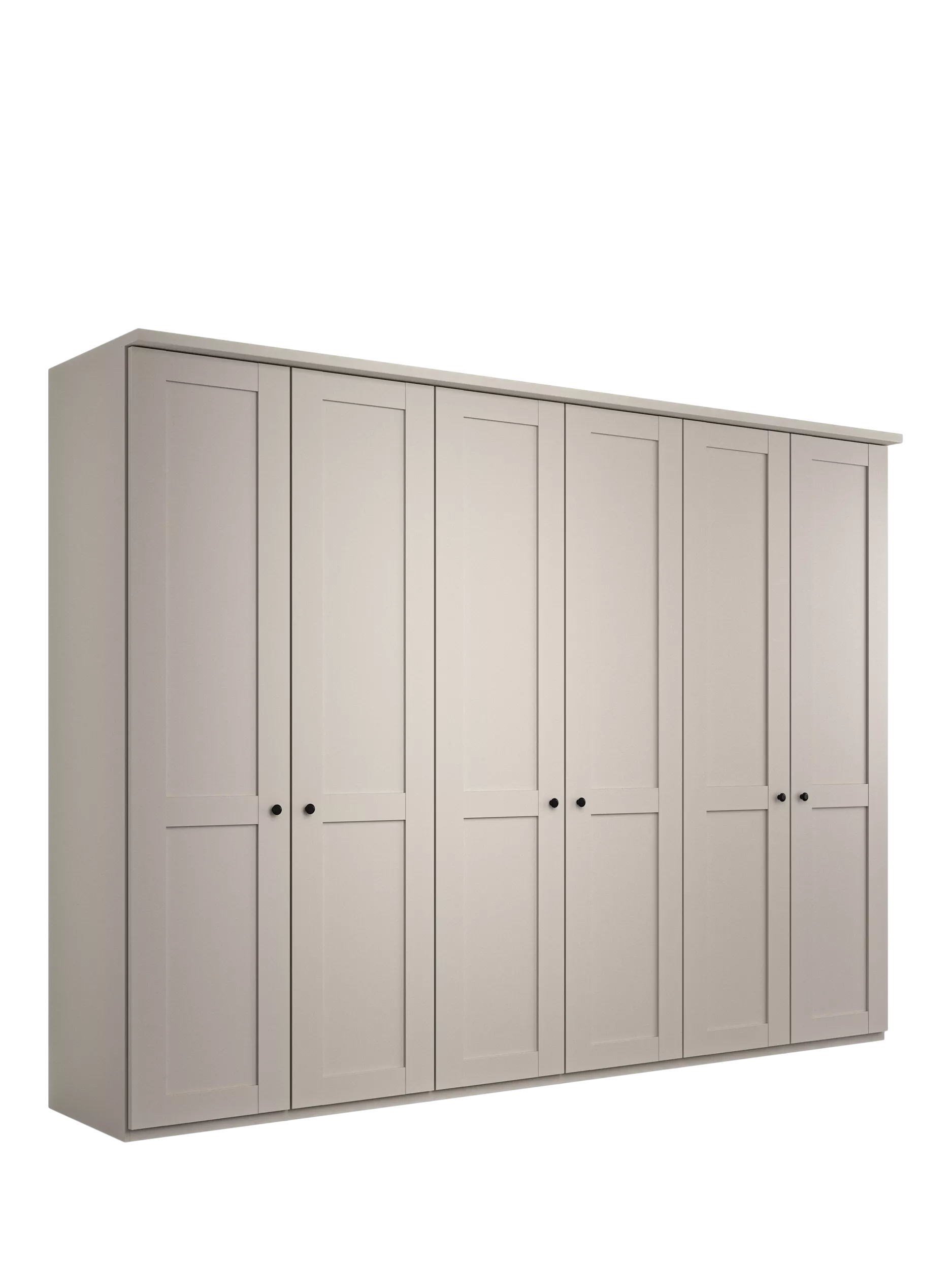 This wardrobe's interior has two double compartments with two shelves and a hanging rail in each, all of which are fully adjustable to suit your requirements. This product is delivered and assembled by the supplier for your convenience.