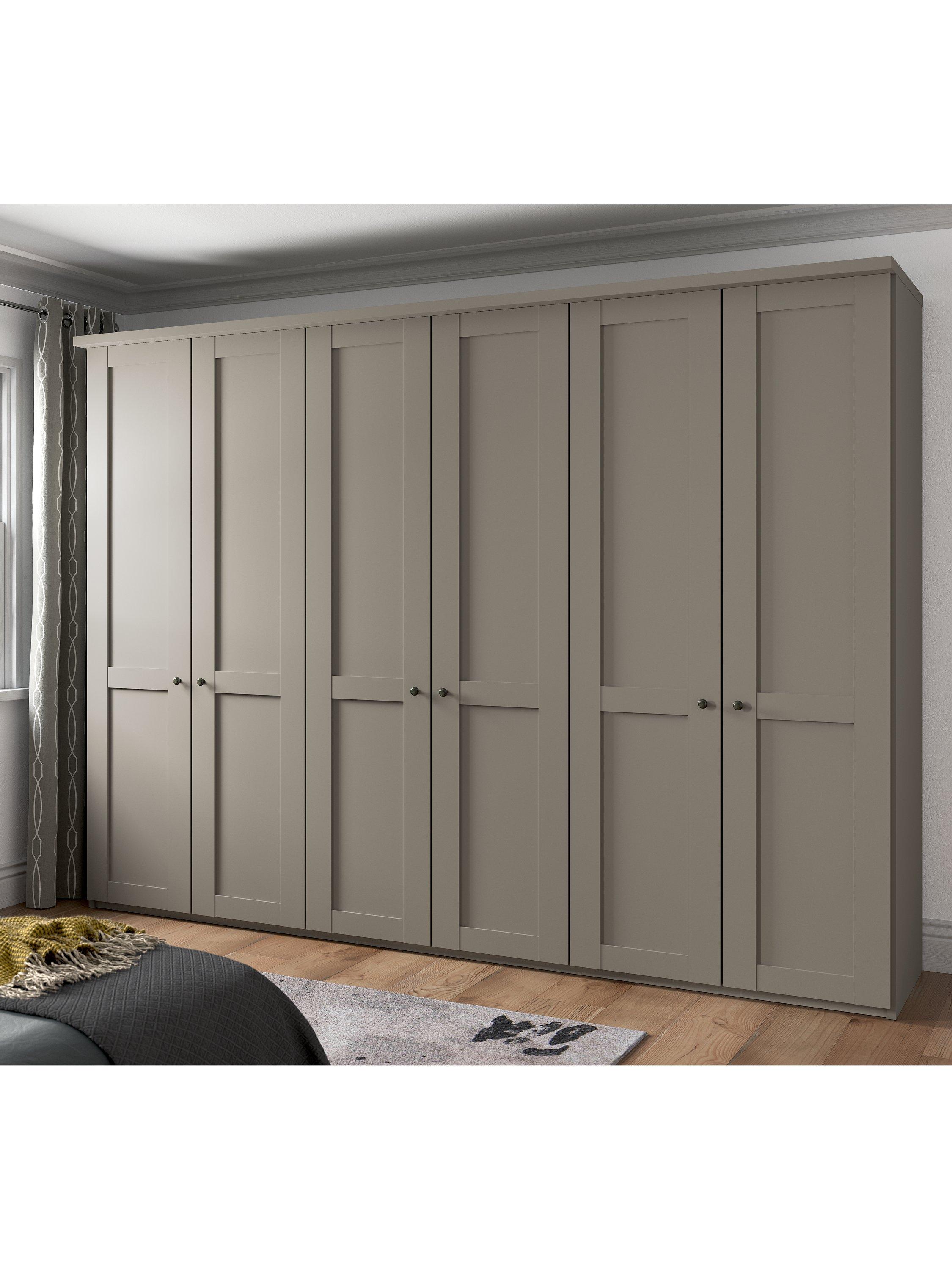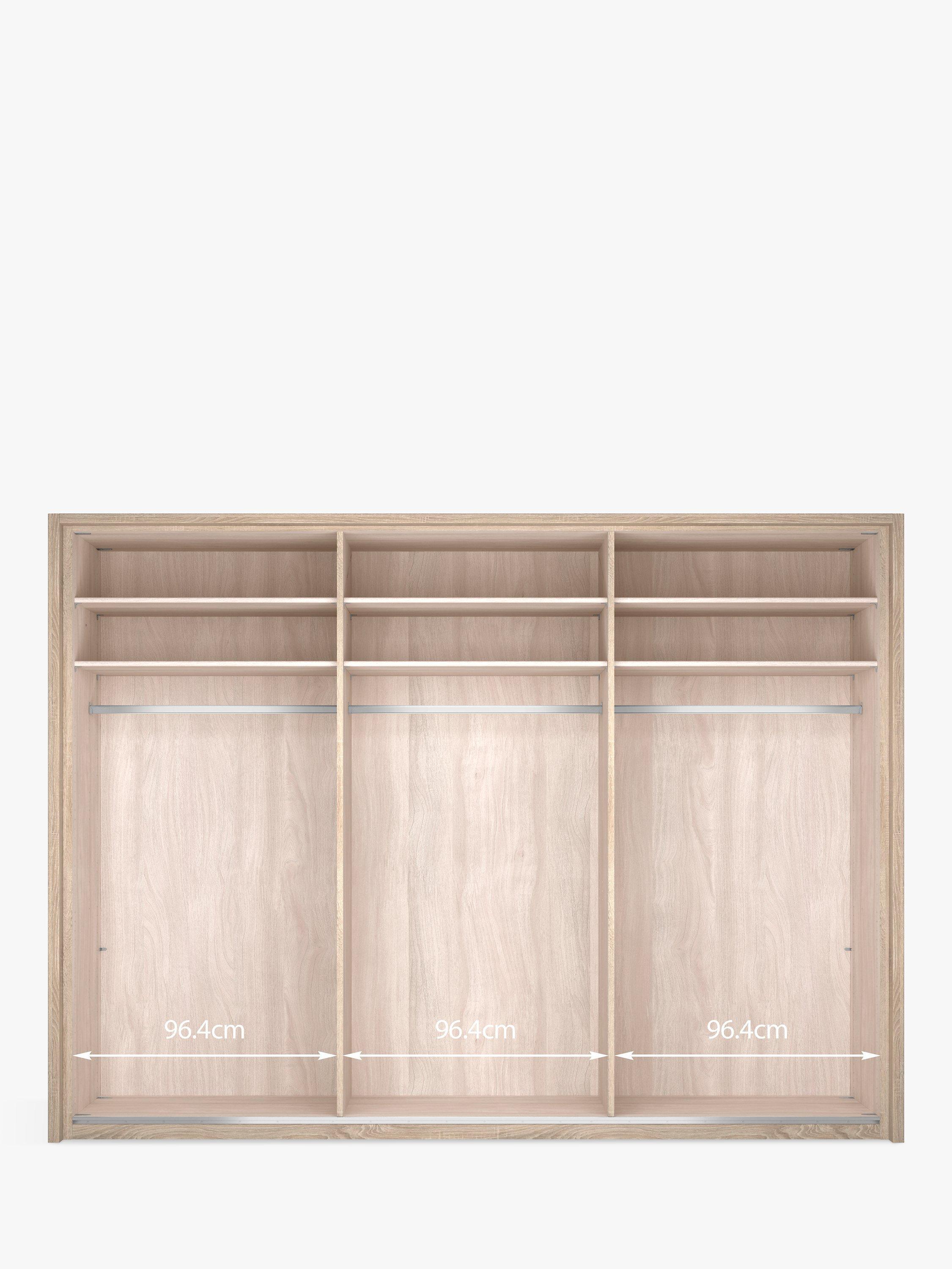 This wardrobe's interior has three double compartments with two shelves and a hanging rail in each, all of which are fully adjustable to suit your requirements. This product is delivered and assembled by the supplier for your convenience.