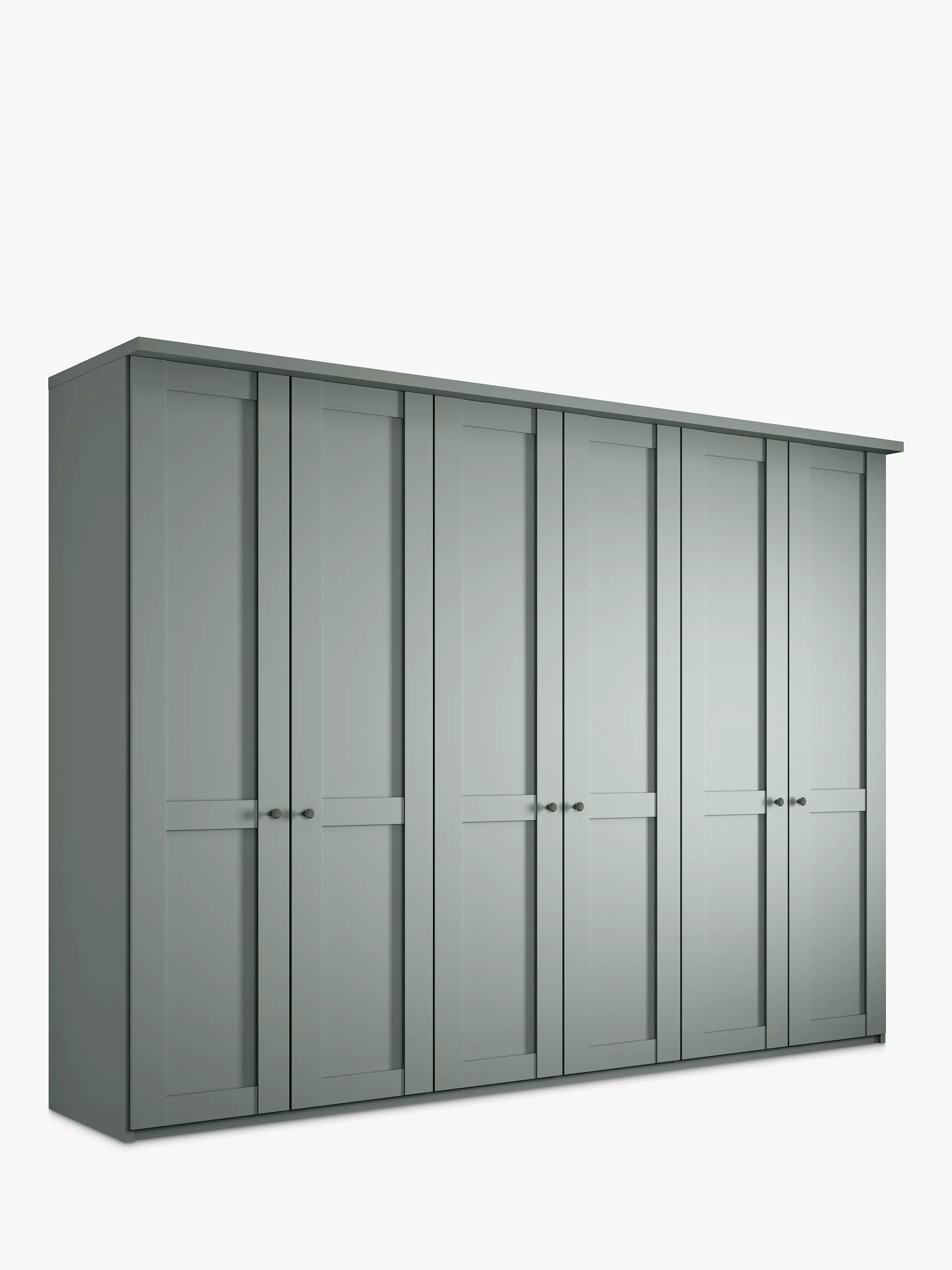 This wardrobe's interior has three double compartments with two shelves and a hanging rail in each, all of which are fully adjustable to suit your requirements. This product is delivered and assembled by the supplier for your convenience.