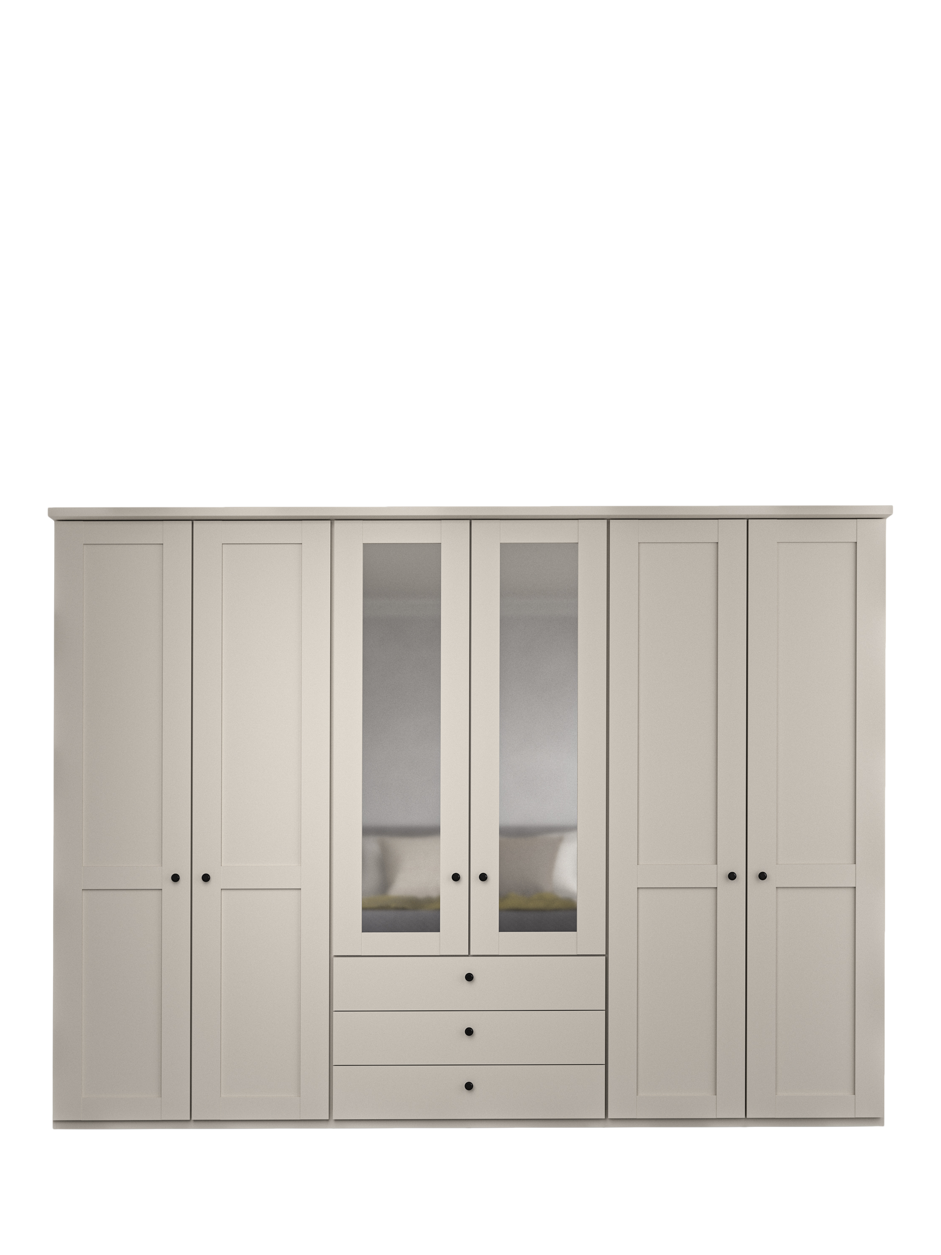 The elegant and classic look of our Marlow range suits most decor. Versatile and practical as a bedroom storage solution, the range is available either with or without mirrors. The exterior is complemented with an attractive cornice detail at the top and hinged doors with handles in a vintage pewter finish.