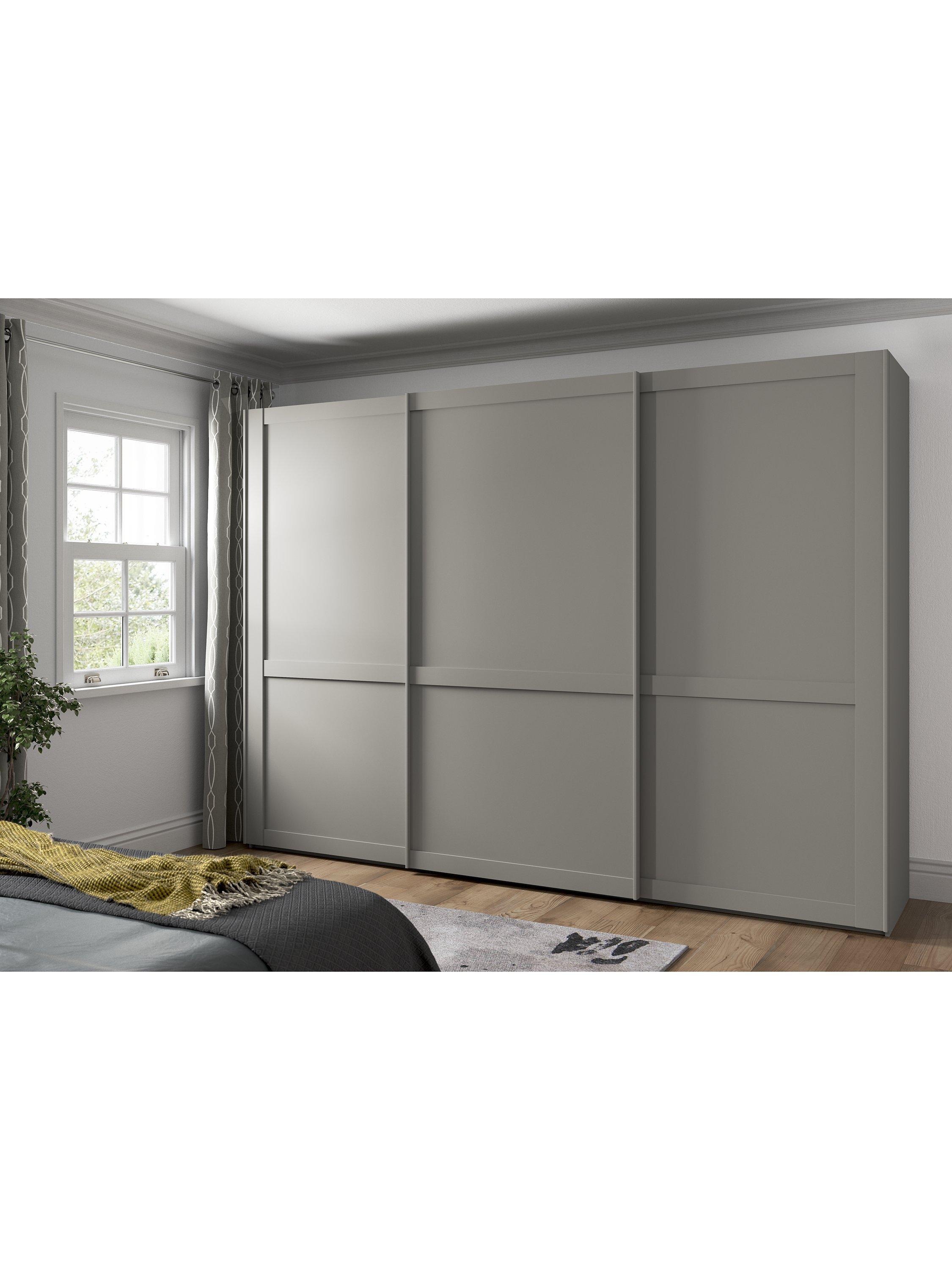This wardrobe's interior has two doubles and a single compartment with two shelves and a hanging rail in each, all of which are fully adjustable to suit your requirements. This product is delivered and assembled by the supplier for your convenience.