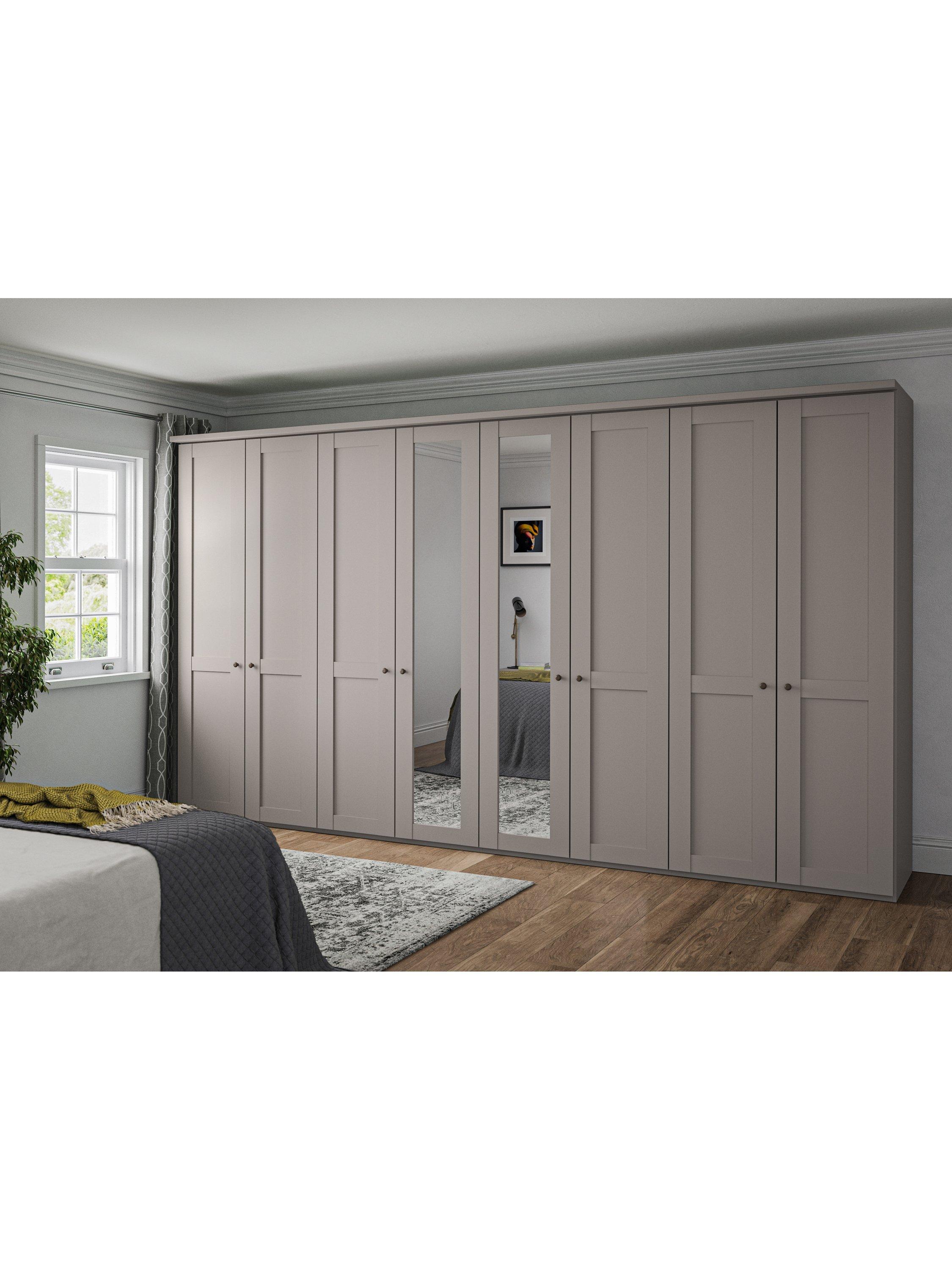 John LewisMarlow 400cm Mirrored Hinged Wardrobe, Pebble Grey