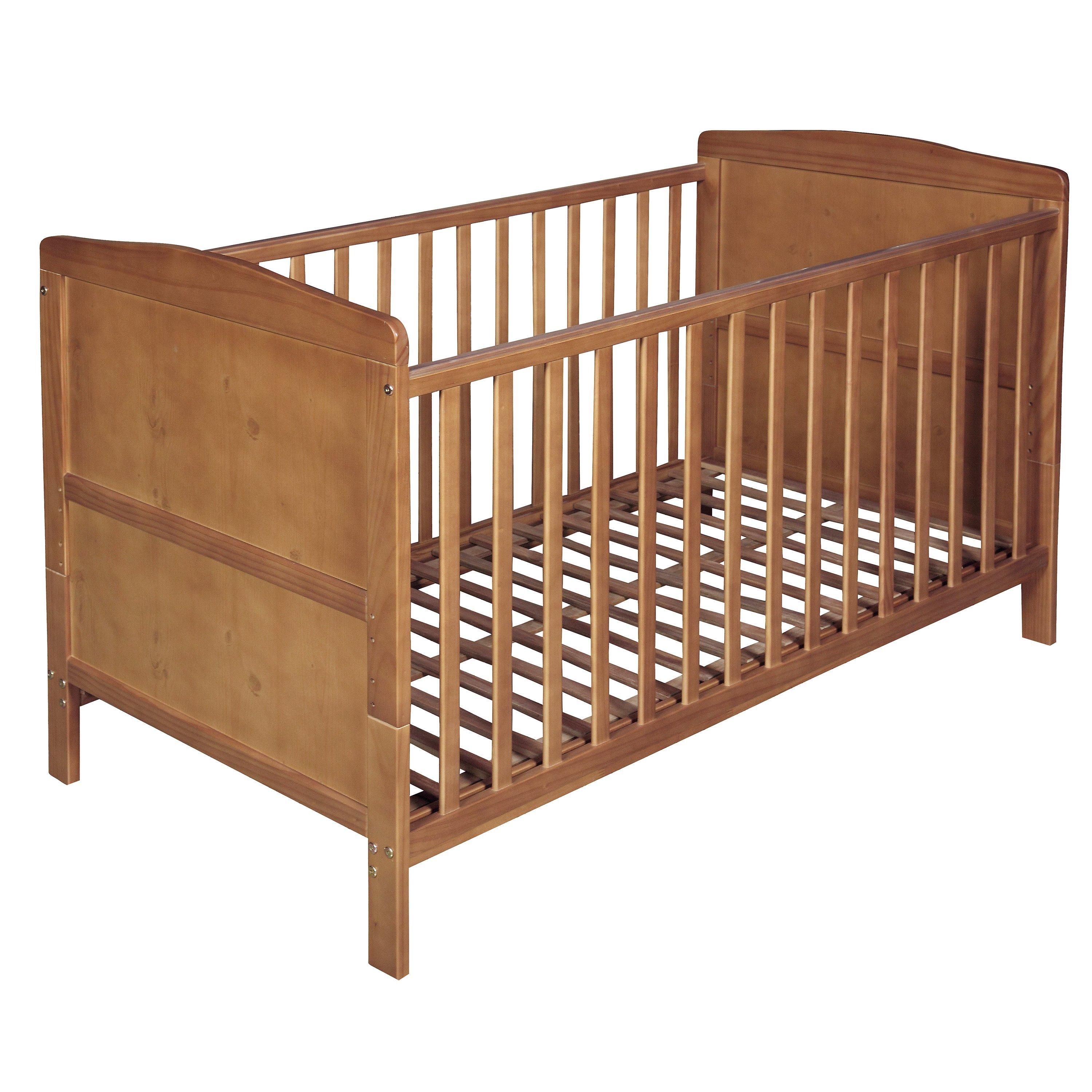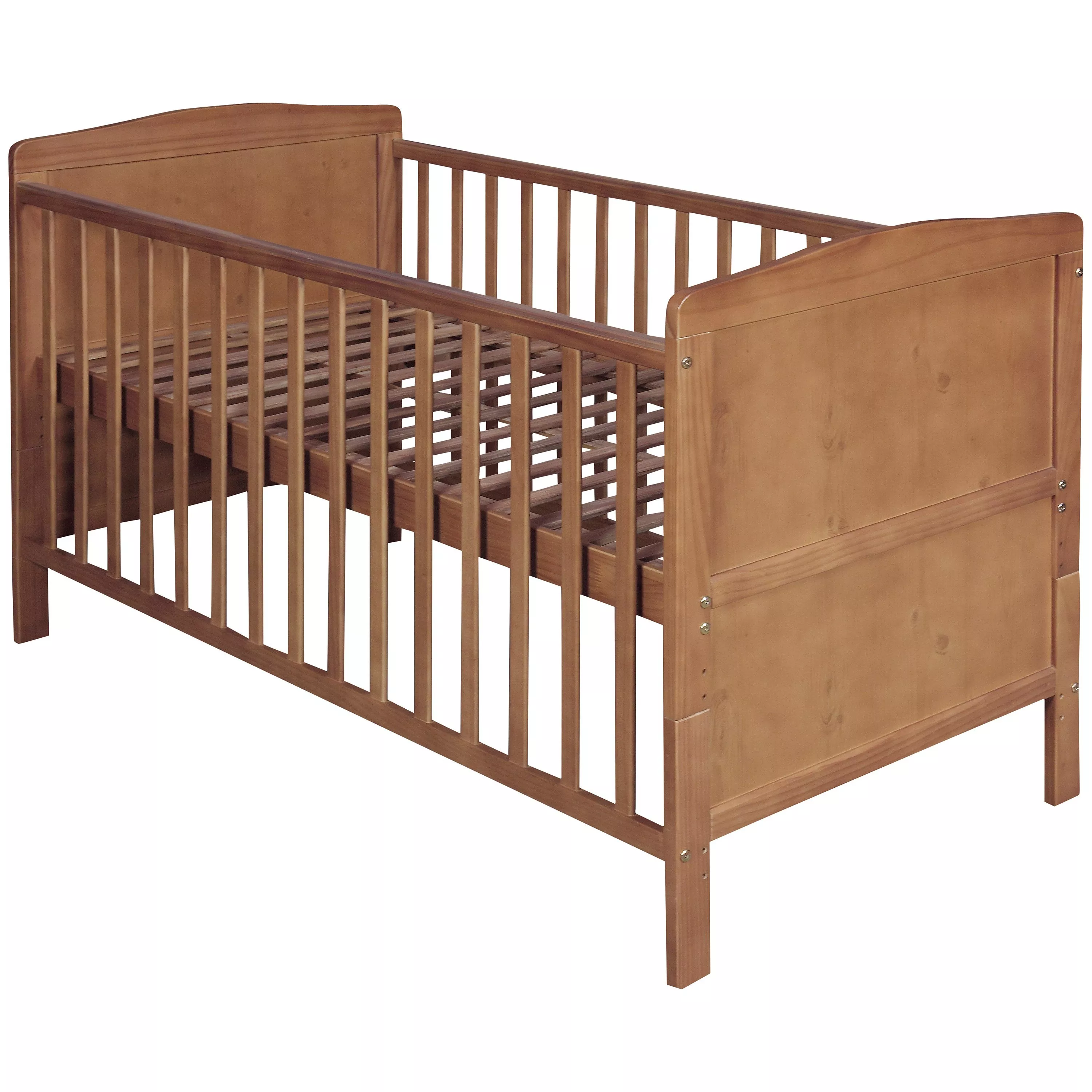 An elegant cotbed with a dark wood finish, ideal for modern or classic rooms. Suitable from birth, it has three base positions, includes teething rails and can be converted to a junior bed.