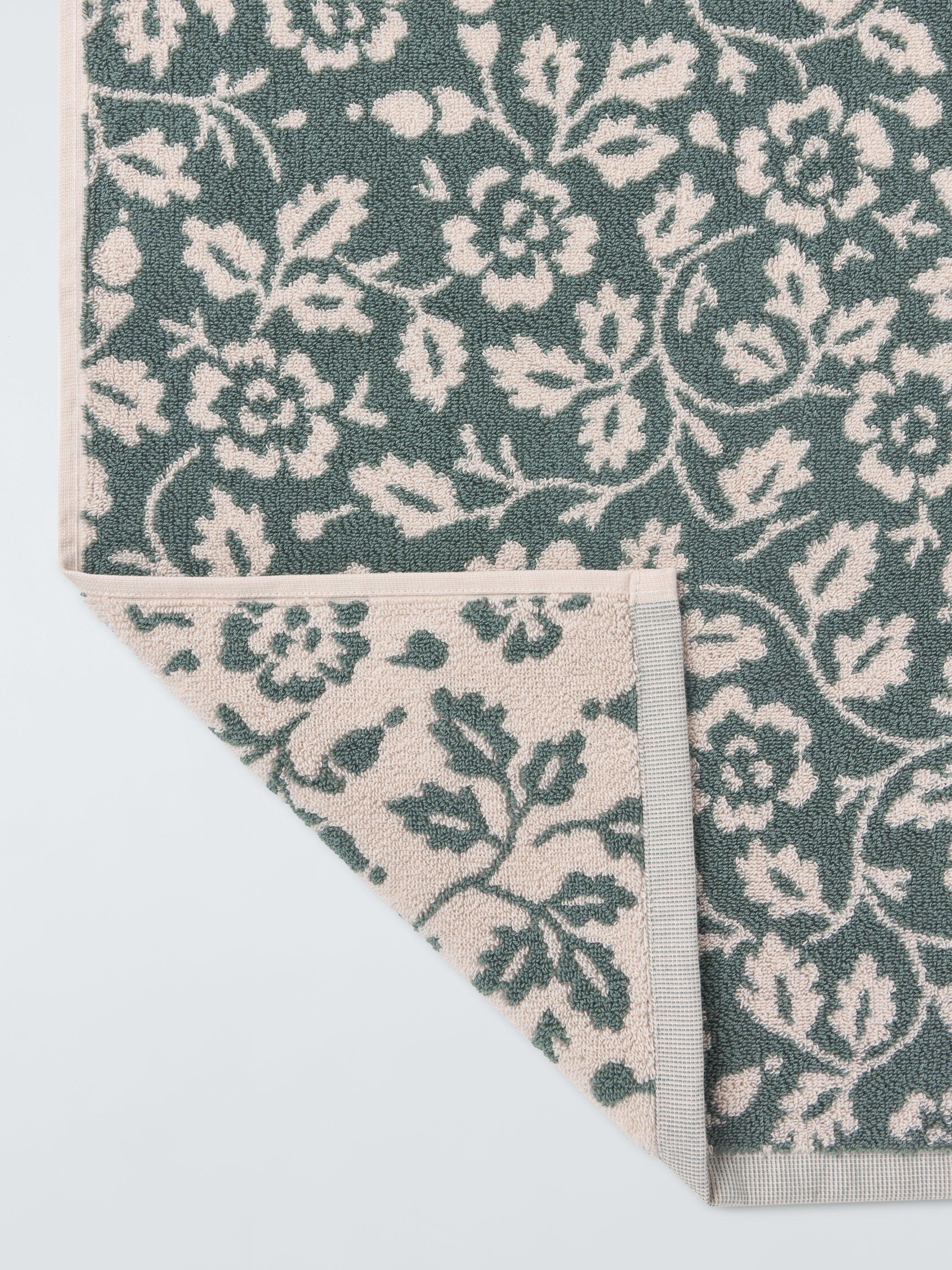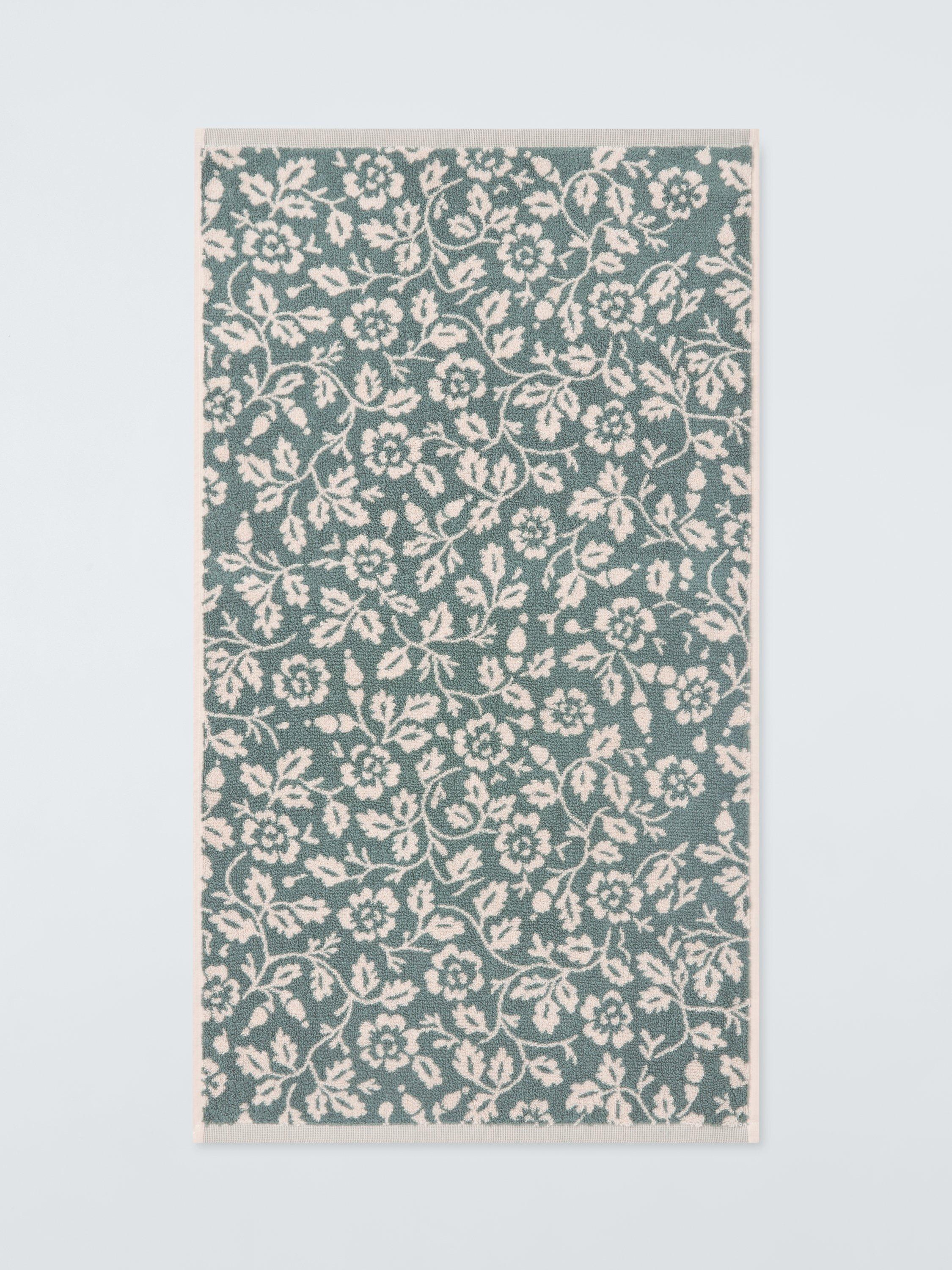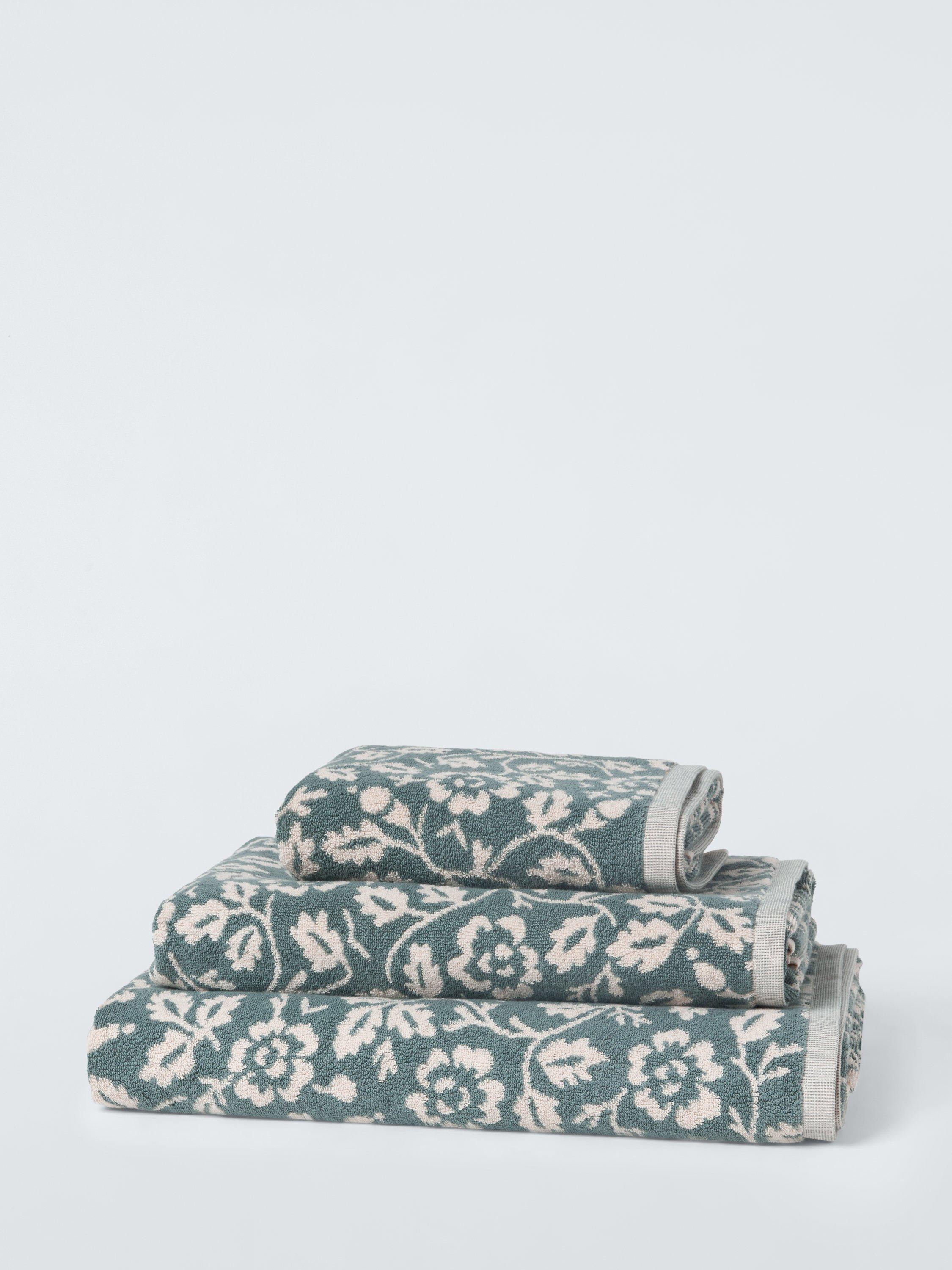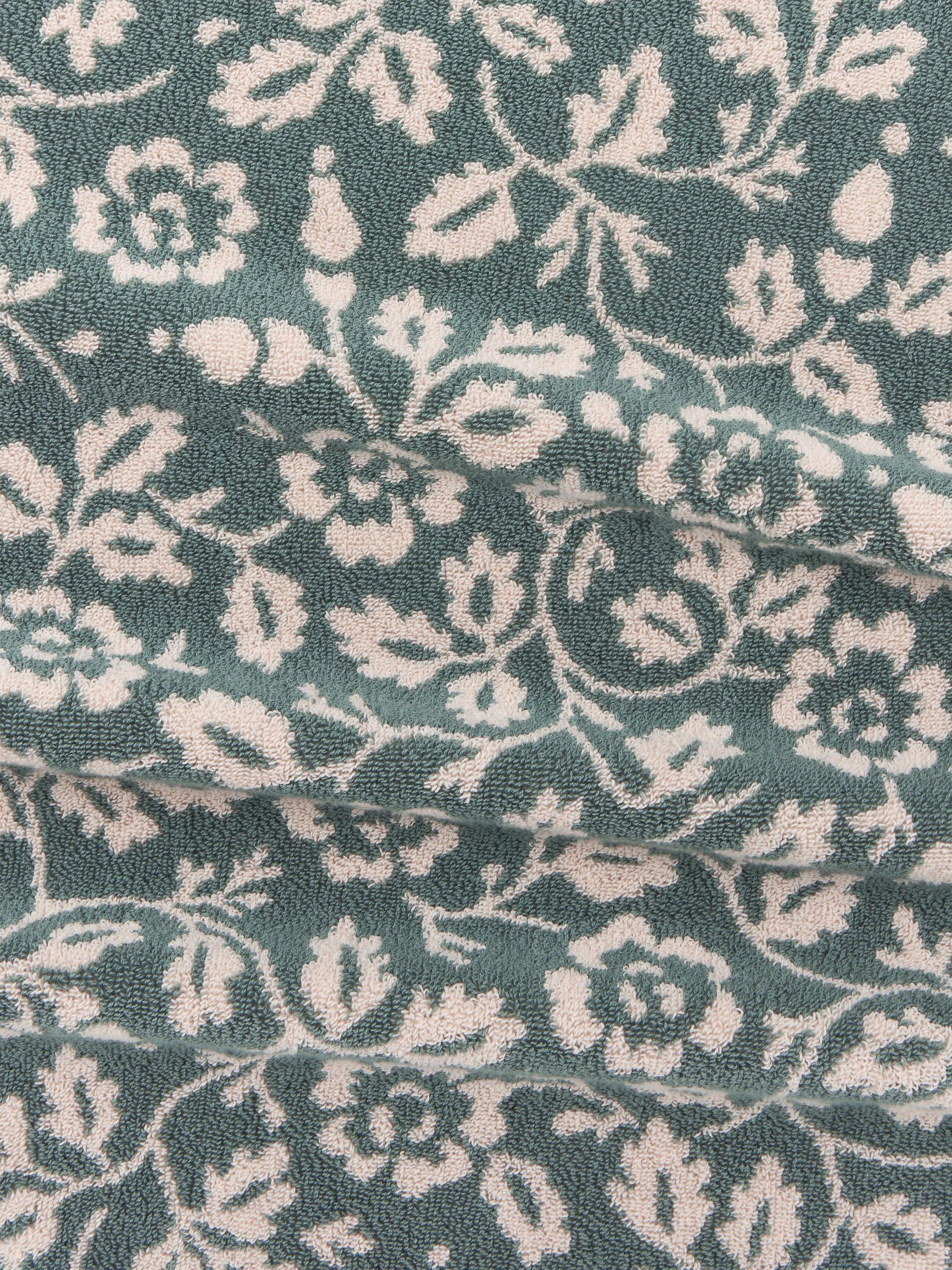 Soft, looped pile towels in a classic floral that echoes the textiles designs of William Morris.