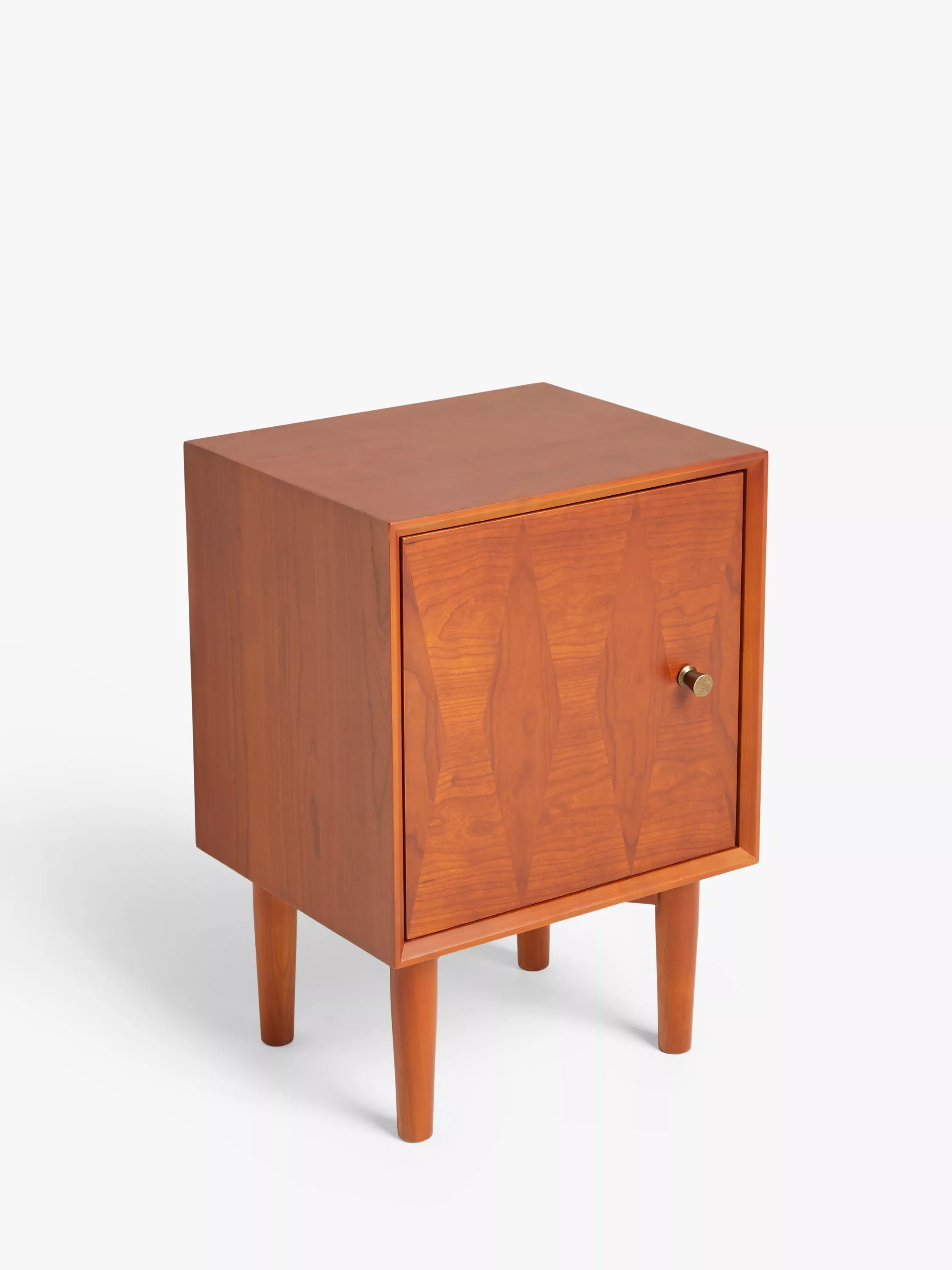 Our Marquetry range of bedroom furniture celebrates marquetry techniques, with contrasting panels making the most of natural woodgrain patterns. Built from solid wood and veneers, this bedside table features clean lines, a bevelled front and tapered legs. We've kept the finish natural to create a calming environment in your bedroom.