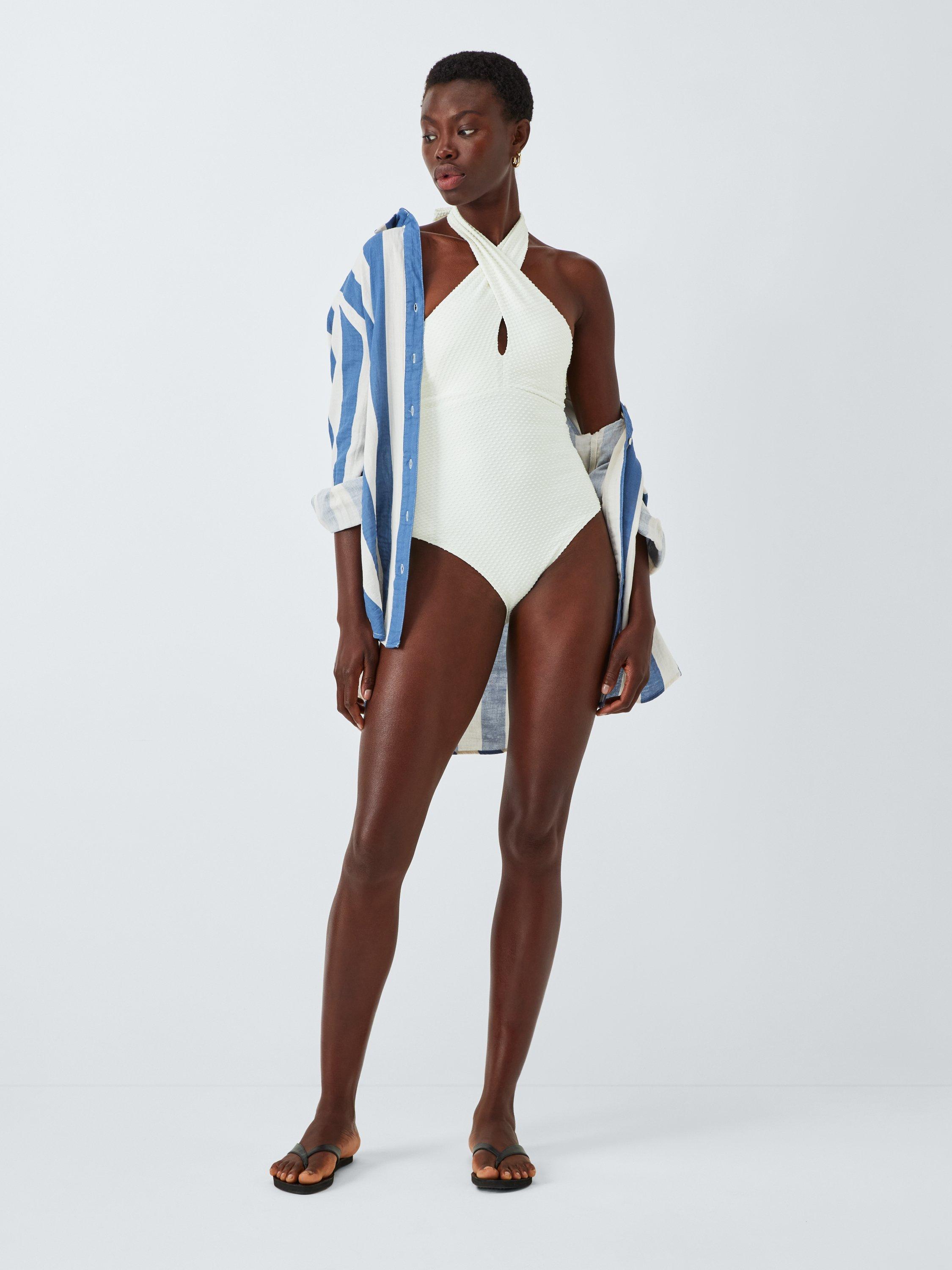 With a sophisticated cross neck and cut out keyhole detailing, this swimsuit hits all the style notes this summer.