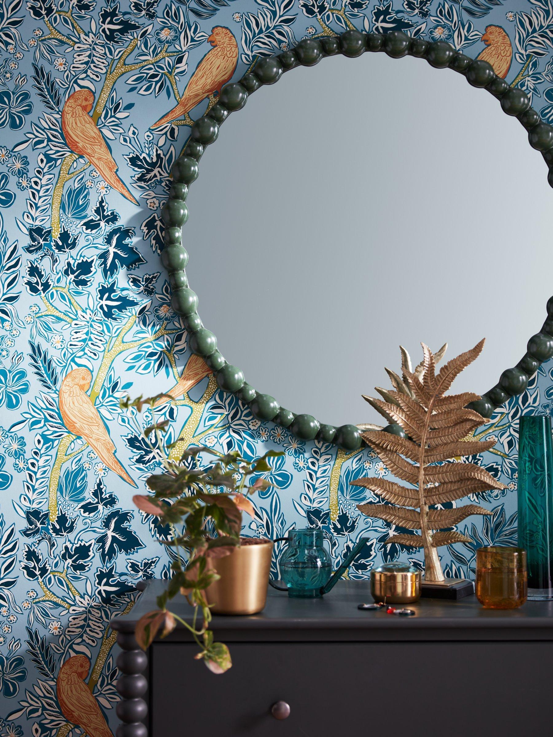 Bobbin is back, taking shape on a round mirror frame, creating an updated statement piece for your wall in true Matthew Williamson style. Great for a living room, hallway or bedroom. We've added fittings on the back for easy and secure wall-mounting.