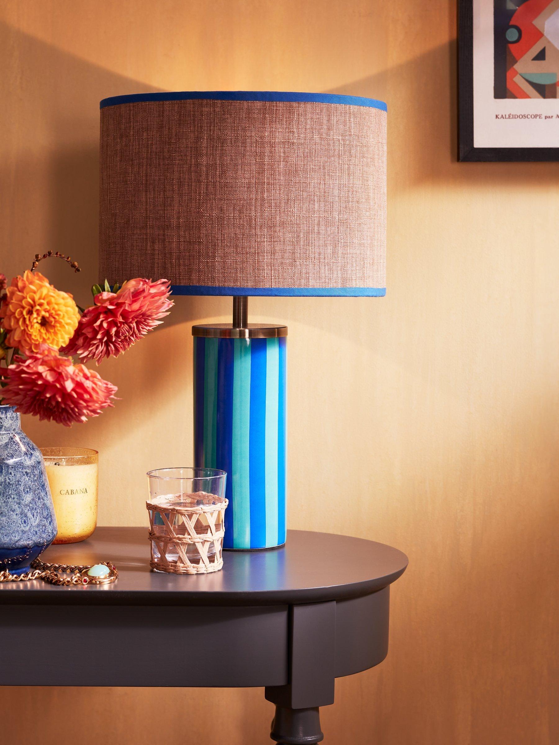 Add some vibrant colour to your home with this table lamp from Matthew Williamson. The contrasting tones create a wonderful stripe pattern around the ceramic base. Finished in matte antique brass metalwork with a twisted fabric flex for a touch of luxury.