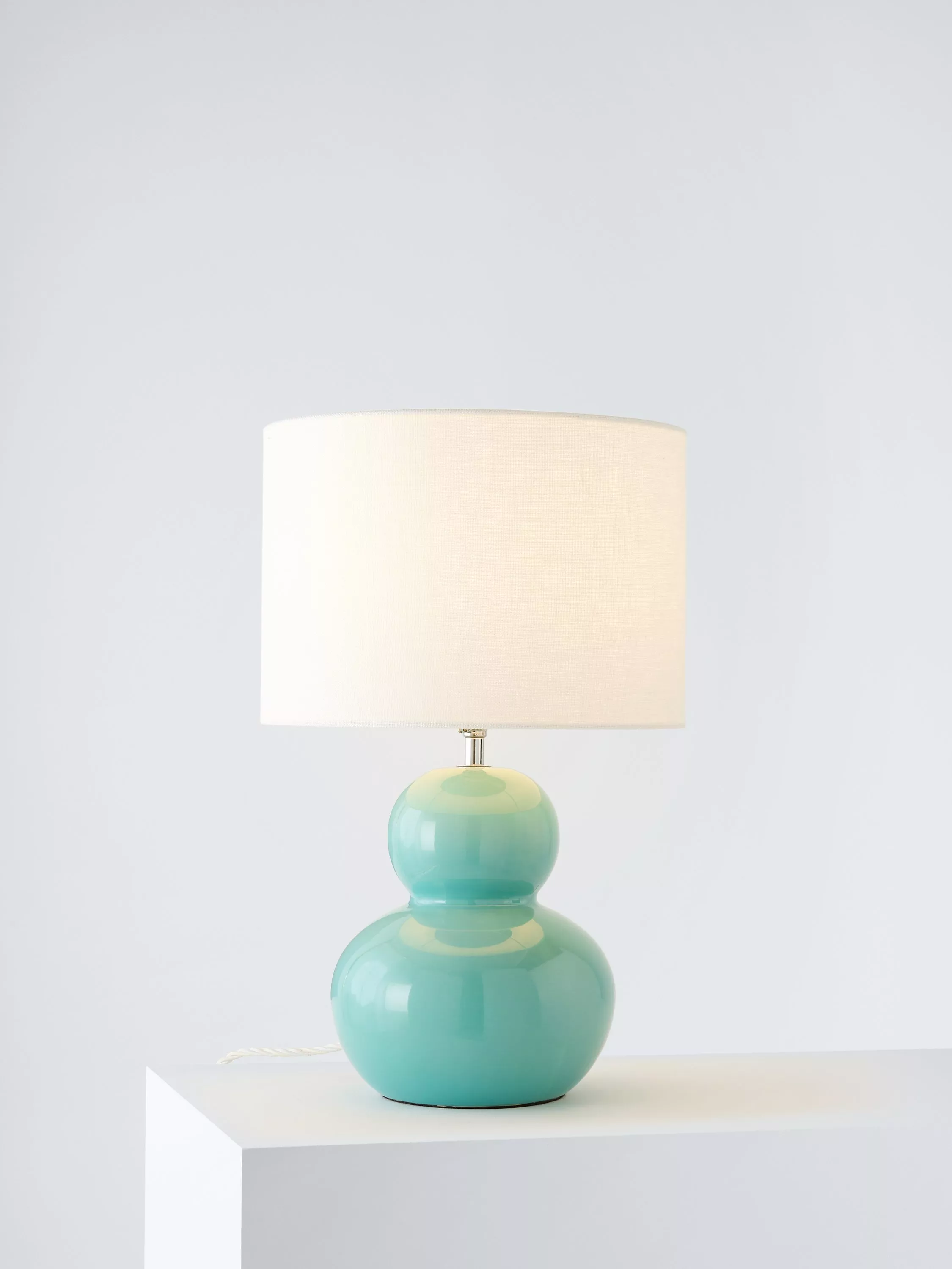 This curvy, colour-block lamp base will add character to your room. It's made from ceramic in a gloss glaze and it has a handy integrated push switch. Pick your own lampshade to complete the look. Be bold and style it with a patterned lampshade so it really stands out.