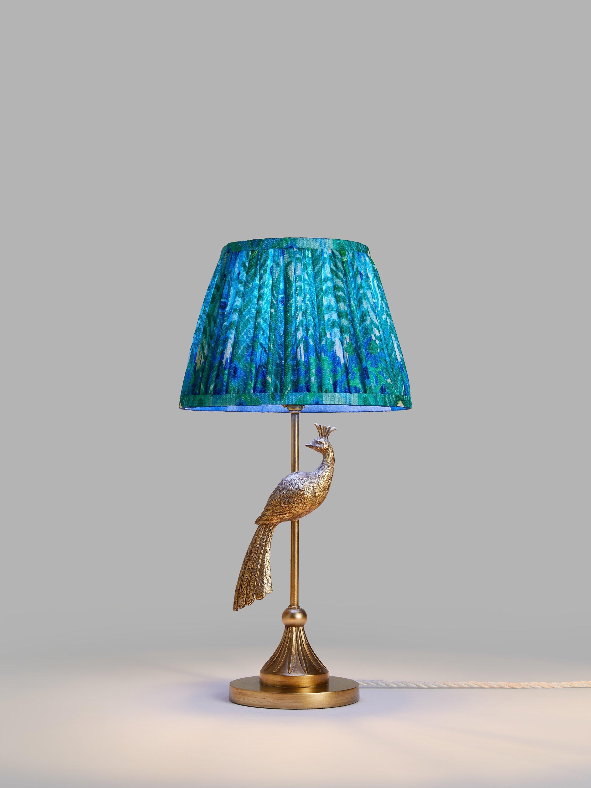 We've put together Matthew Williamson's distinctive peacock lamp base, which of course works best with the Peacock tapered lampshade, diameter 25.5cm. Offering a fun way to dress up your space with character and colour, the base is made from polyresin and metal in an aged gold finish and the faux linen lampshade is gathered and pleated by hand. Together, this creates a bold accessory for your home, ready for all your guests to comment on.