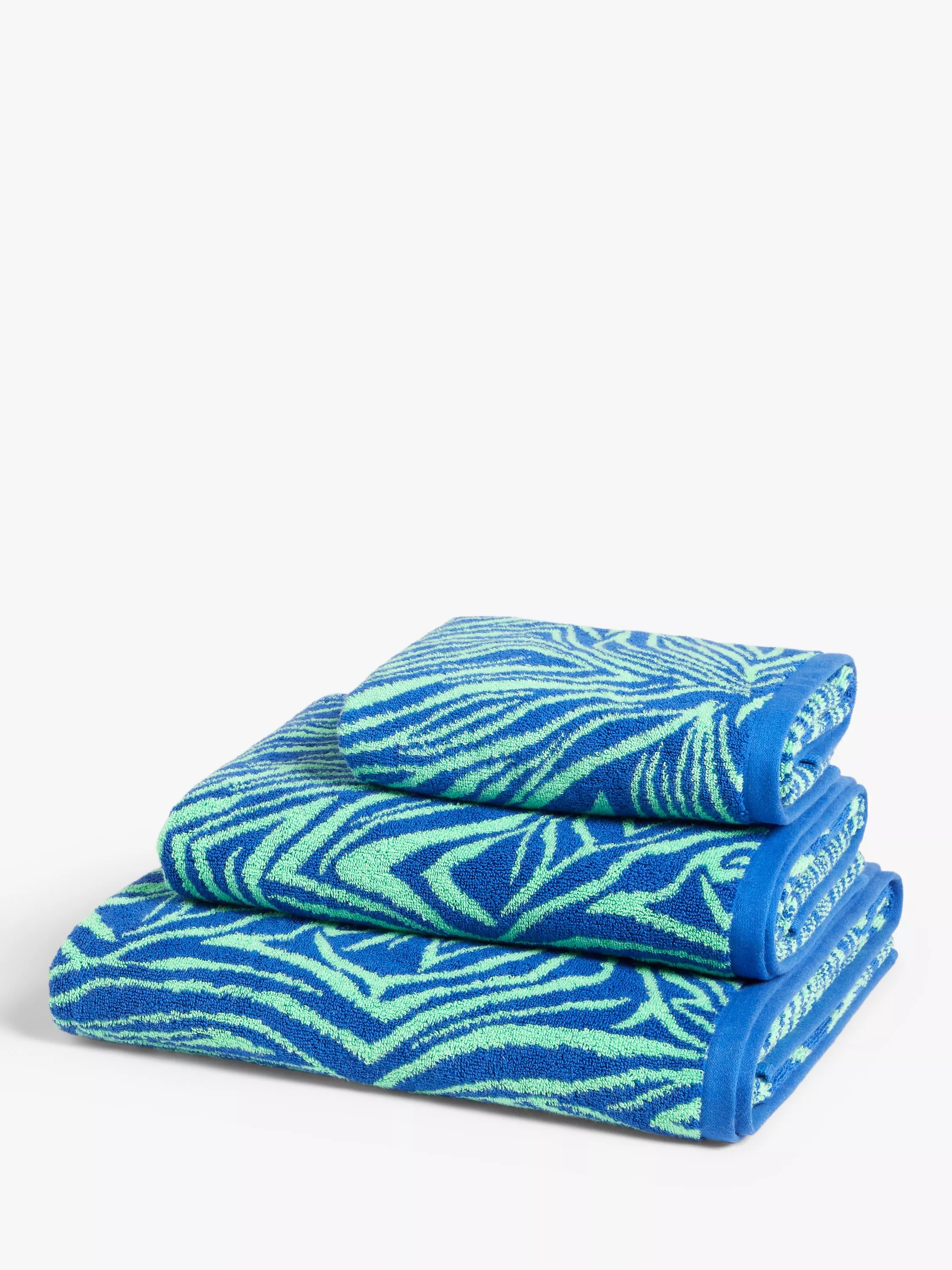 By choosing off the wall colours these zebra towels become less about the animal print and more about being offbeat, abstract pieces that bring colour to your bathroom.