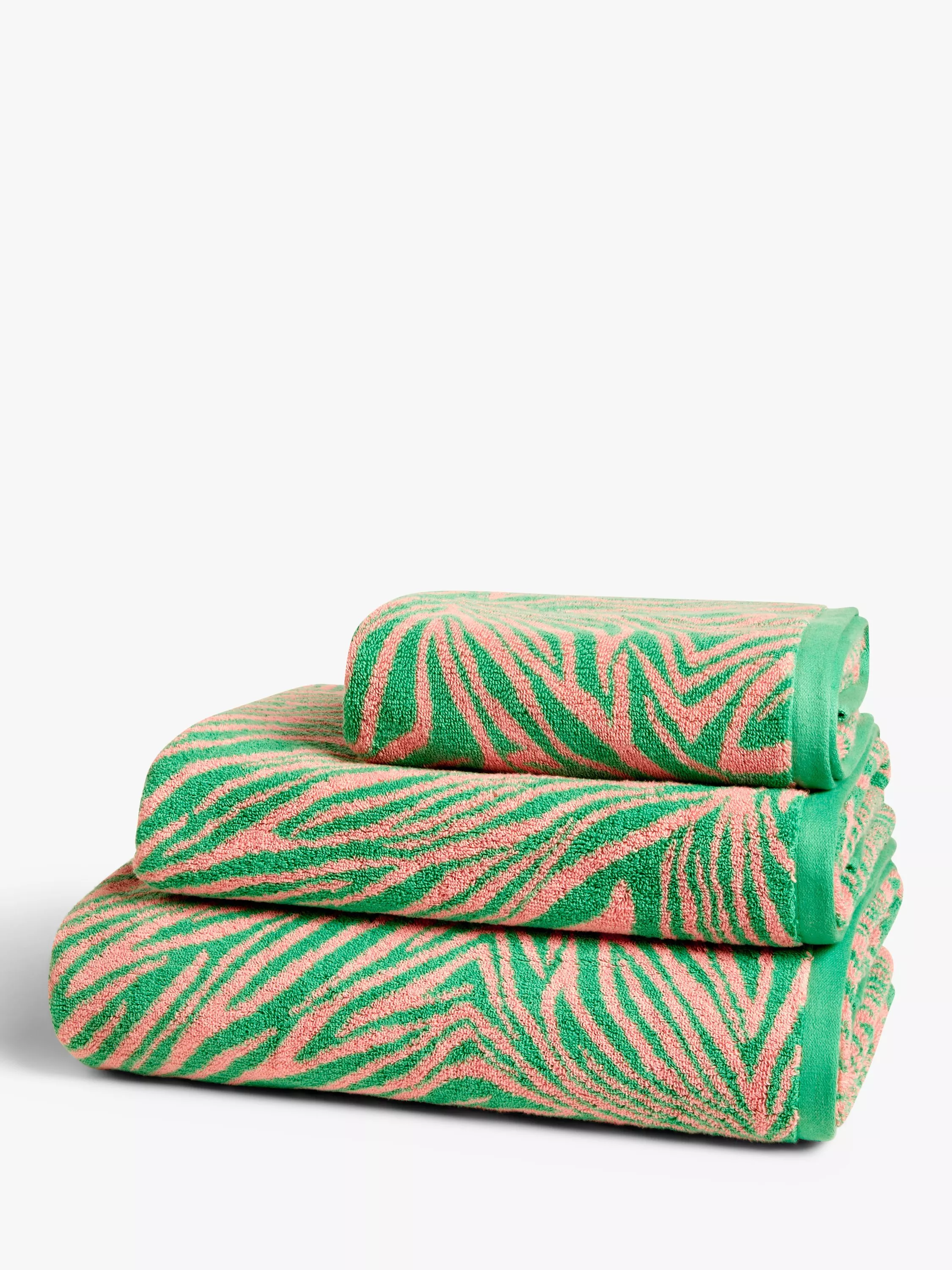 By choosing off the wall colours these zebra towels become less about the animal print and more about being offbeat, abstract pieces that bring colour to your bathroom.
