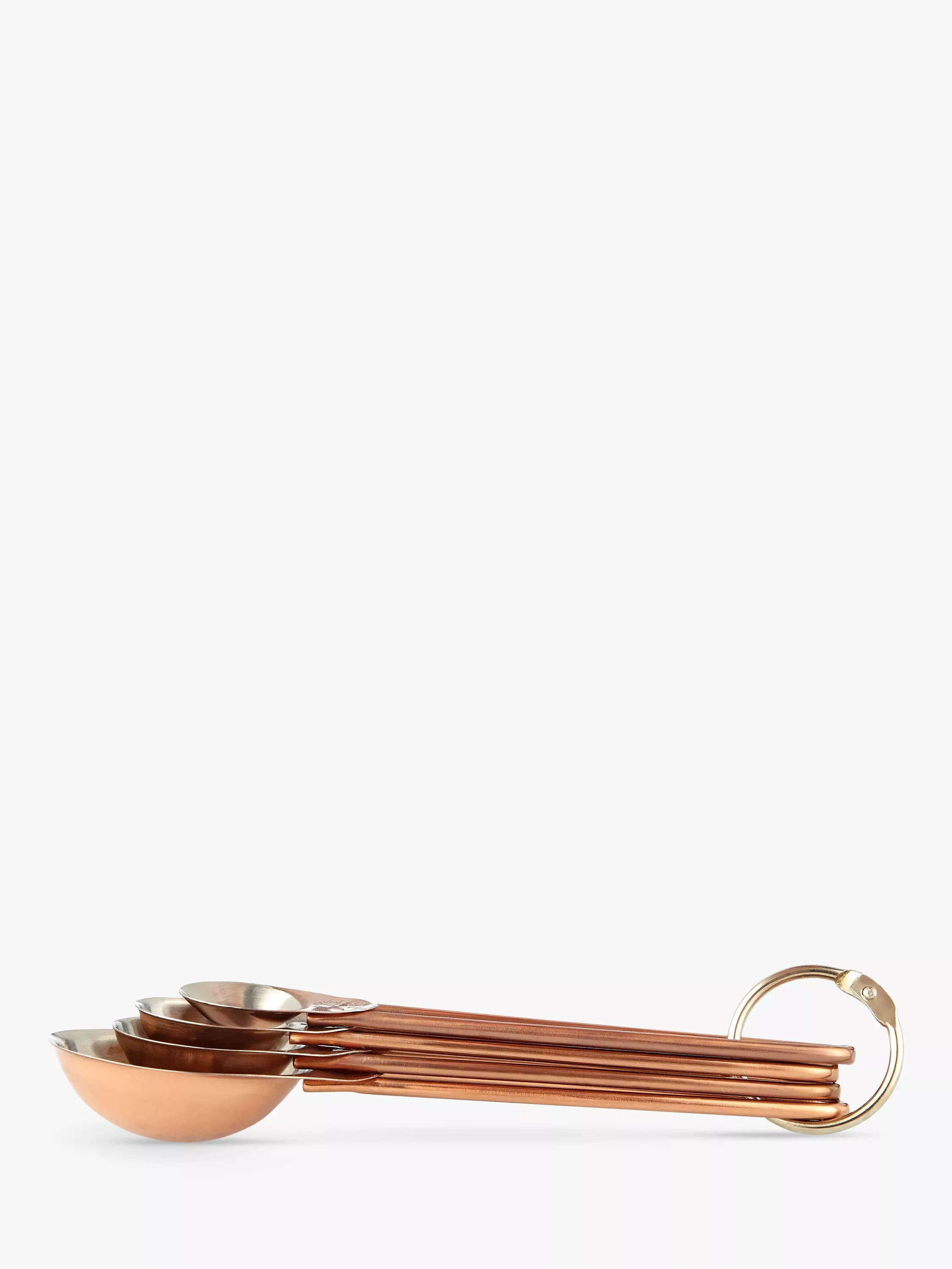 This set of four measuring spoons are designed for those smaller quantities of spices, baking powder, flavourings and condiments you need to add to your cooking. Made of copper-plated stainless steel, they nest together for easy storage.