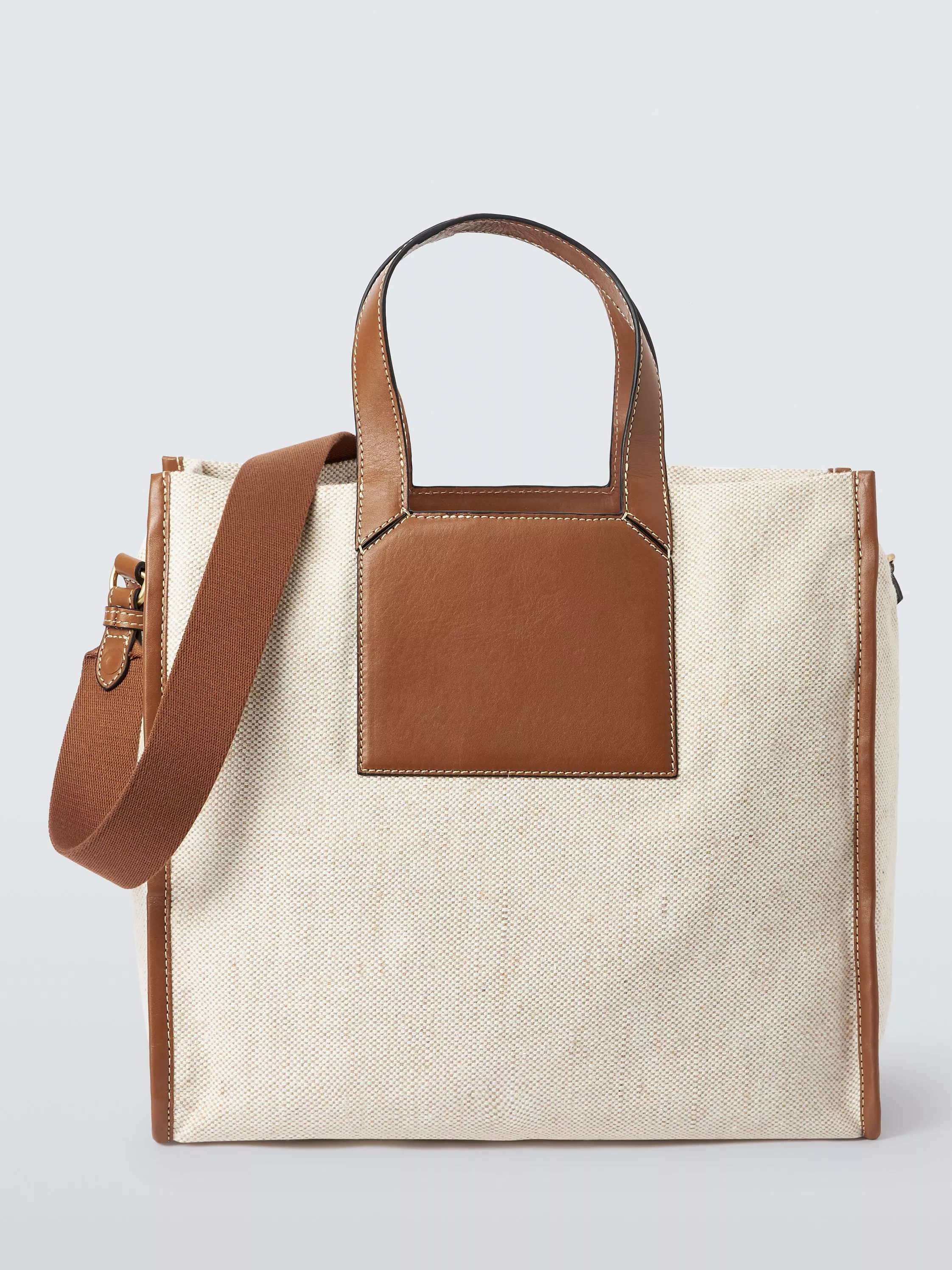 Woven from lightweight cotton and jute, it's fitted with two leather grab handles and a detachable crossbody strap, so you can wear it two ways for easy hands-free convenience. Seal your belongings neatly inside with the popper closure.