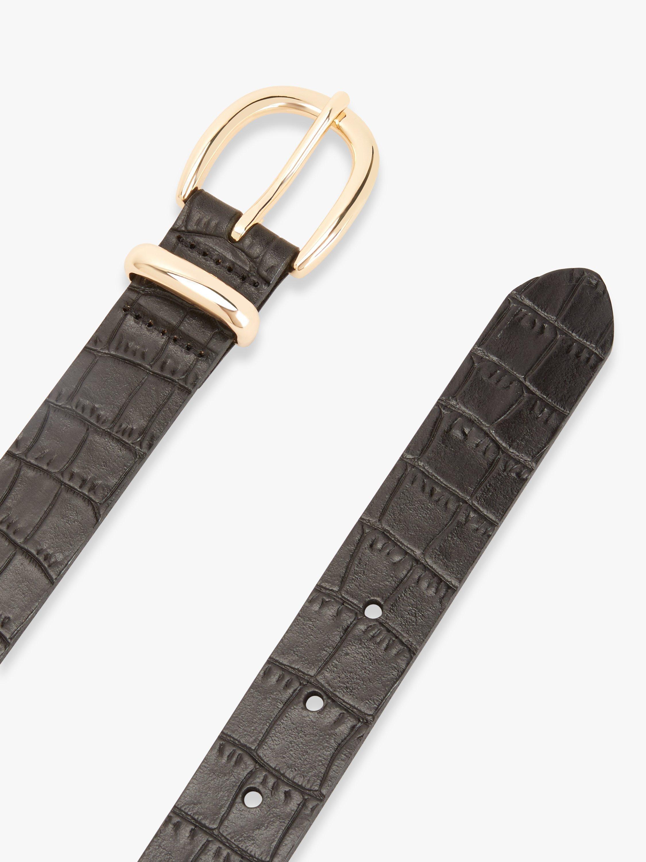 Structure a casual look with our medium-width belt. In supple leather, the design is given more character with croc-embossed detailing and a classic horseshoe buckle.