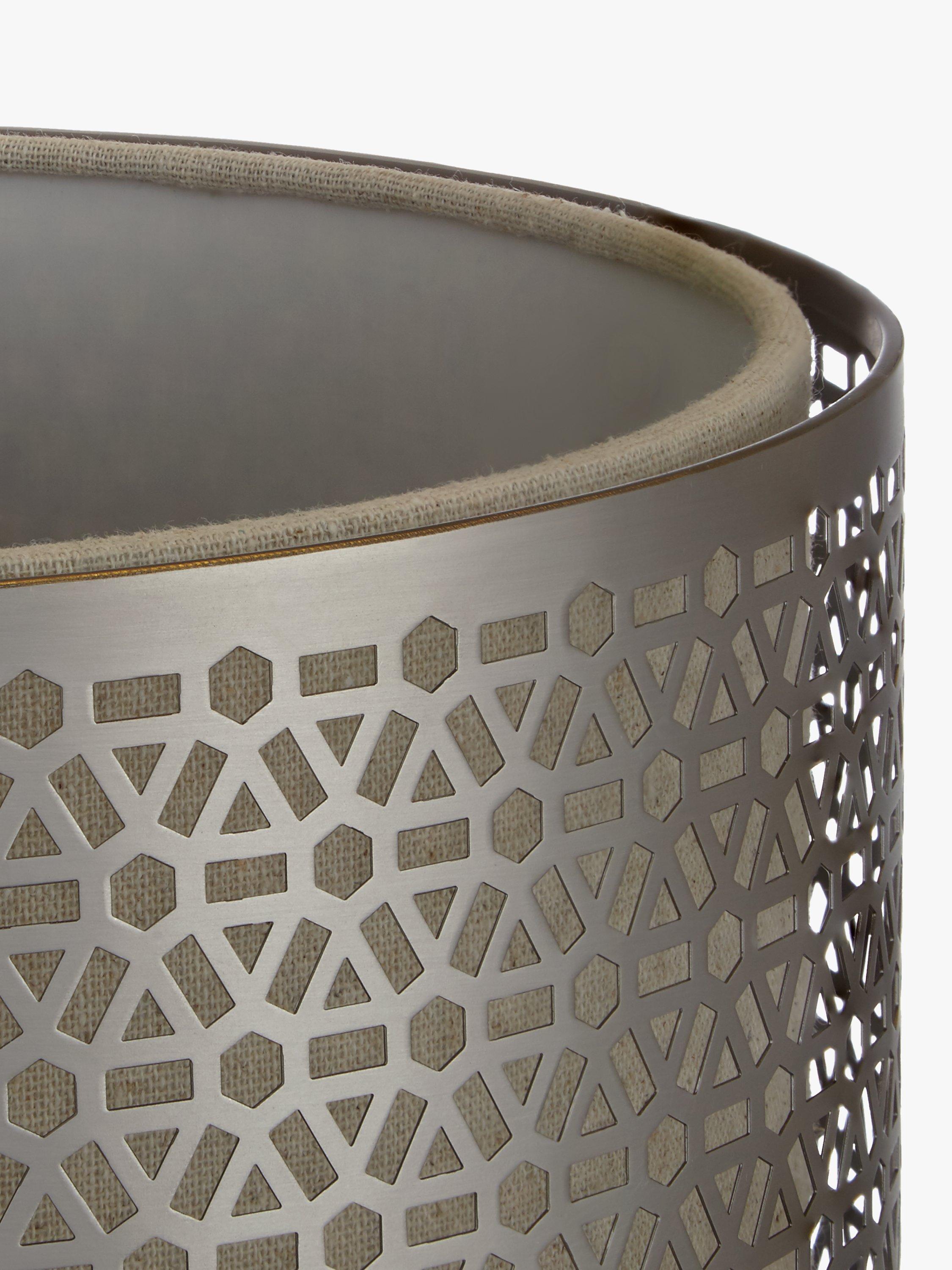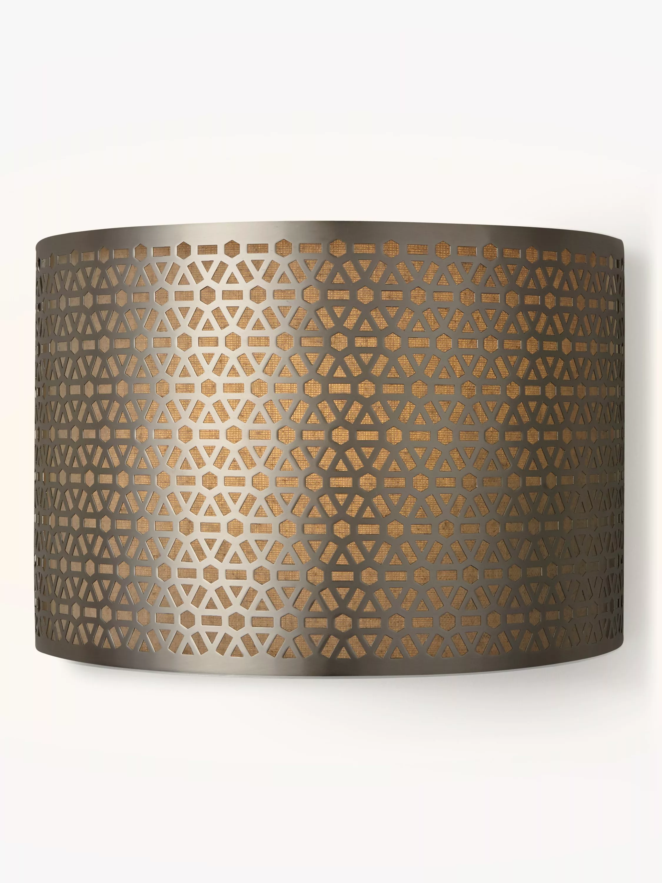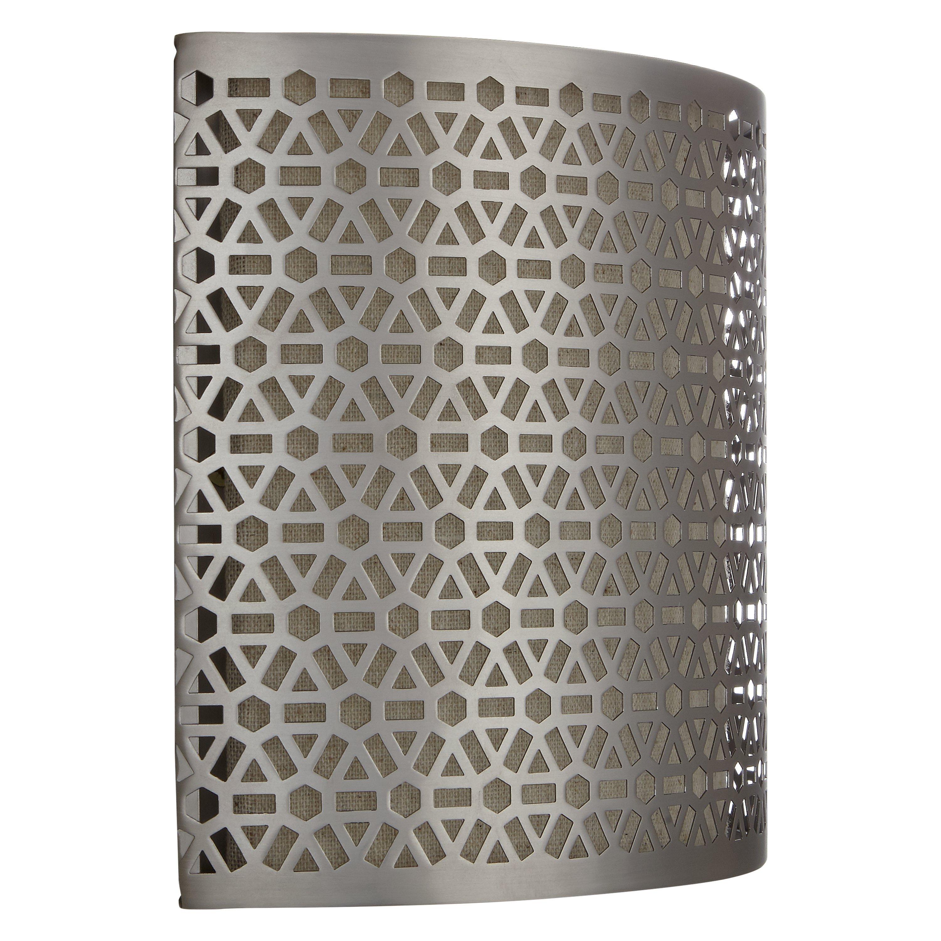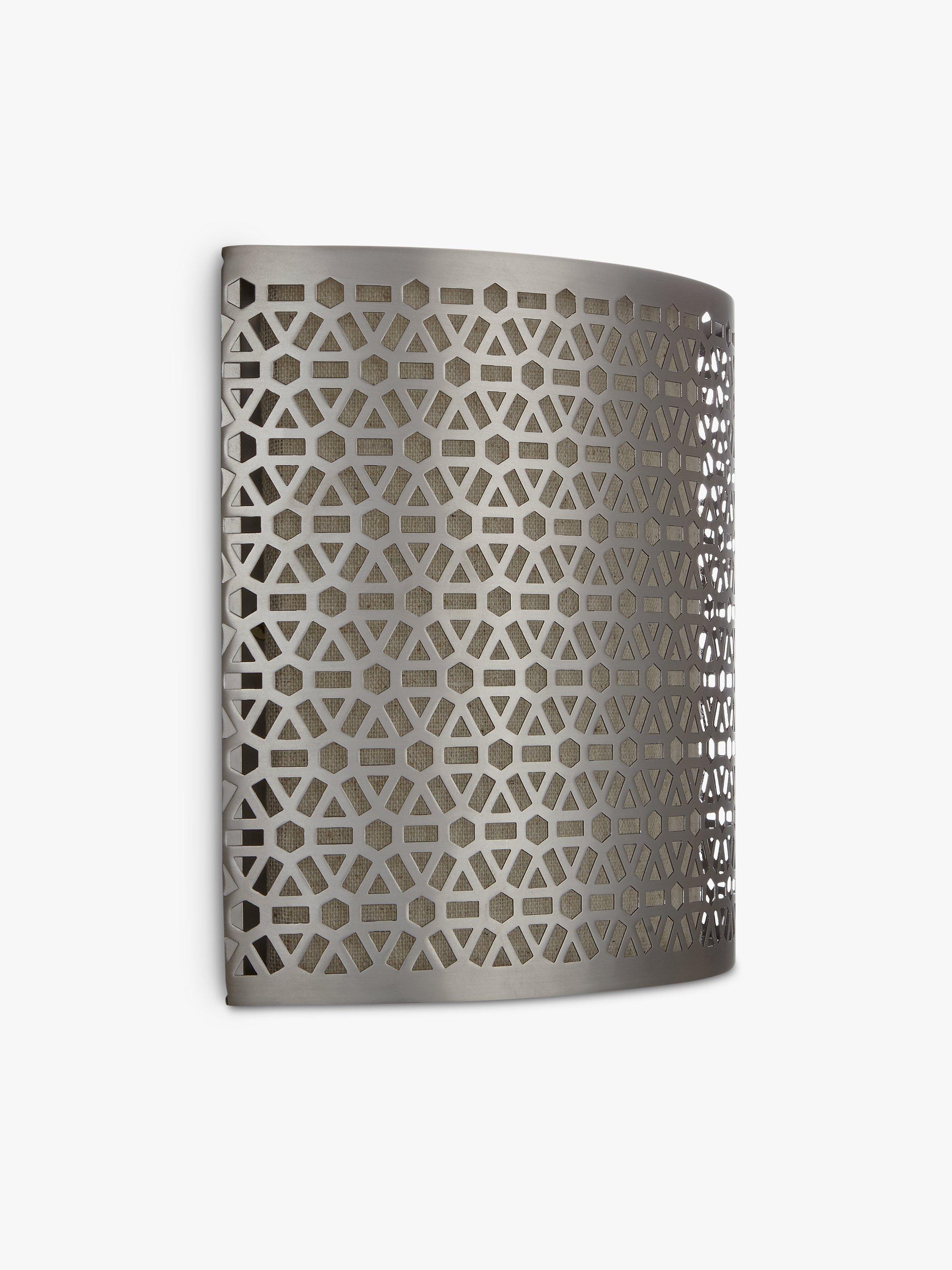 Enjoy a warm glow of light up and down your wall with this fitting, which is made with a beautiful, laser-cut metal shade. When illuminated, light spills through the mesh to create an eye-catching, yet ambient effect. There's also an internal fabric shade that enhances its natural glow. Available in a choice of metal finishes and ideal for smaller spaces as it sits semi-flush to the wall.