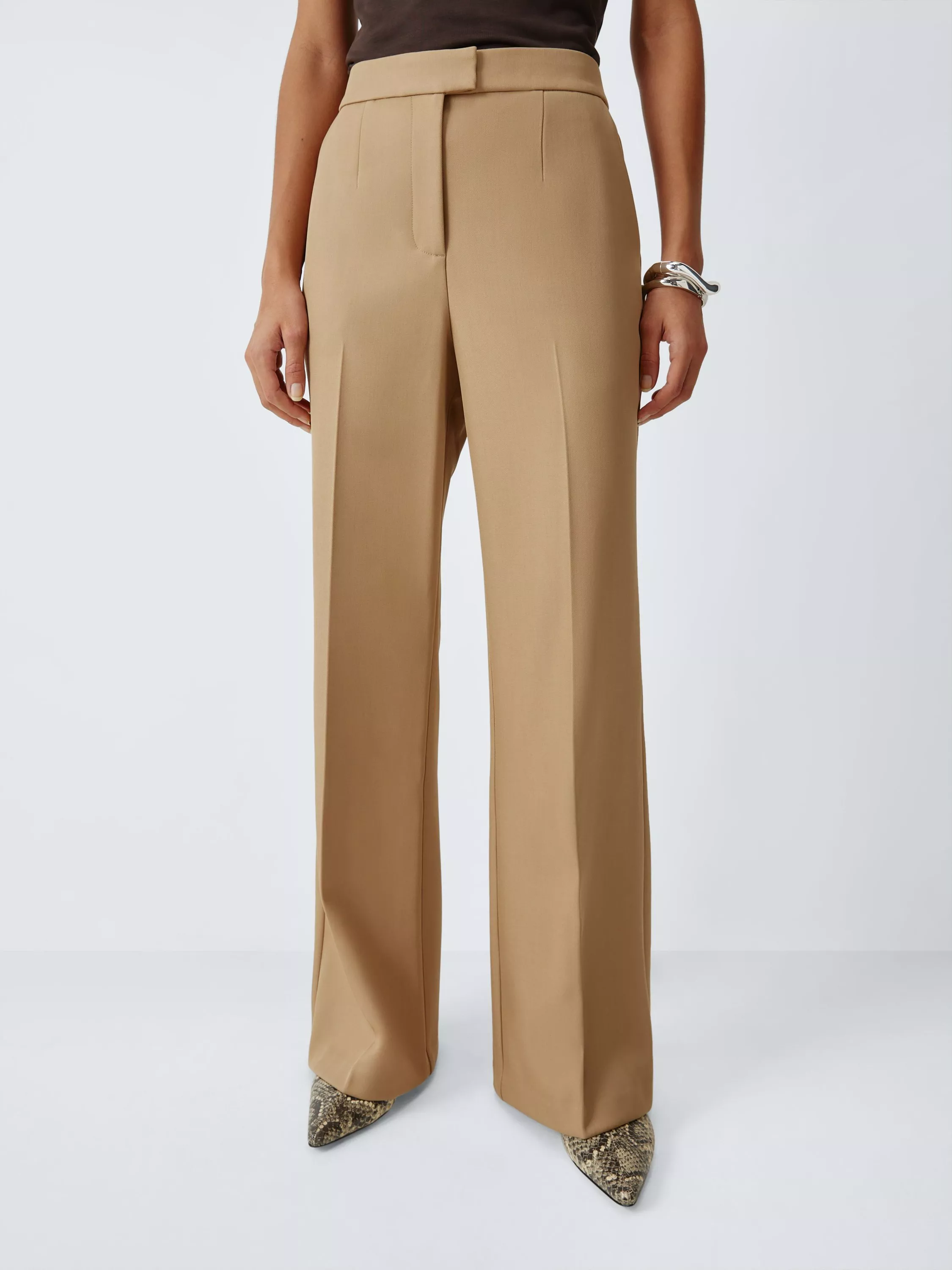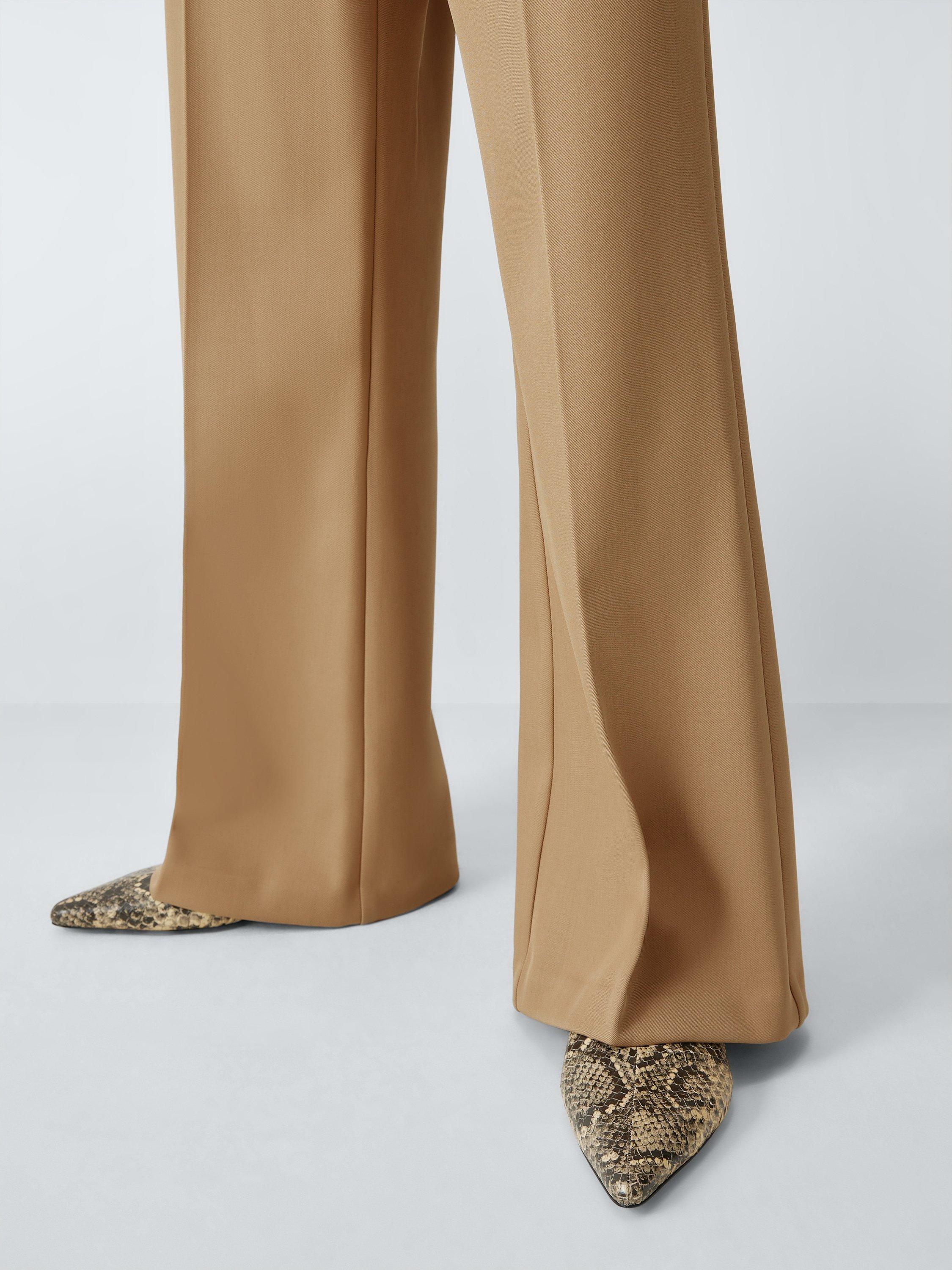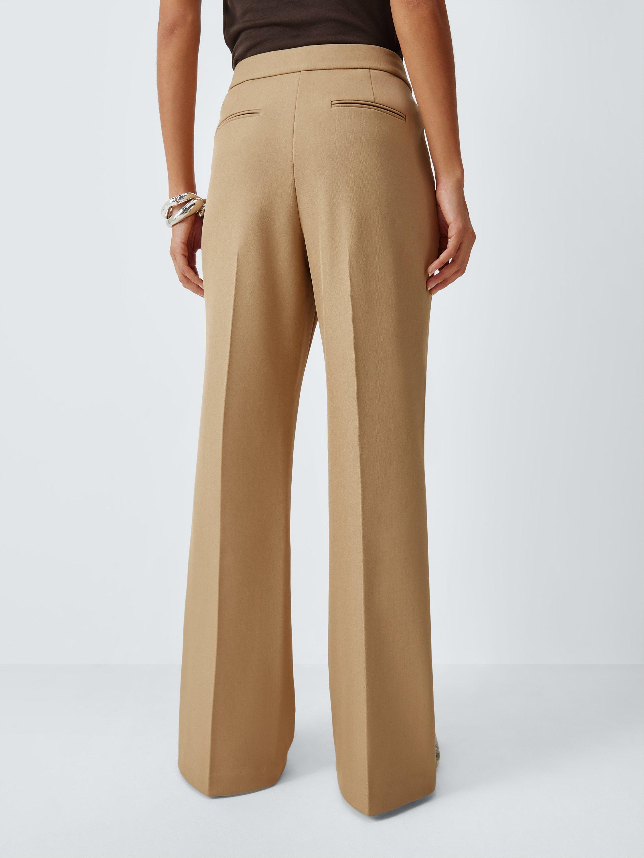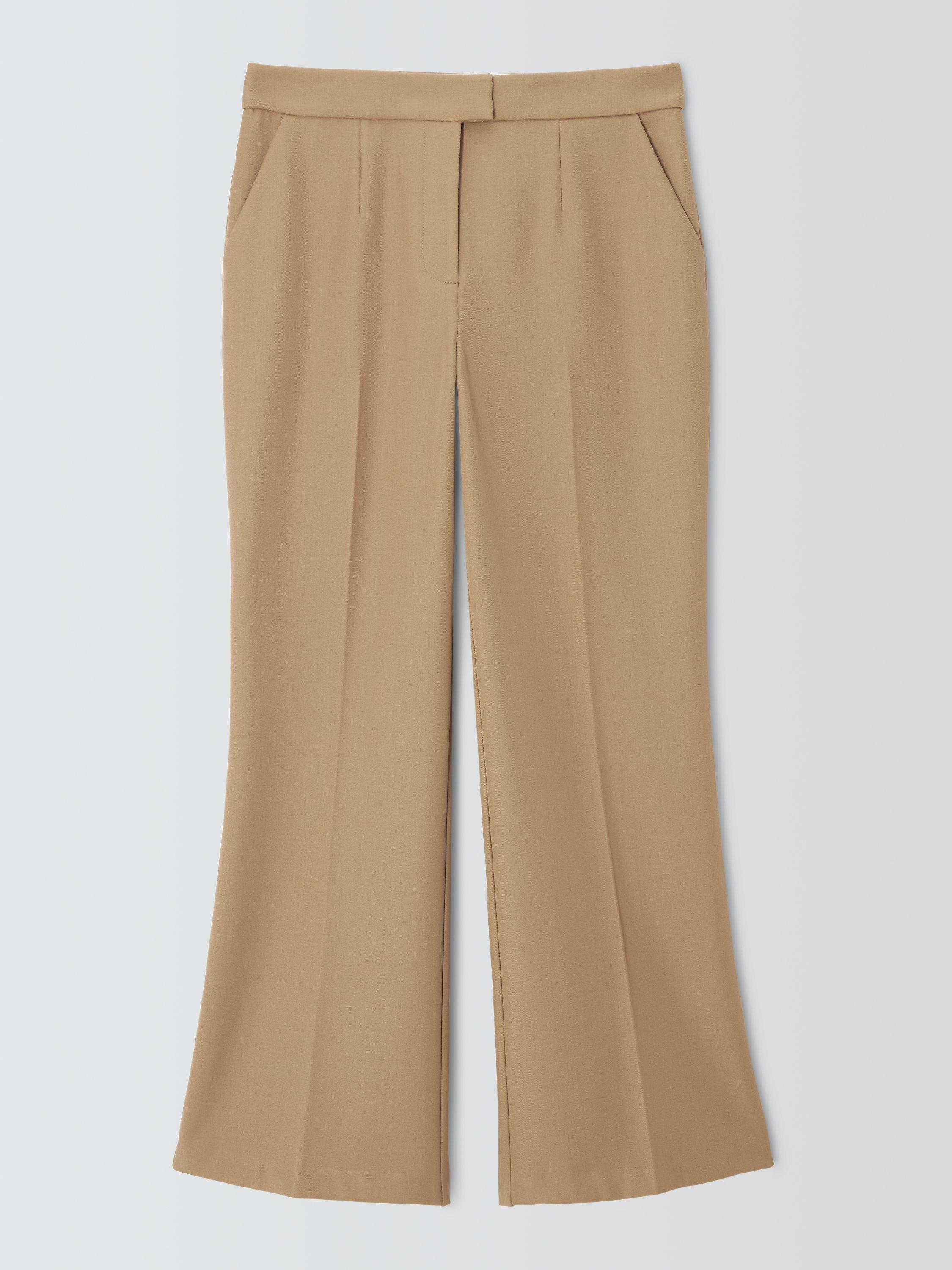Designed with a sleek high-rise waist and elegant pressed creases, these trousers feature a classic bootcut hem that elongates the leg. They offer a flattering fit with just the right amount of stretch for all-day comfort.